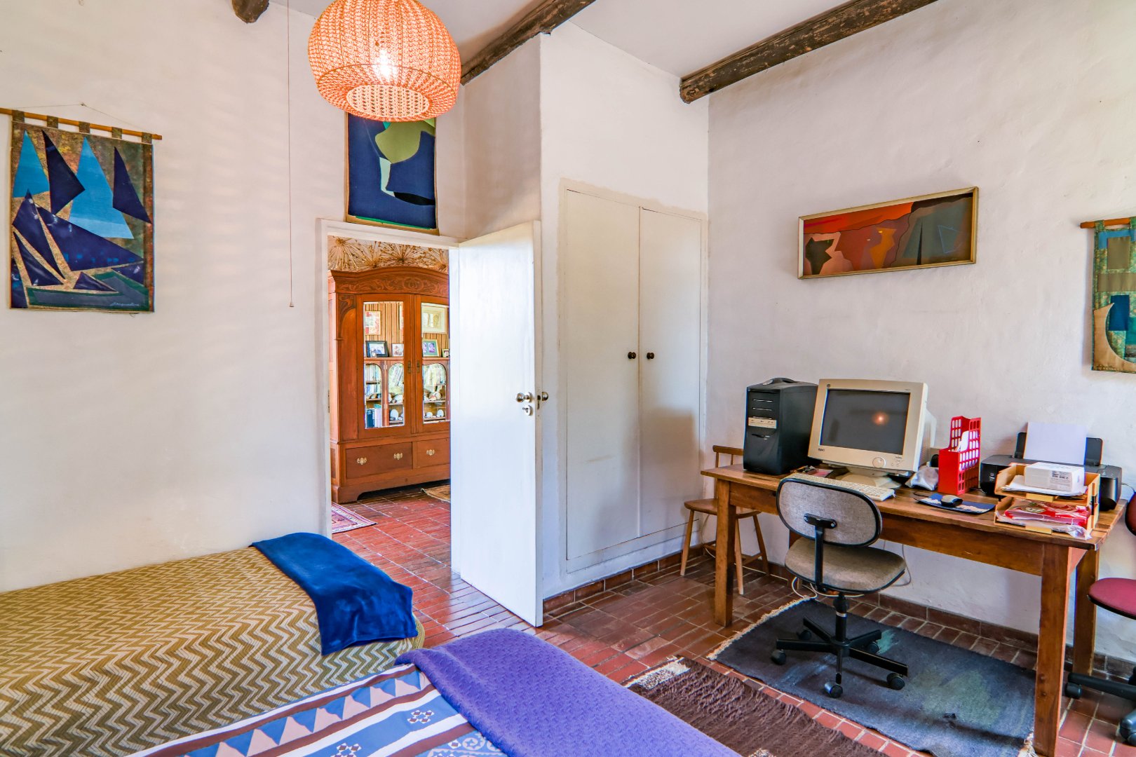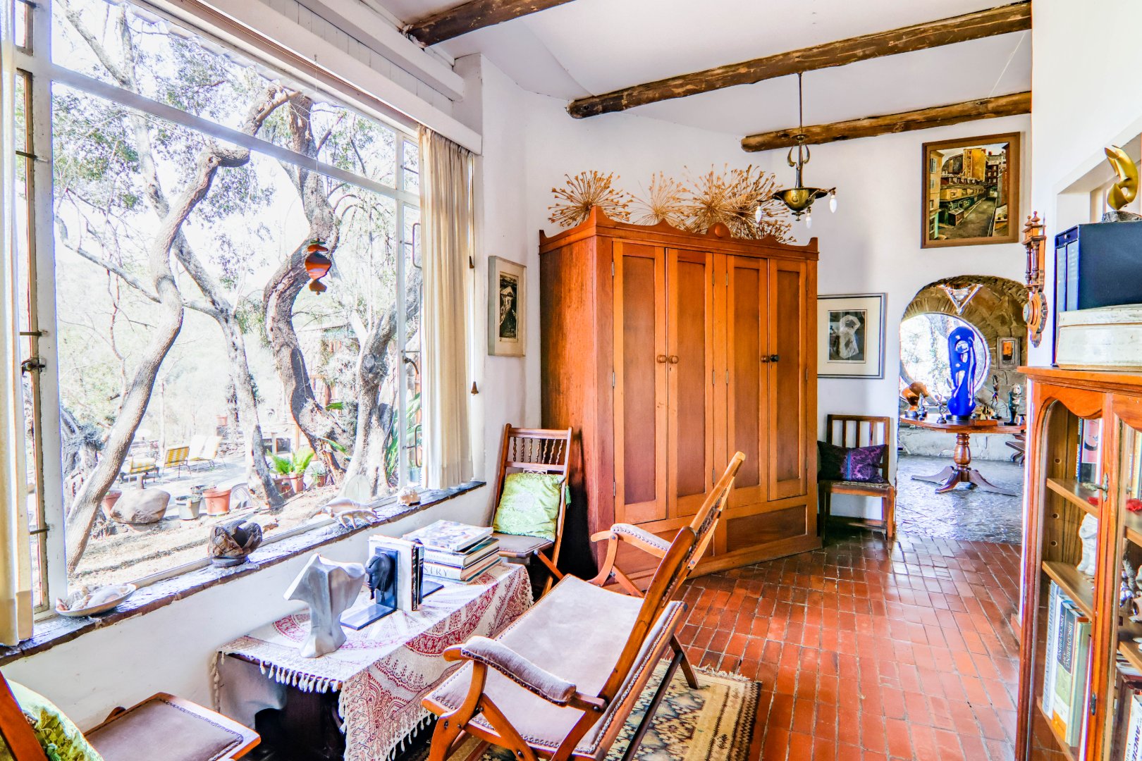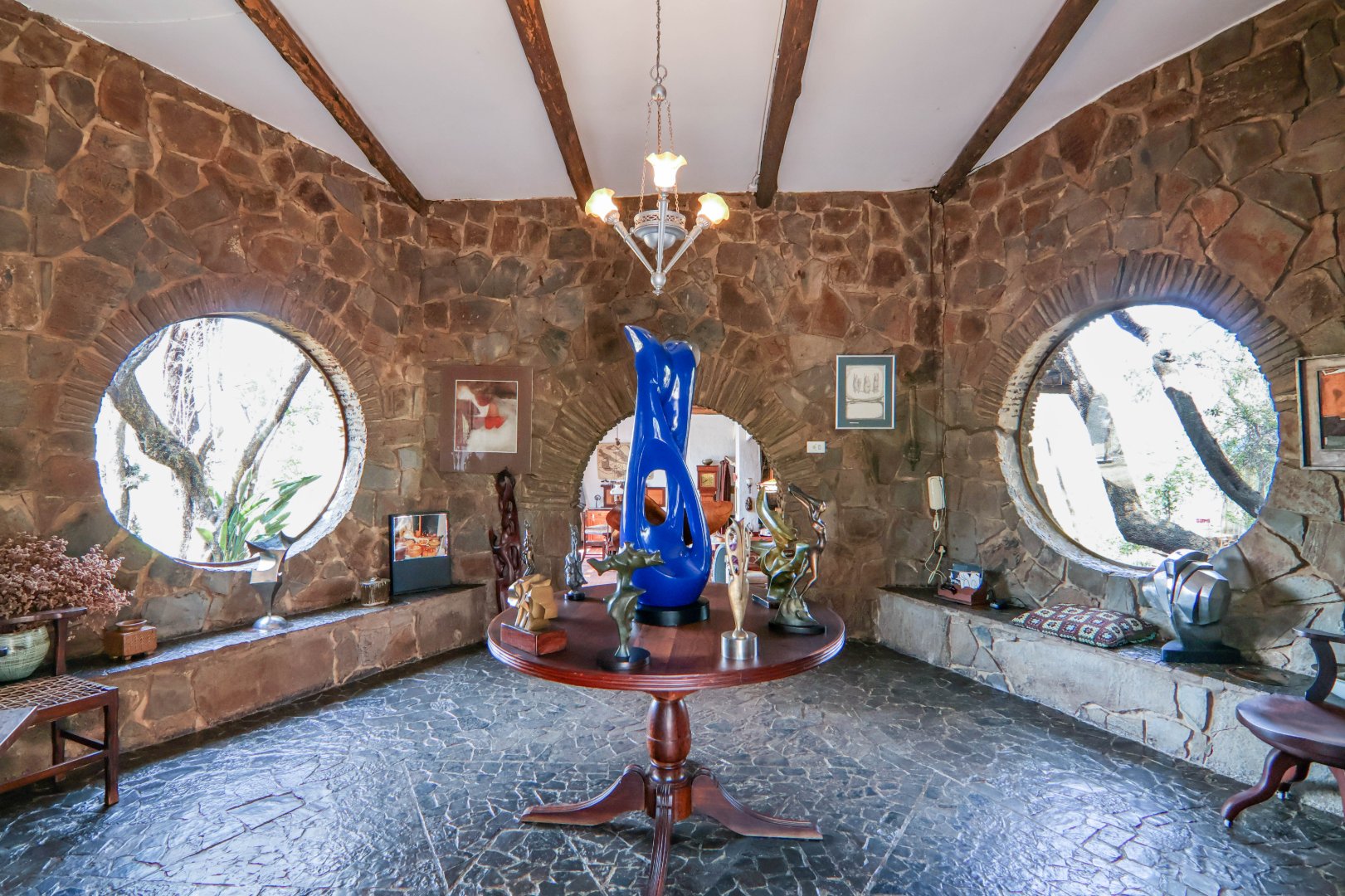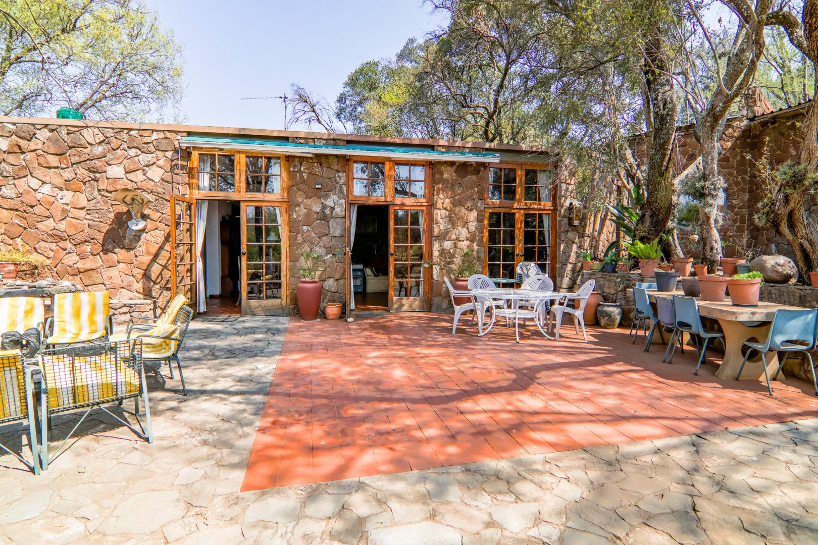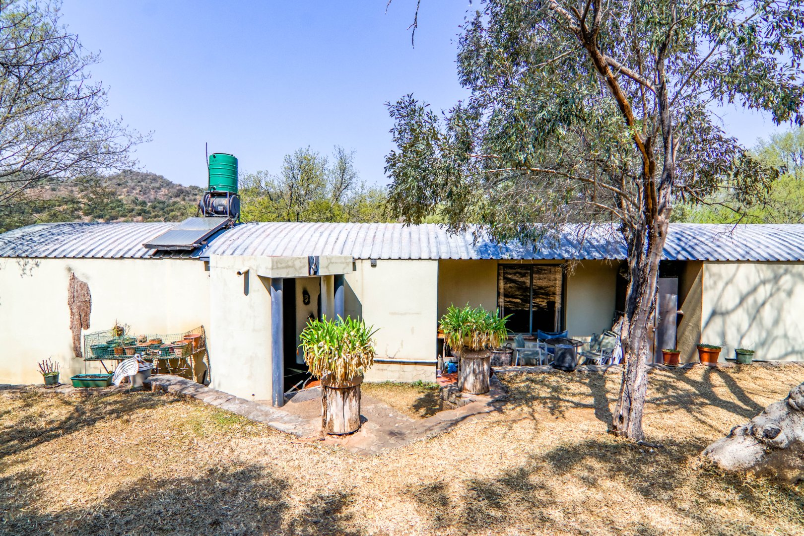 This amazing property was designed and hand built by the renowned artist Johan van Heerden. Built from local stone, the large main house has amazing flow. The house has 3 bedrooms, 2 bathrooms, a large studio, workshop and numerous outbuildings. A 3-bedroom cottage, staff quarters, garage and more, all enclosed within a secure area surrounded by an electric fence.