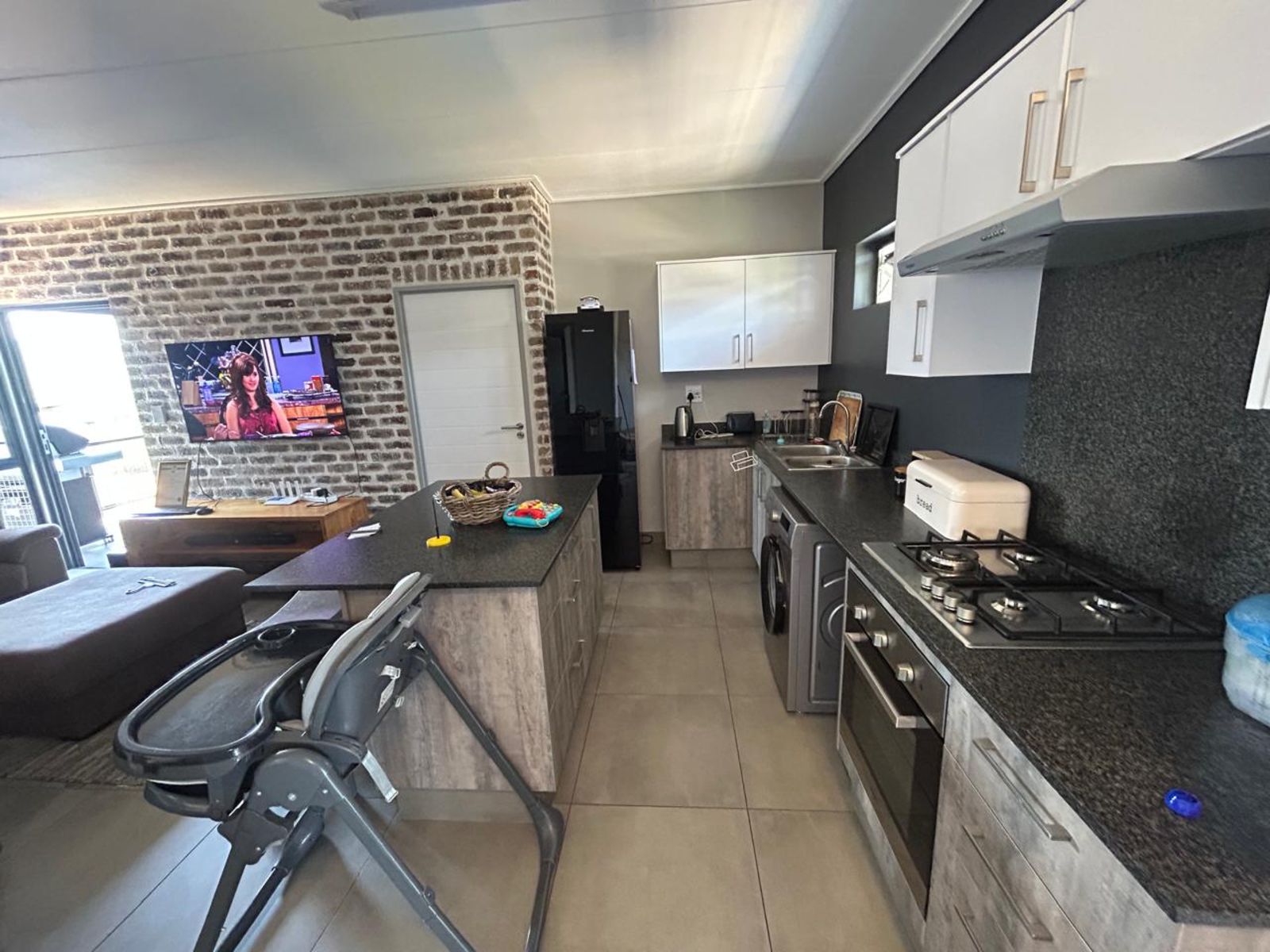 Step into an ultra-modern space featuring a sleek kitchen with an island nook, perfect for effortless entertaining or casual dining. The open-plan design flows seamlessly onto the stoep, where a modern gas braai awaits, ideal for hosting friends and family.