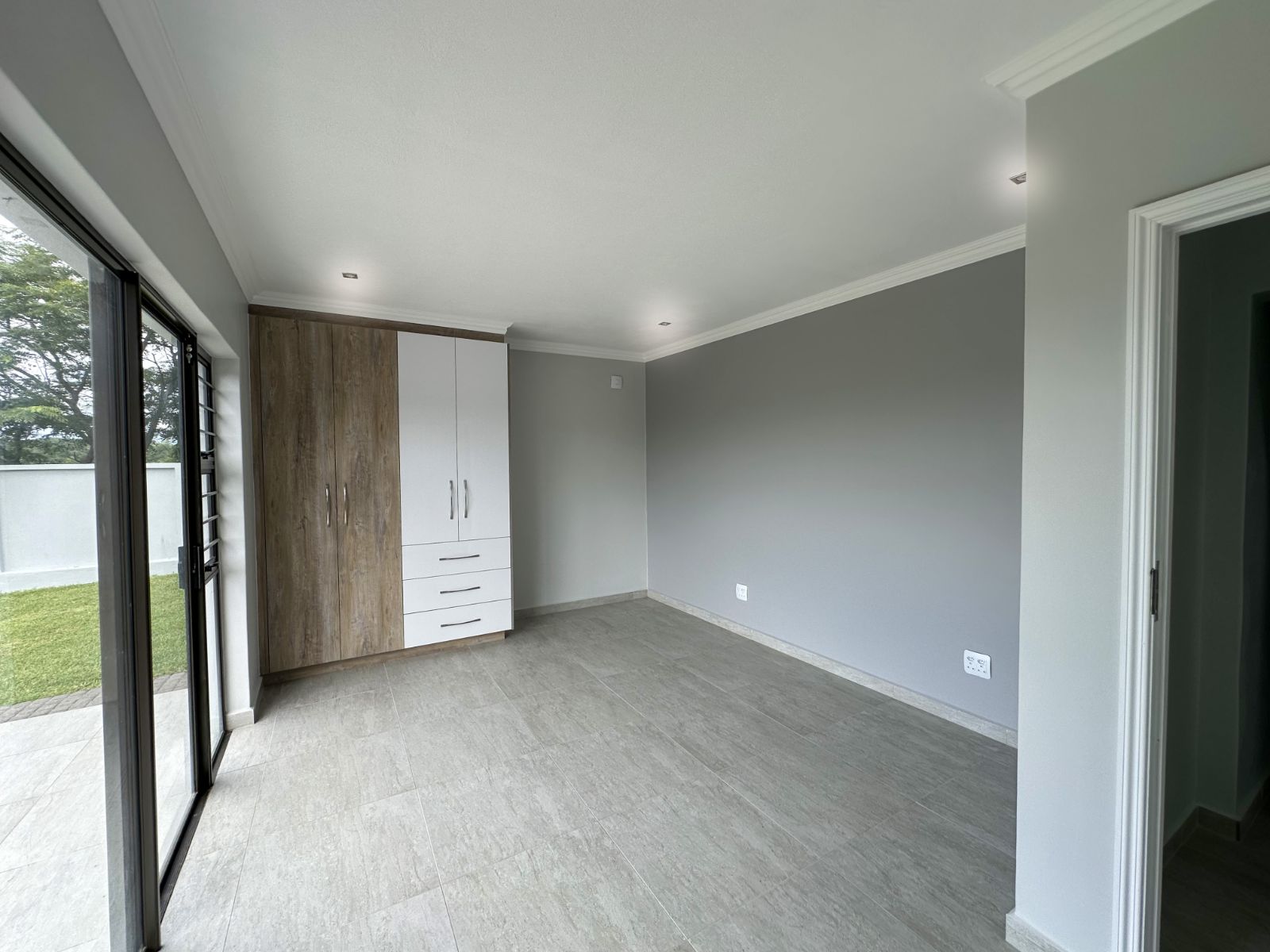 A spacious home office offers privacy and productivity, ideal for remote work or personal projects.