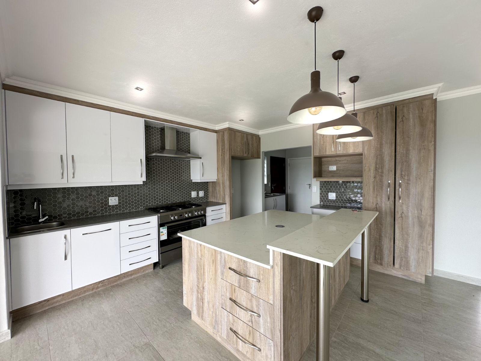 The kitchen is a masterpiece of contemporary design, complete with state-of-the-art appliances, a separate scullery, and a dedicated laundry section. For added convenience, a second kitchen and living area provide additional space and functionality.