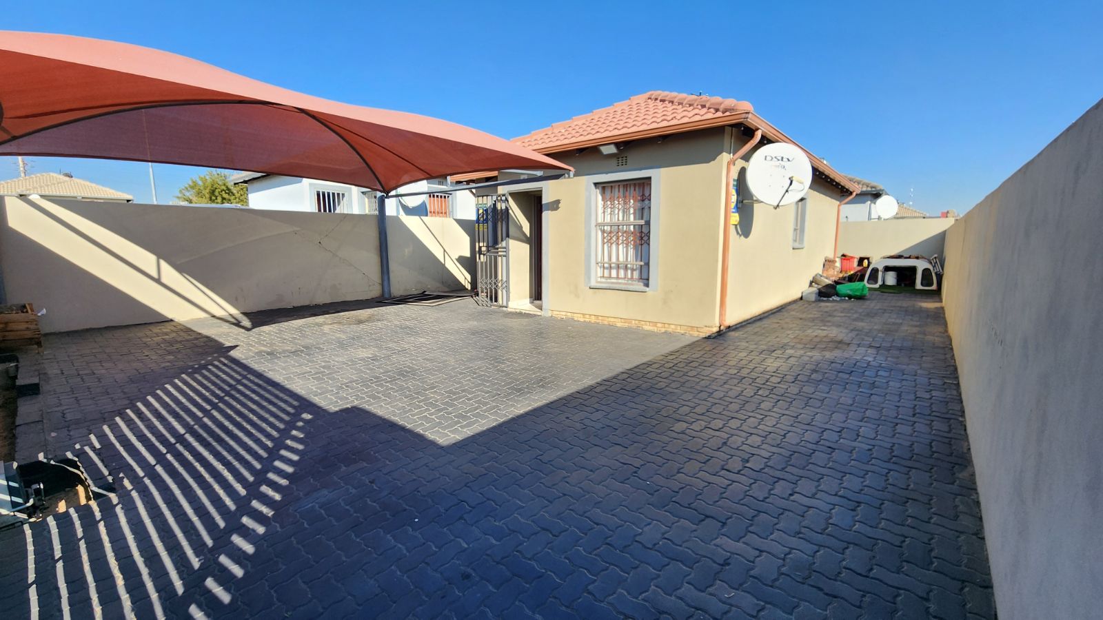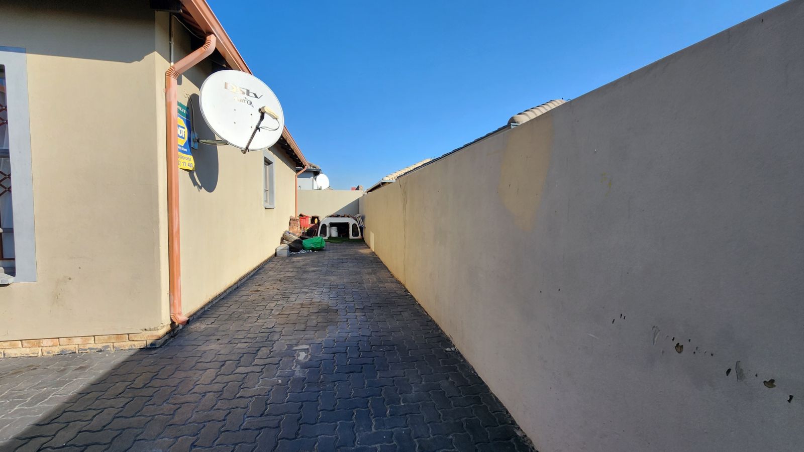 The house is tiled, and all necessary fixtures have been installed. A hybrid geyser is in place, which will save on electricity costs. Fixtures include cupboards in the kitchen housing, a built-in stove, and cupboards in all three rooms.