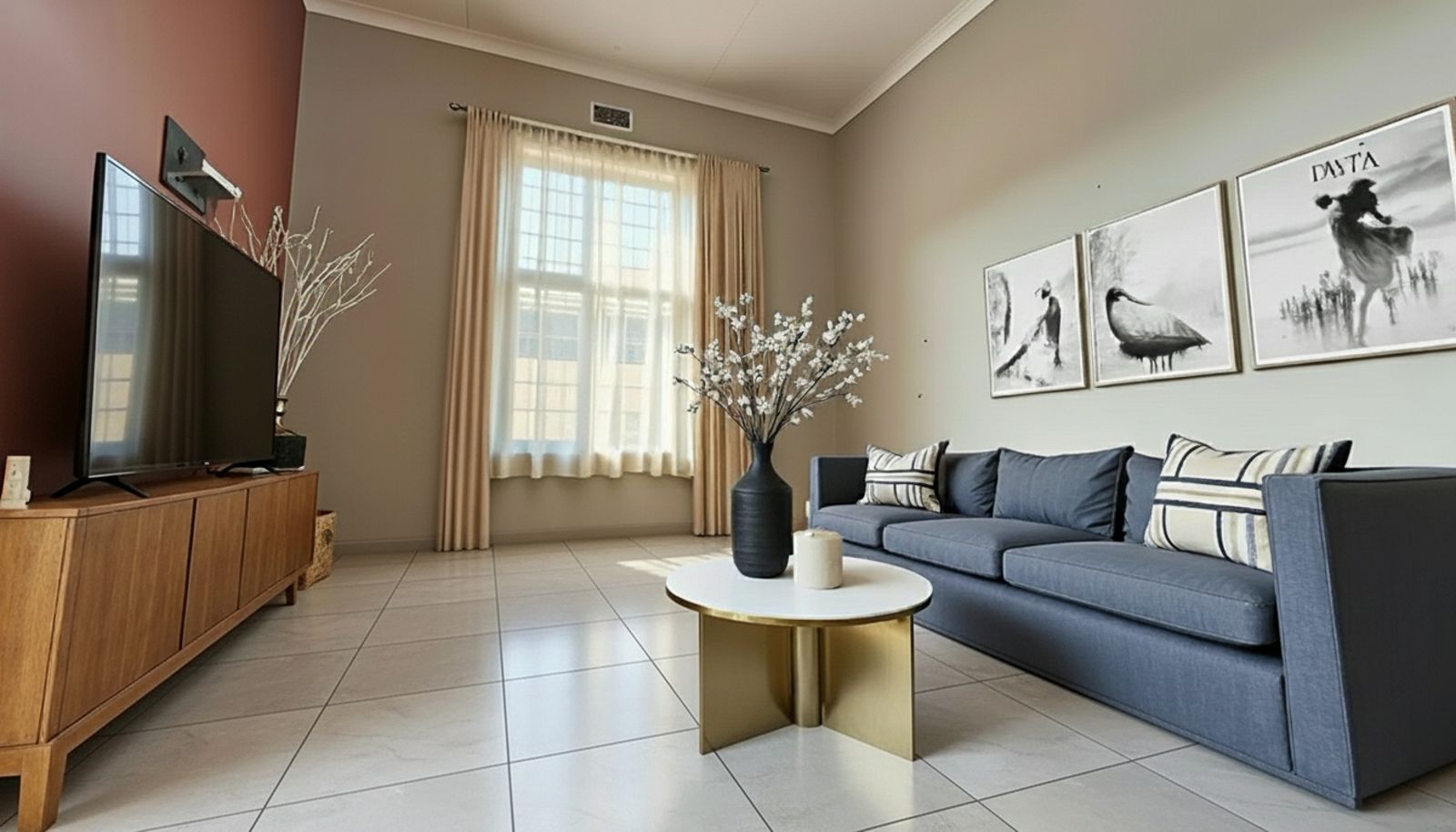 This pretty gem is in Riverside View, which is a quite suburb North of Dainfern, just behind the affluent Steyn City. It is within a comfortable distance from Fourways, Sandton and Midrand.