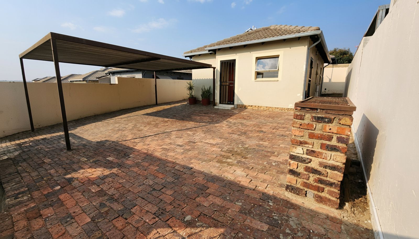 This is one of those houses with all the esteem to outshine others in its neighbourhood. It is a 45sqm house with three spacious bedrooms, a bathroom, a welcoming lounge room and kitchen. The house is tiled, and all necessary fixtures have been installed. A hybrid geyser is in place, which will save on electricity costs. Fixtures include cupboards in the kitchen housing, a built-in stove. There are cupboards in all three rooms.