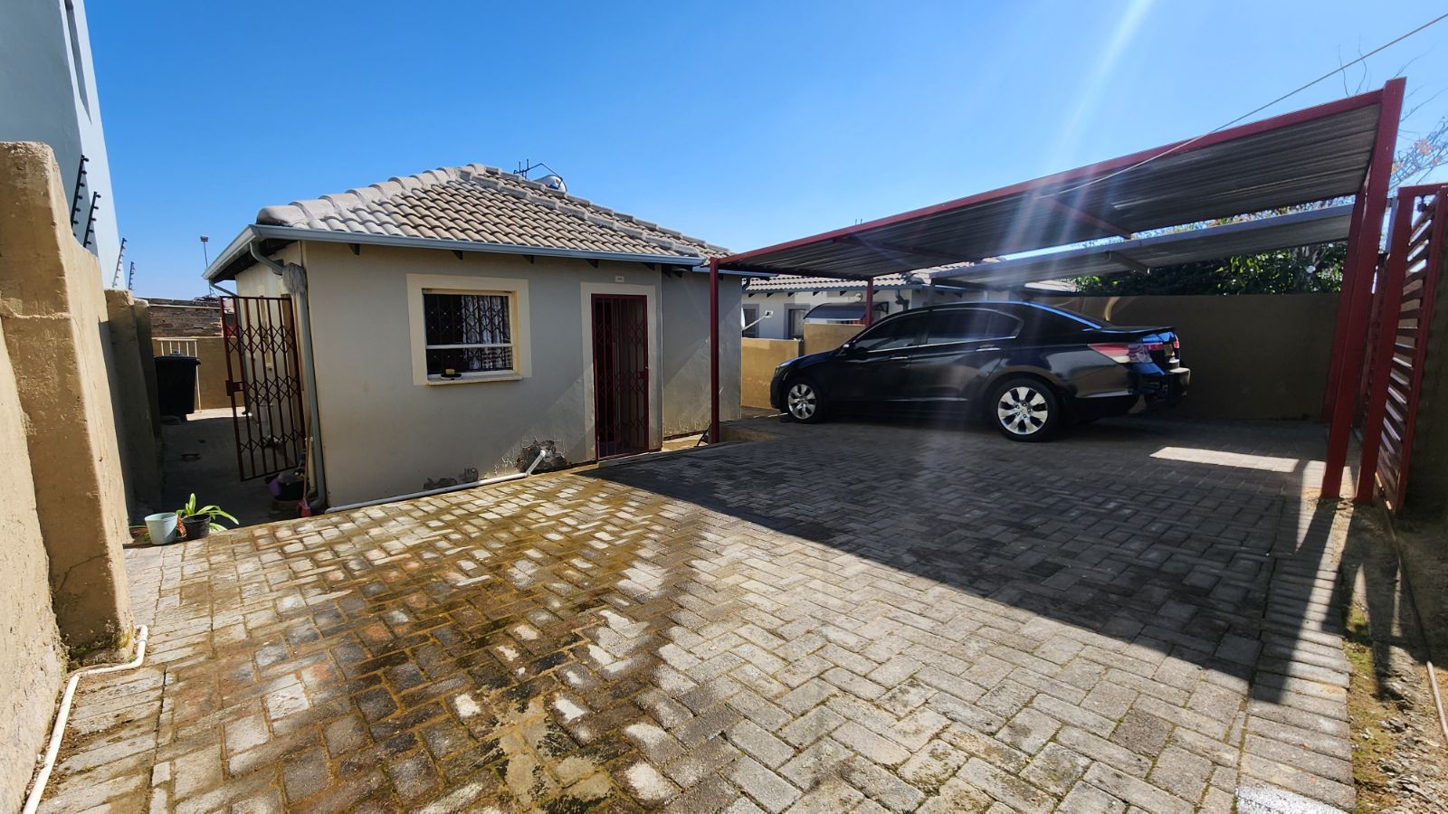 This is one of those houses with all the esteem to outshine others in its neighbourhood. It is a 45sqm house with two spacious bedrooms, a welcoming lounge room and kitchen. The house is tiled, and all necessary fixtures have been installed. A hybrid geyser is in place, which will save on electricity costs. Fixtures include cupboards in the kitchen housing, a built-in stove, and cupboards in all two rooms.