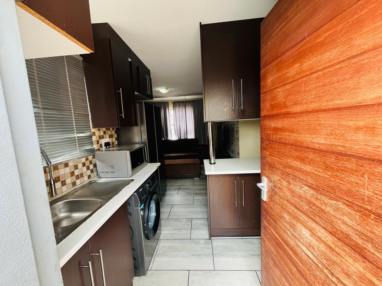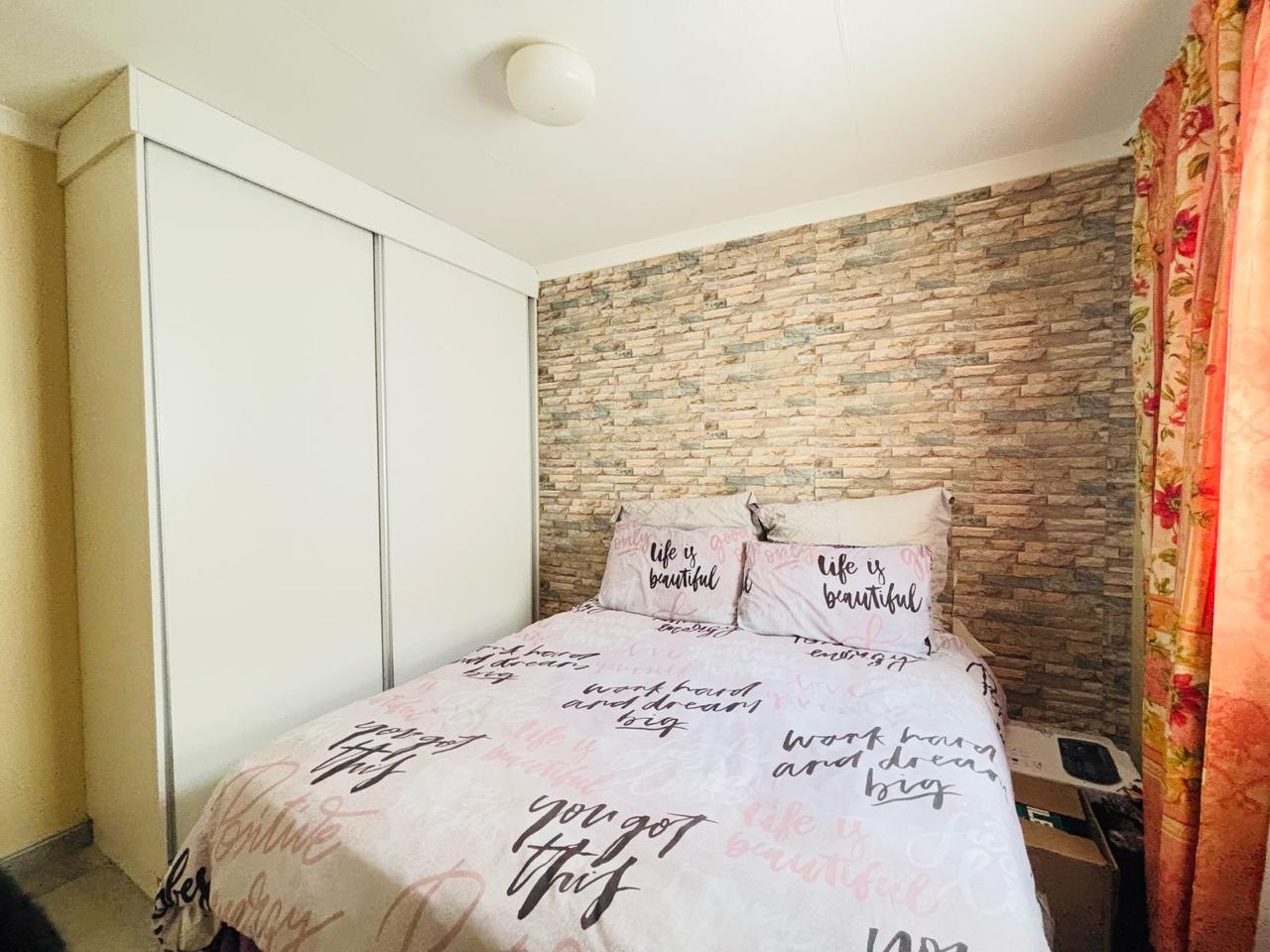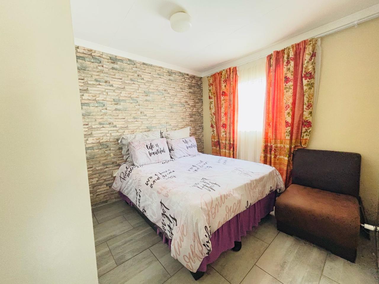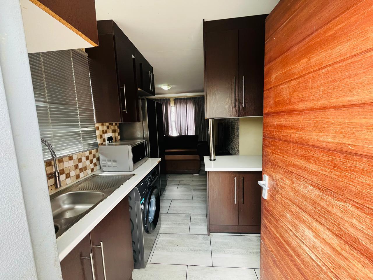 This cozy home is move in ready. It opens up to a spacious kitchen that's fitted with built in cupboards. It flows into the living space. It comes with 3 bedrooms and a separate toilet and bath. The property is walled and gated. Its been paved neatly. Call now to arrange a private viewing!