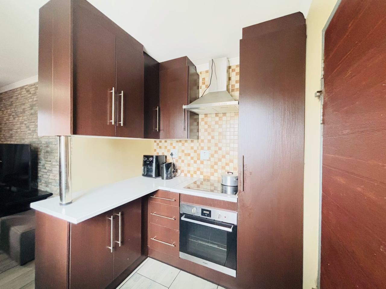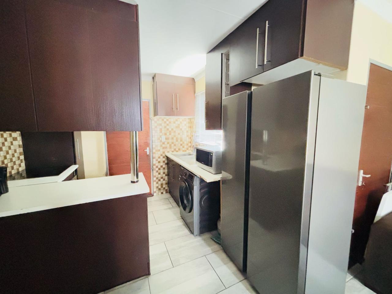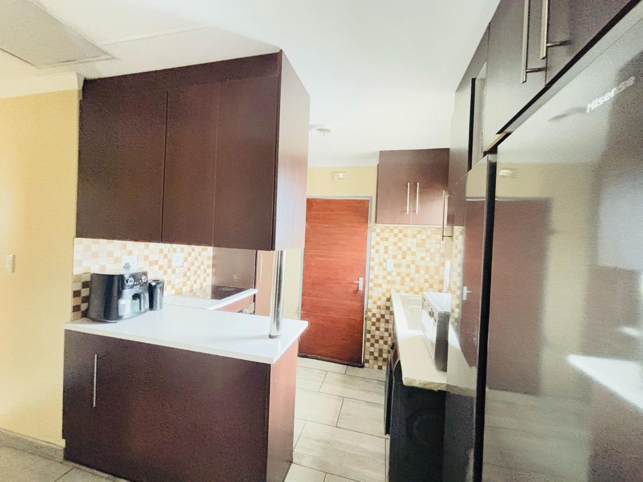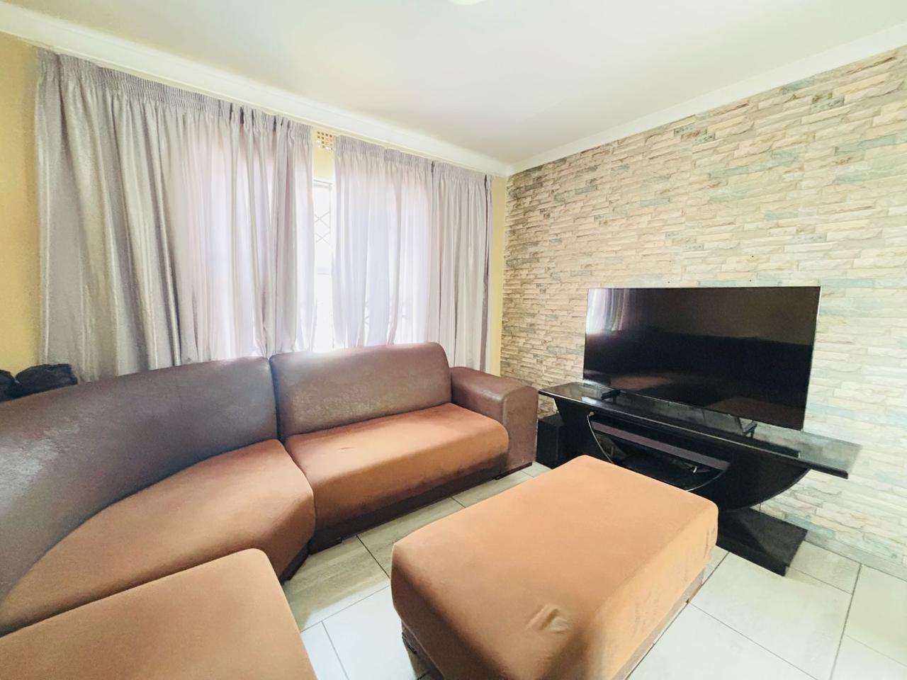 This cozy home is move in ready. It opens up to a spacious kitchen that's fitted with built in cupboards. It flows into the living space. It comes with 3 bedrooms and a separate toilet and bath. The property is walled and gated. Its been paved neatly. Call now to arrange a private viewing!
