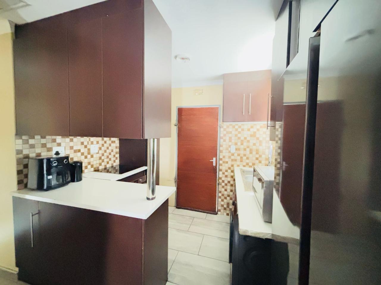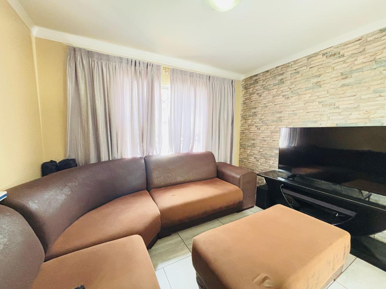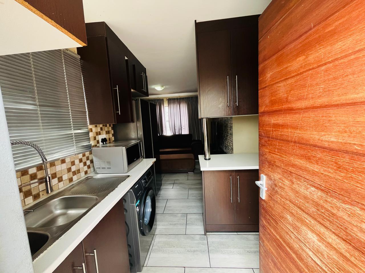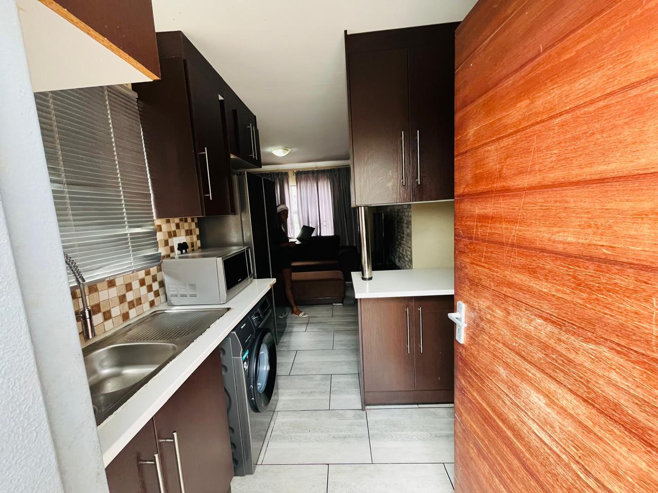 This cozy home is move in ready. It opens up to a spacious kitchen that's fitted with built in cupboards. It flows into the living space. It comes with 3 bedrooms and a separate toilet and bath. The property is walled and gated. Its been paved neatly. Call now to arrange a private viewing!
