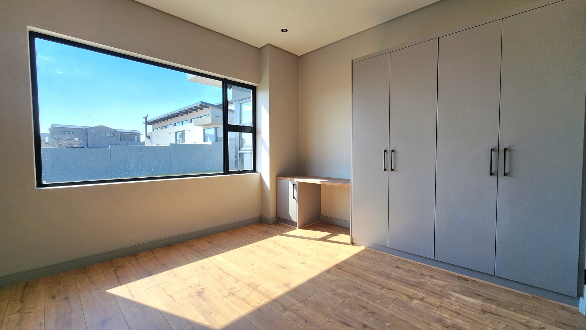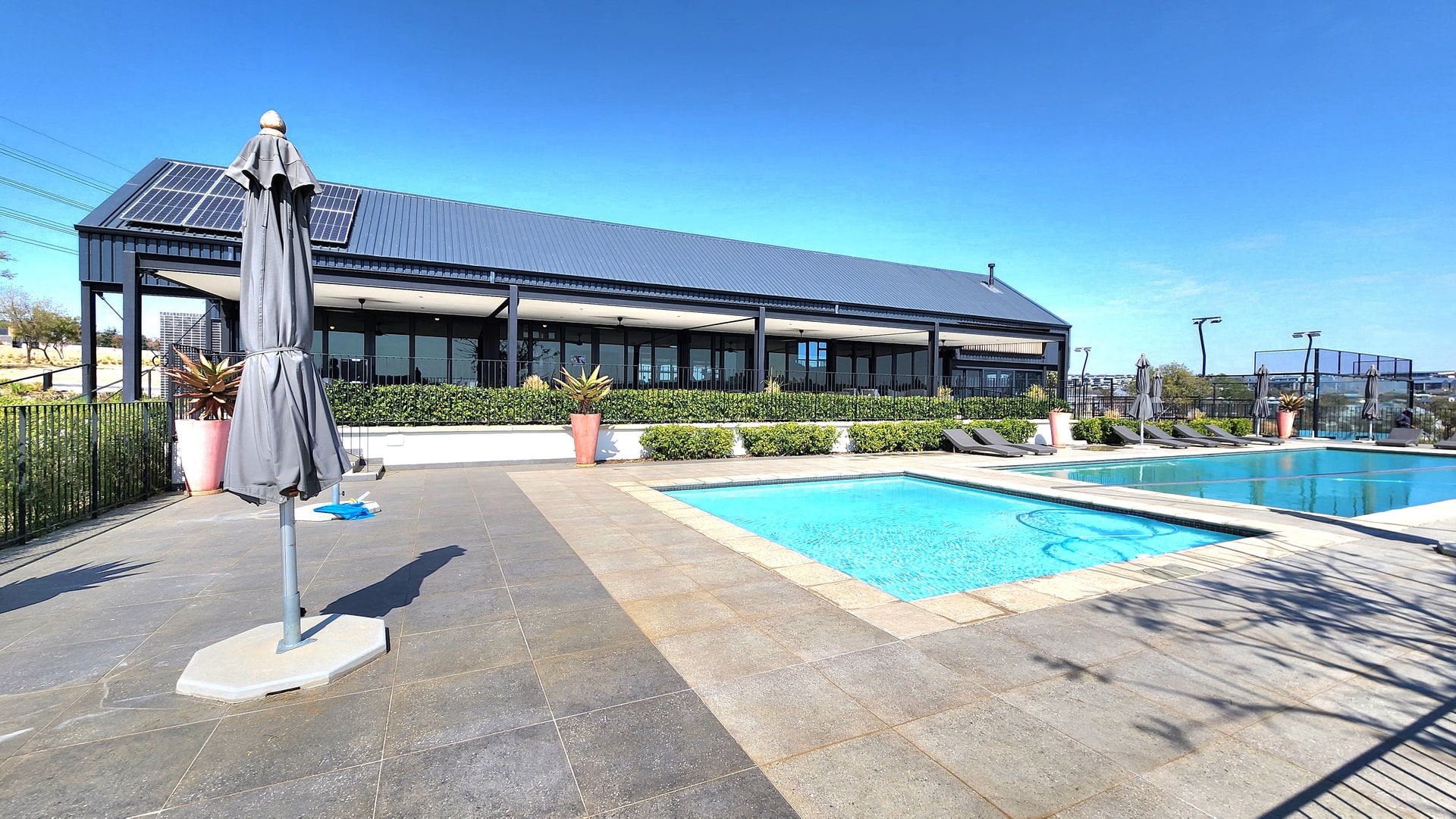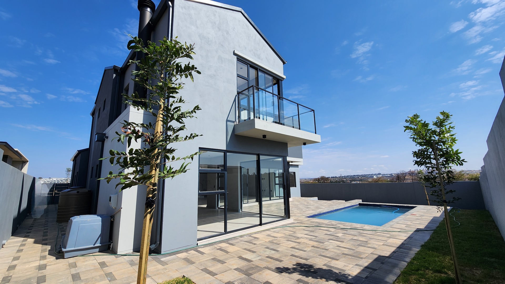 Step into a world of contemporary elegance with a sleek plaster finish and cutting-edge design, featuring stylish Aluminium window options and durable Aluminium roof options that contribute to its striking aesthetic and low maintenance appeal.