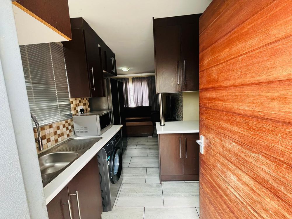 It opens up to a spacious kitchen that's fitted with built in cupboards. It flows into the living space. It comes with 3 bedrooms and a separate toilet and bath.