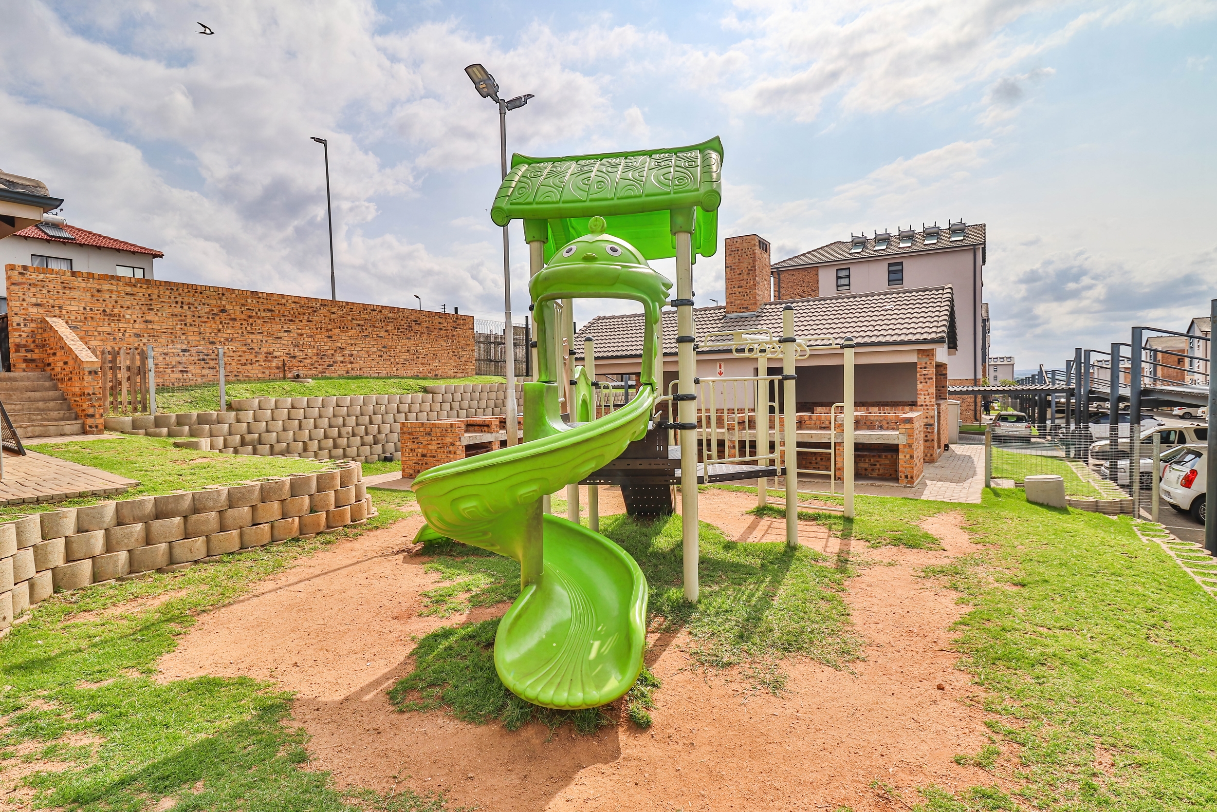 Outside, the private patio provides a pleasant space to enjoy fresh air or a quiet moment outdoors. The complex offers well kept communal gardens, a braai area, and a dedicated children play area, all contributing to a relaxed community lifestyle.