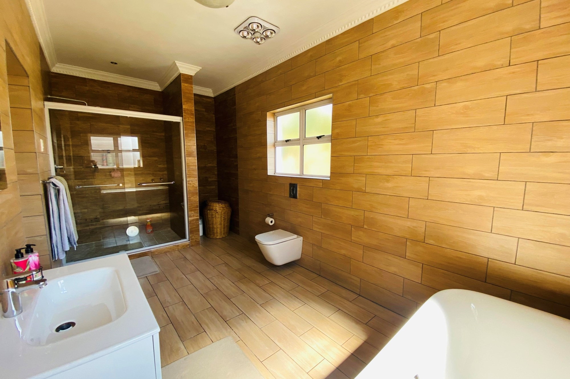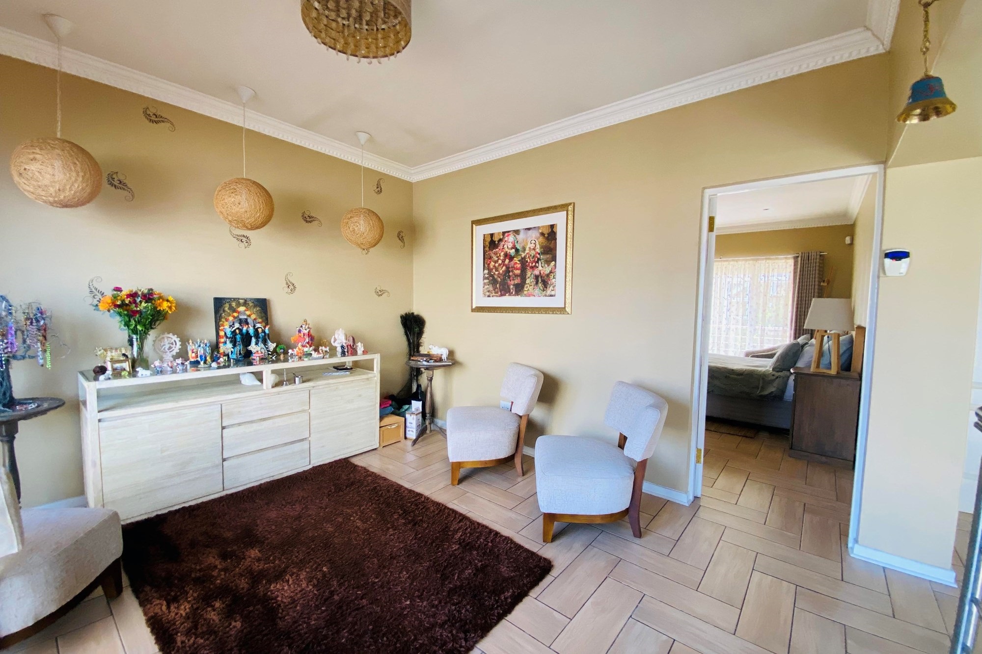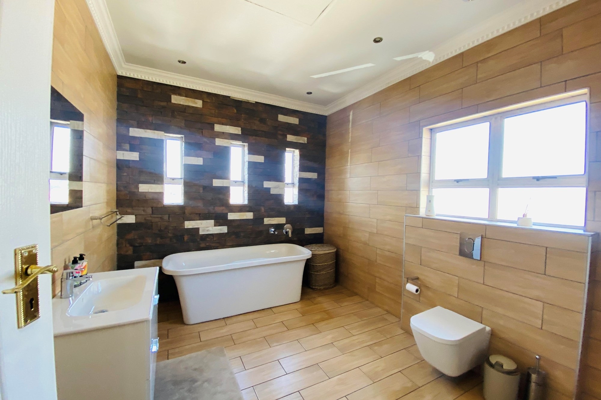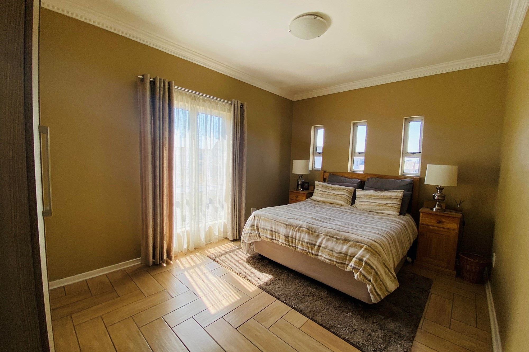 The Scandinavian-style kitchen is a chef`s dream, featuring elegant Caesarstone countertops, a dual gas and Siemens electric stove, separate electric oven, ample cupboard space , a large pantry, and a scullery accommodating a dishwasher, storage cupboard and a double sink making this kitchen as functional as it is beautiful. The kitchen is connected to the dining area with a beautiful genuine Oak dining table.