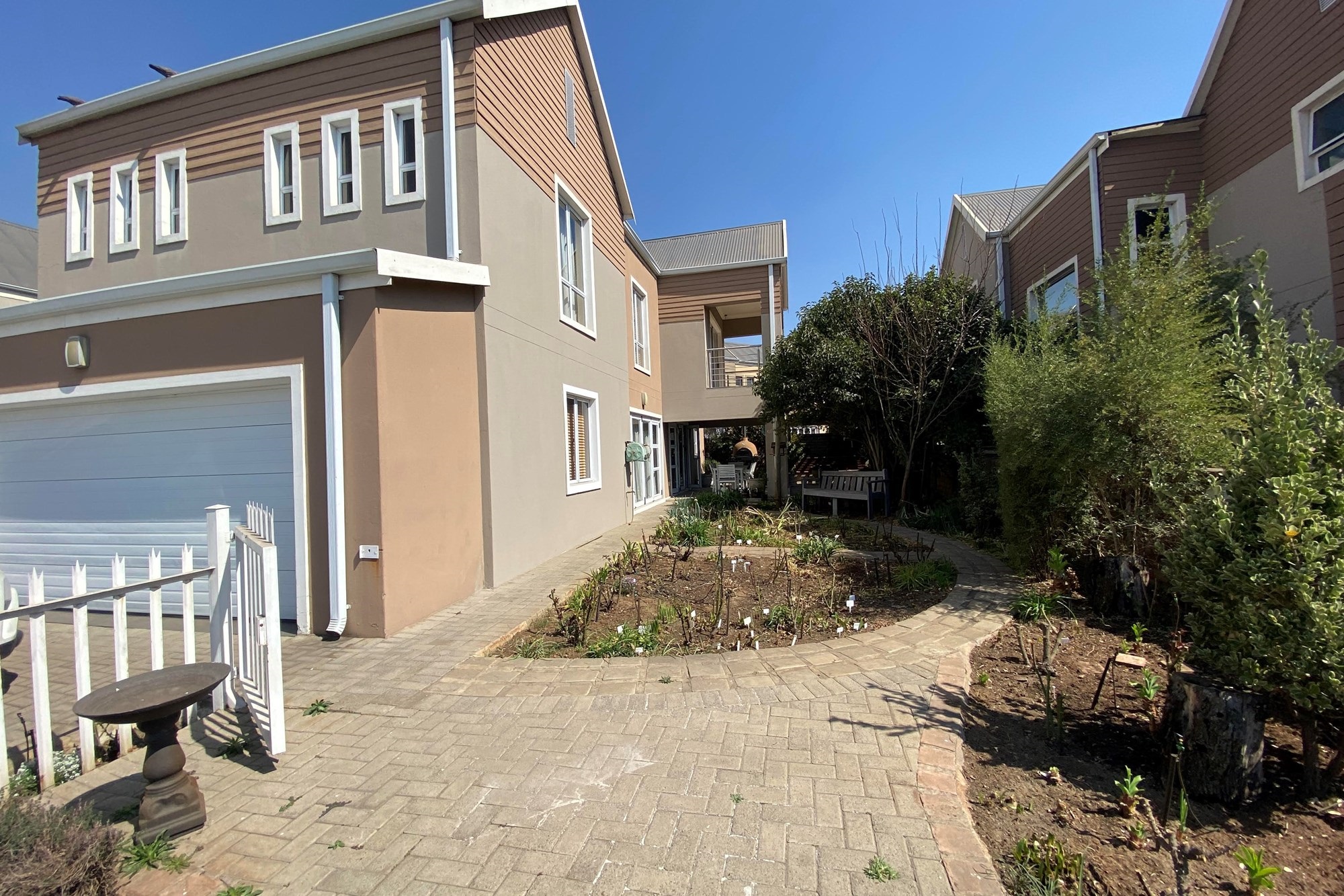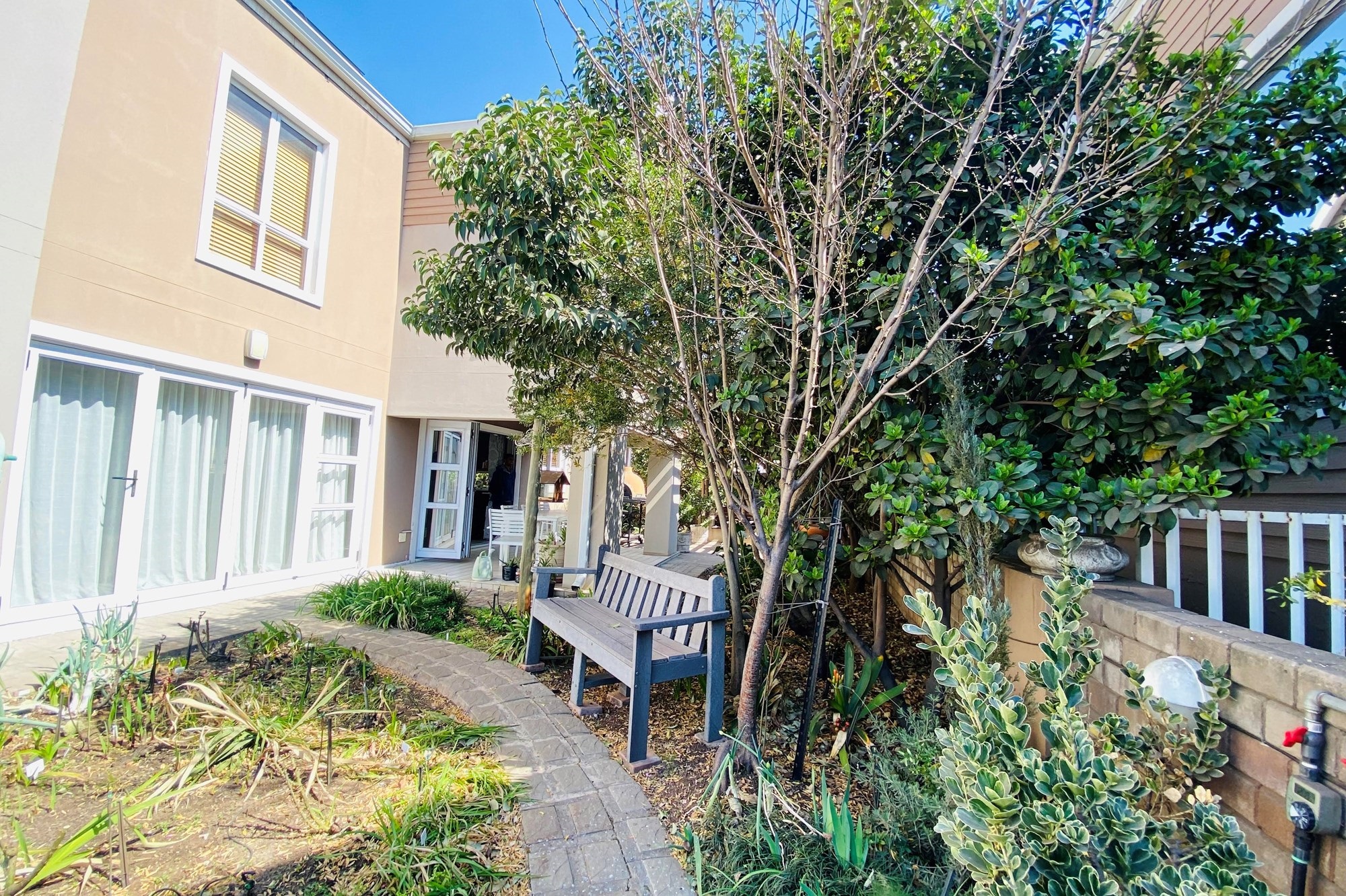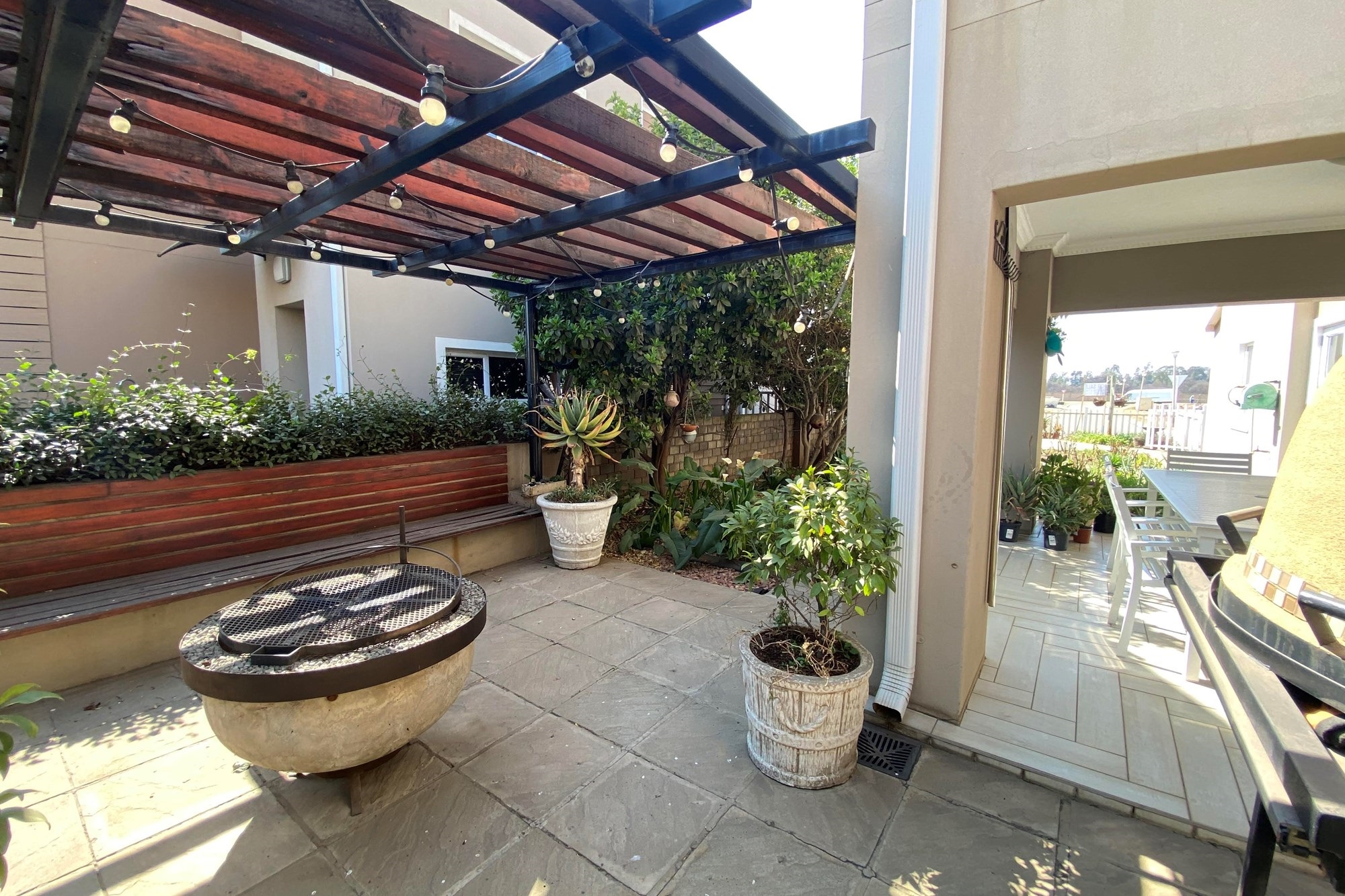 The open-plan dining area flows seamlessly from the kitchen, making it perfect for entertainment and everyday living. Overlooking a covered patio and a beautiful garden. With the foldable stacker doors you would not miss enjoying the outdoor ambiance in the forever green garden.
