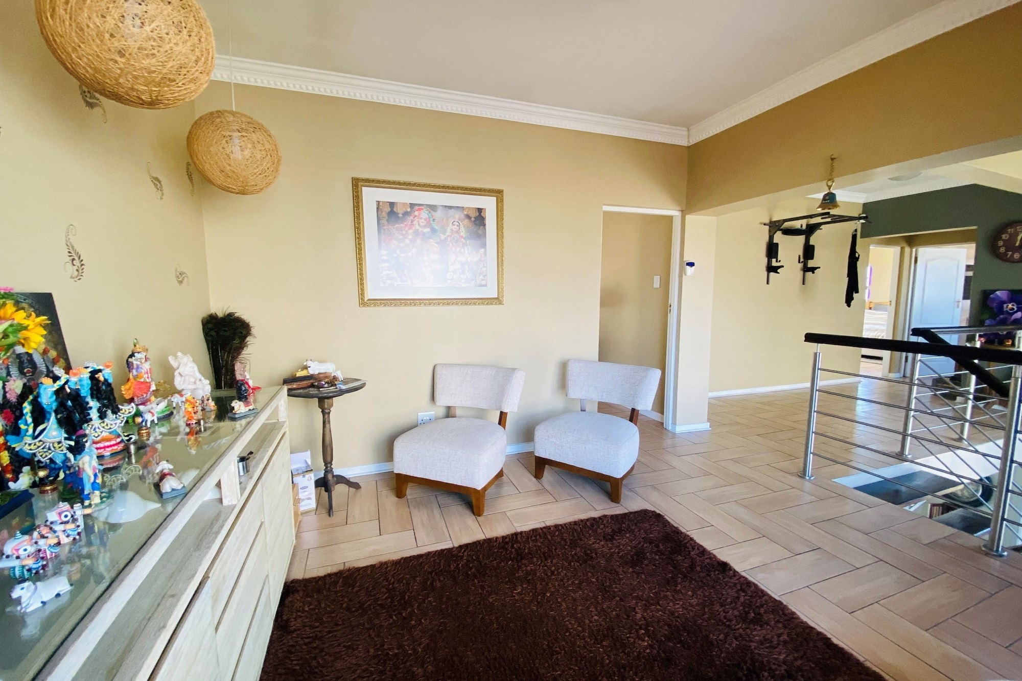Upstairs, a cosy pyjama lounge awaits, along with 3-generously sized bedrooms, Master bedroom is a true retreat with a well sized en suite bathroom with a heater to keep you warm during winter seasons., indulge in the panoramic view from the expansive balcony, an idyllic spot for sipping morning coffee.. All the bedrooms are adorned with cupboards , tiled flooring and ceiling. The double garage offers ample space for both parking and storage.