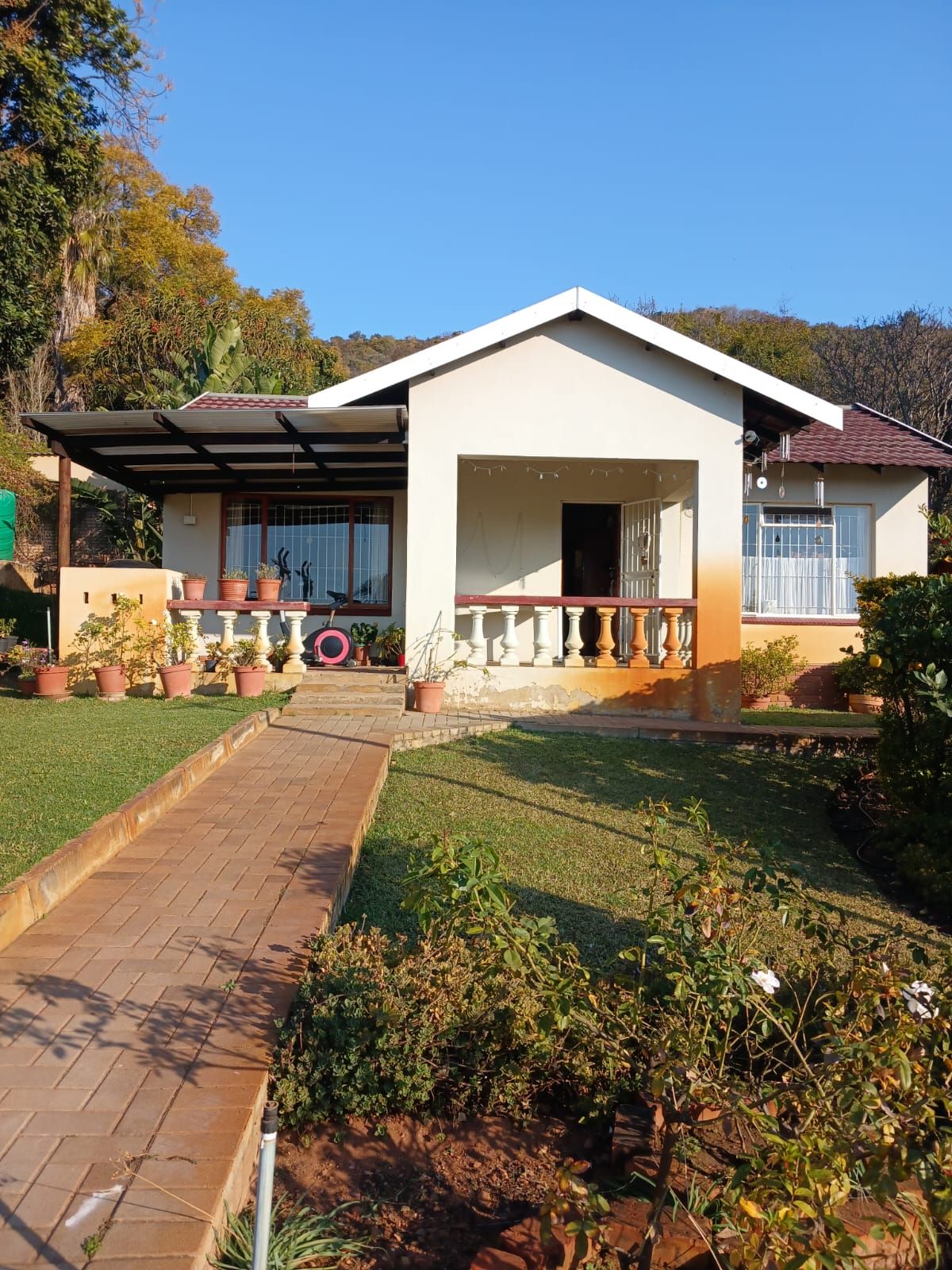 The main house welcomes you with high 3-metre ceilings and beautiful Yellowwood flooring throughout the rooms and passages. A lush, established garden enhances the tranquil atmosphere, supported by a borehole, an irrigation system, and two JoJo tanks for efficient water management. The property also provides ten parking bays, including a 42m2 undercover parking area, as well as an undercover braai space for guests to enjoy.