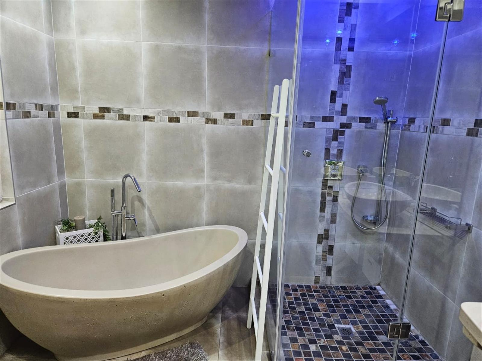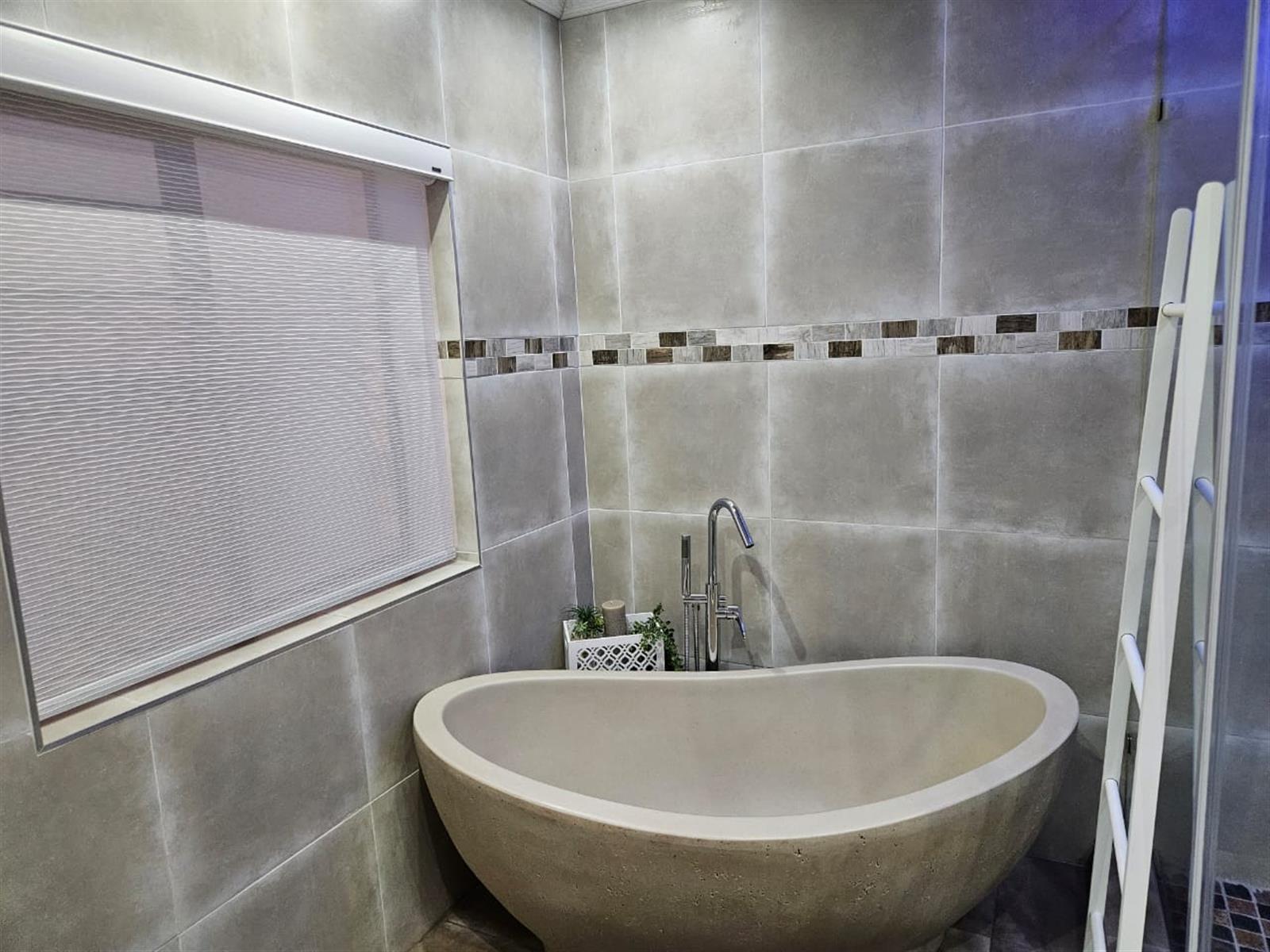 This spacious property features a well-appointed 4-bedroom, 3-bathroom home designed for comfort and modern living. The open-plan layout seamlessly integrates the dining room, lounge, and a contemporary kitchen, perfect for family gatherings and entertaining guests. The kitchen is fully equipped with modern fixtures and finishes, offering ample storage and workspace, with an adjacent laundry and scullery for added convenience. The double garage provides secure parking, while the outdoor space is enhanced by a Jojo tank for water conservation. Additional security is provided with electric fencing surrounding the property, ensuring peace of mind.