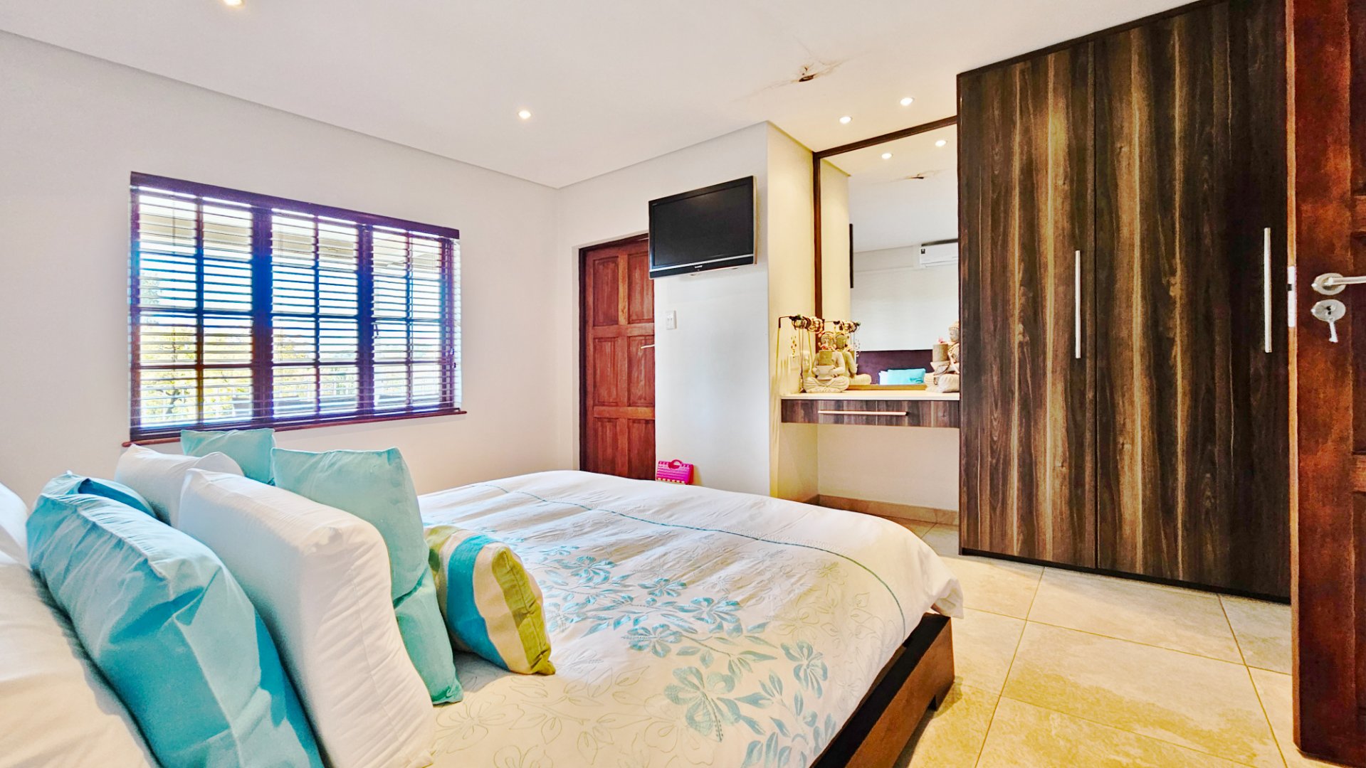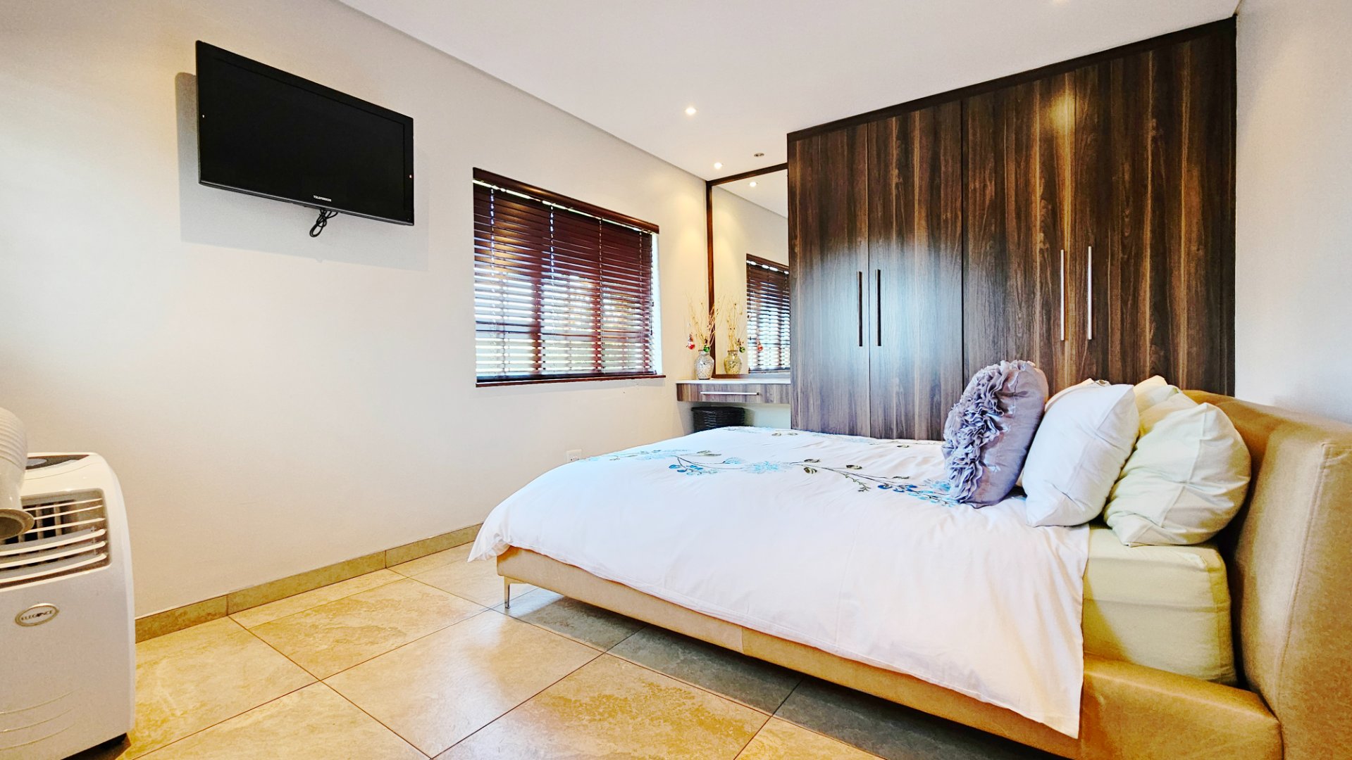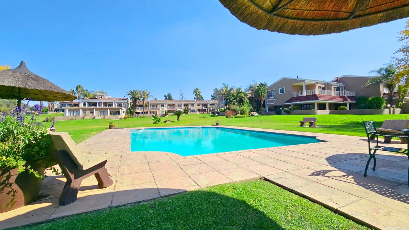 This air-conditioned unit enjoys access to stunning communal gardens and a sparkling pool with braai facilities, all set in a holiday-like atmosphere.