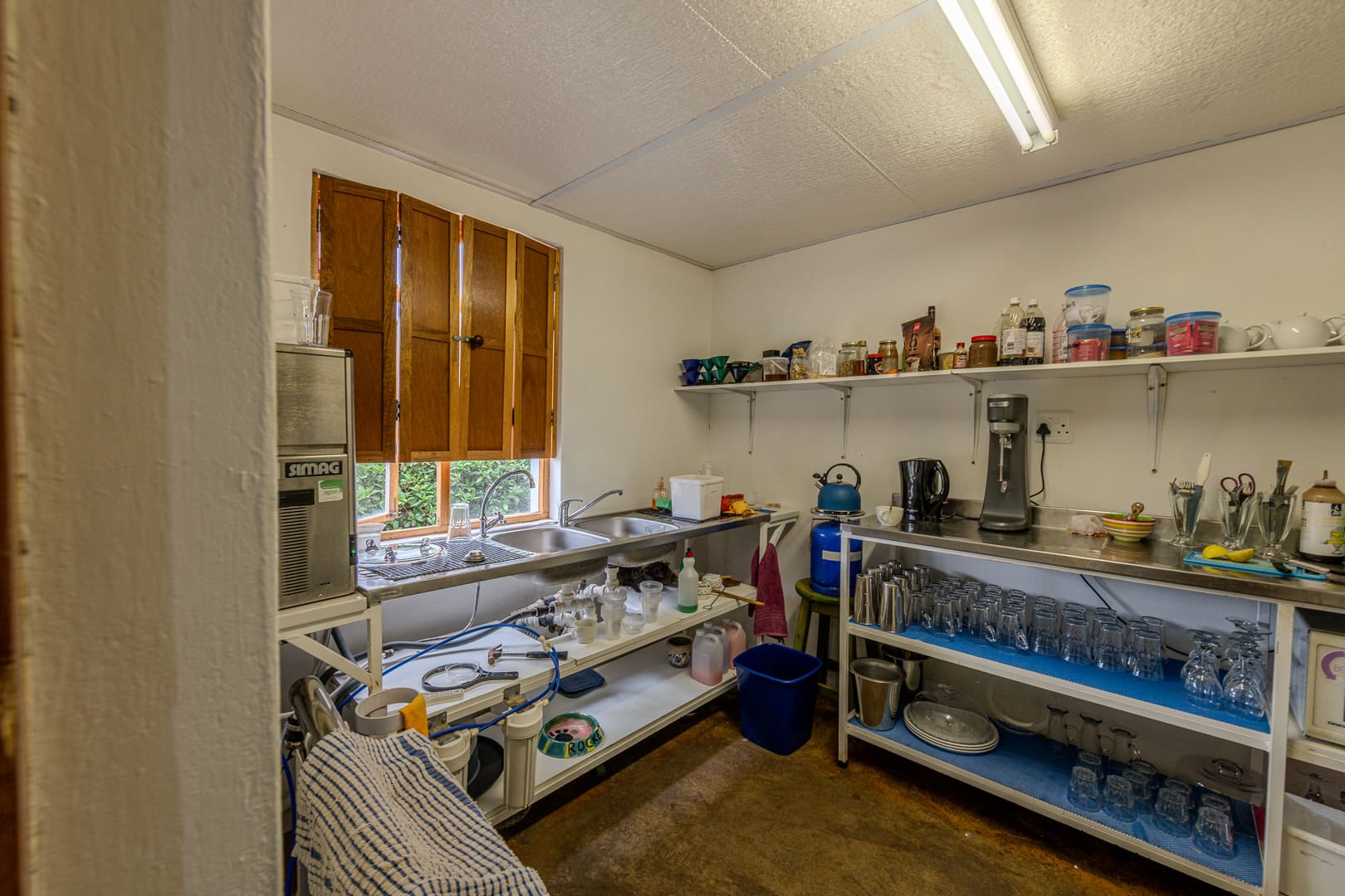 Below the café is a naturally cool storage area, ideal for wine storage.