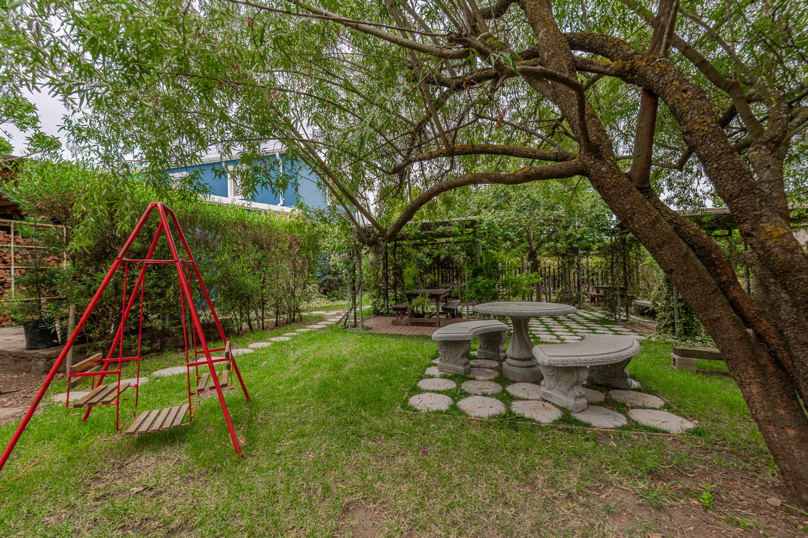 The current owners bought the property in 2014 and carefully updated it while keeping its original feel. Today, it operates as the much-loved Padloper Café. Guests can enjoy meals inside, on the stoep, or in the beautiful garden. The garden is a big draw for families and travellers, offering pet-friendly seating and a fun play area for children, complete with a green tractor.