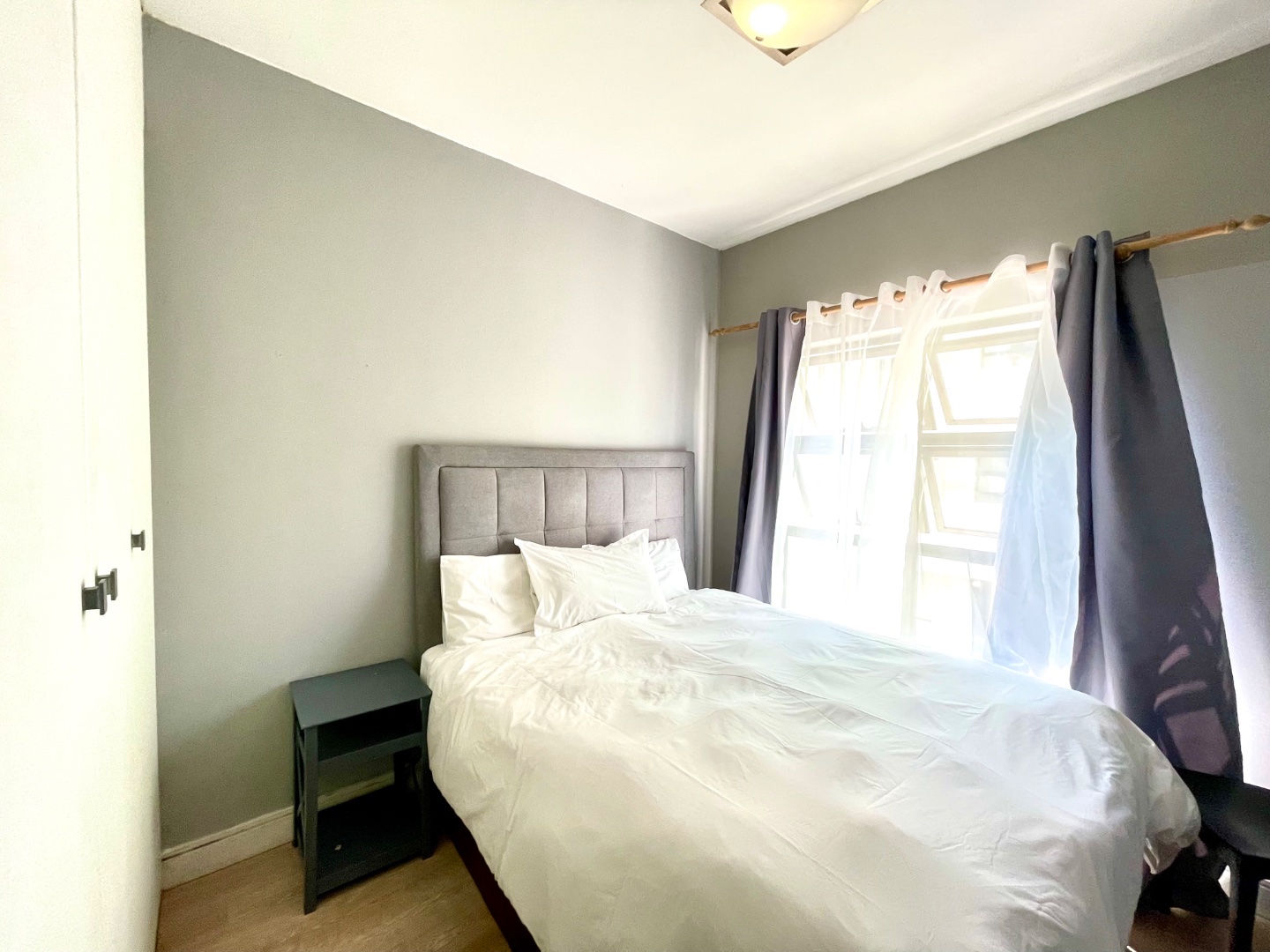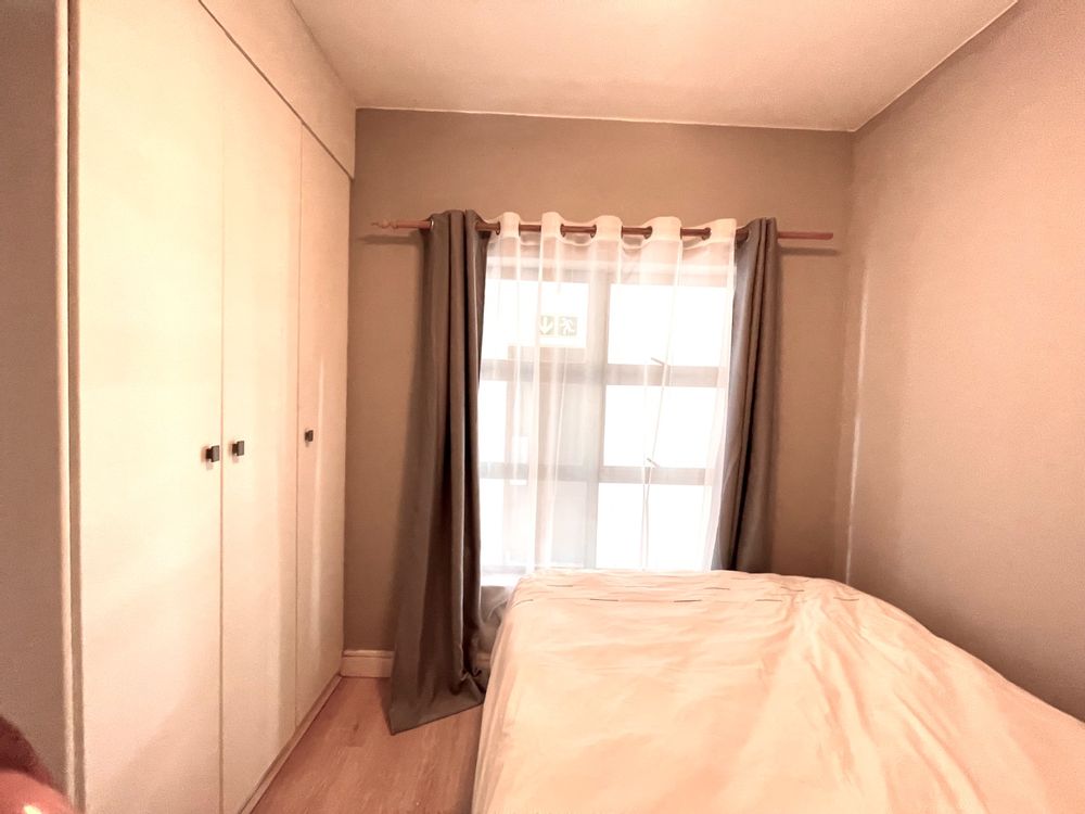 This lovely property offers two bedrooms which are fitted with white built-in cupboards. The main bedroom is facing north offering great natural light and steps away is a full bathroom which consists of bath tub, shower, toilet and a basin. The second bedroom has laminated flooring as well and shares the same bathroom with guests.