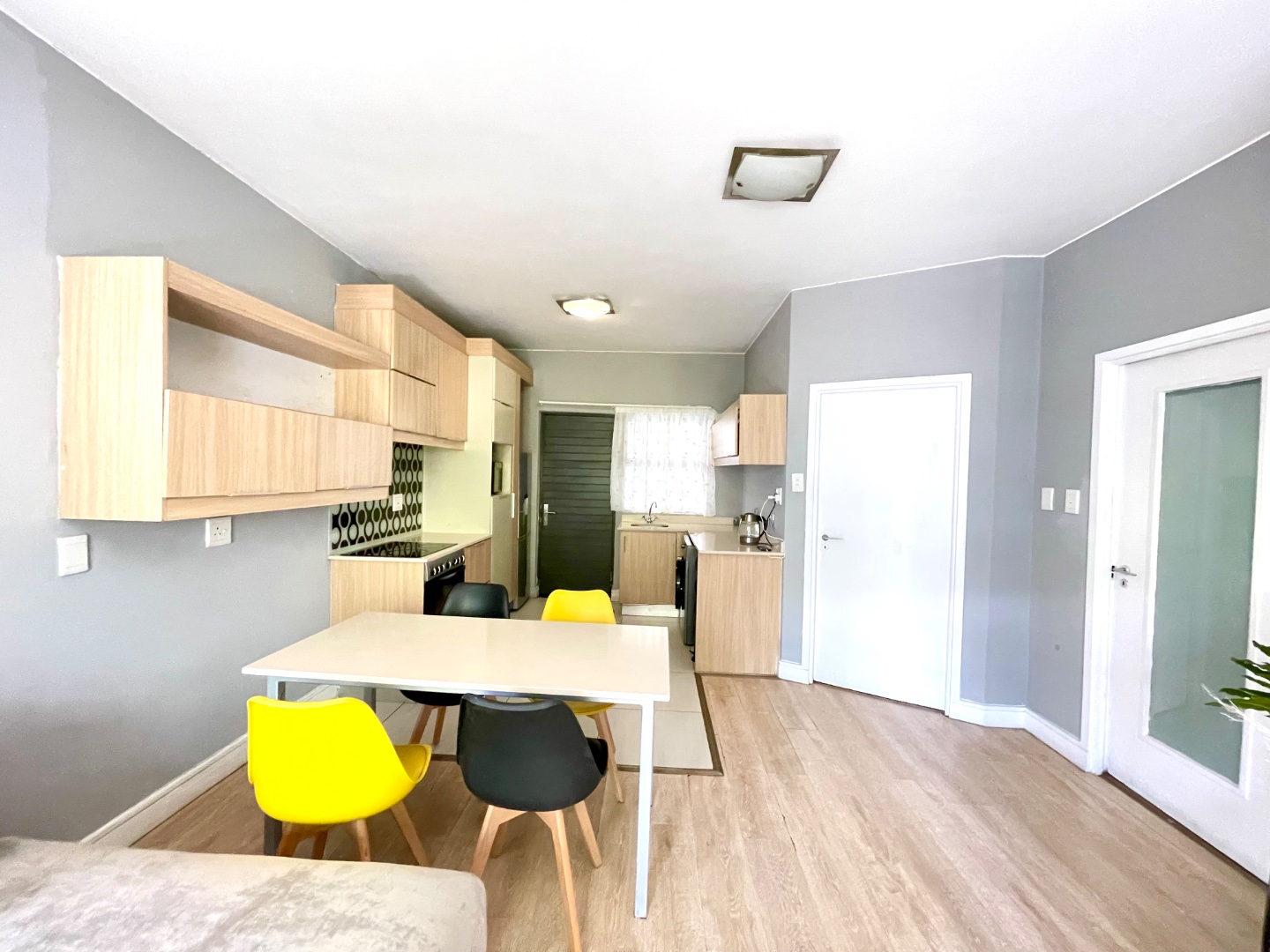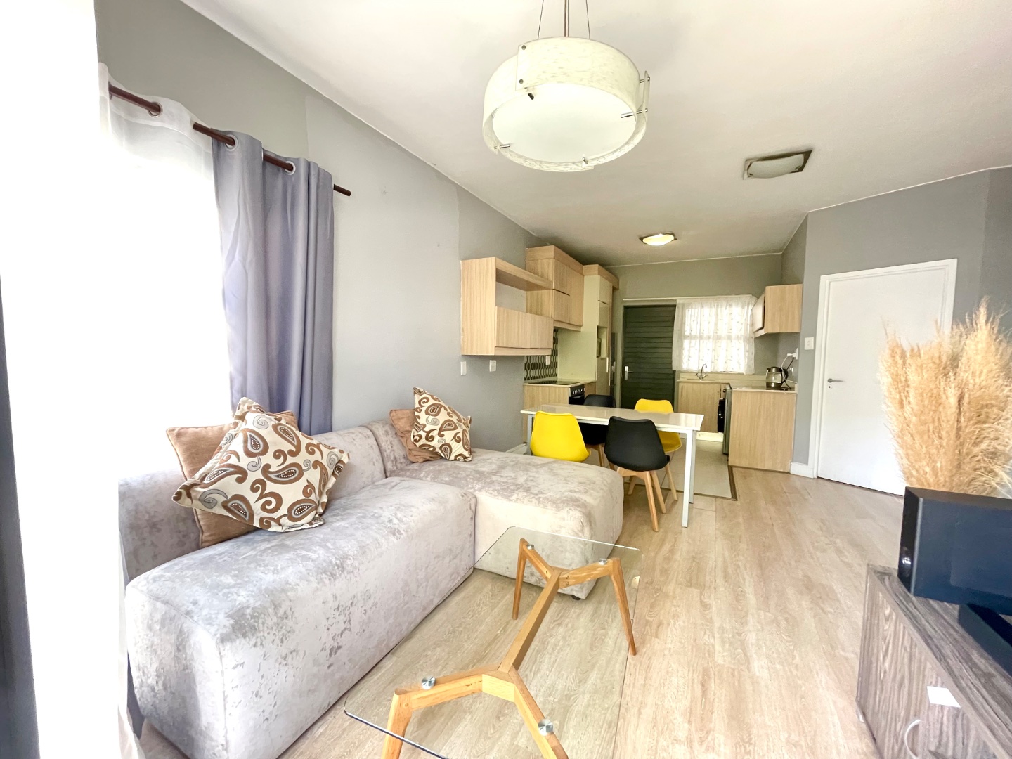 The property offers an open plan lounge fitted with laminated flooring with aluminum to a small balcony. The open plan offers refreshing views of the kitchen and lounge.