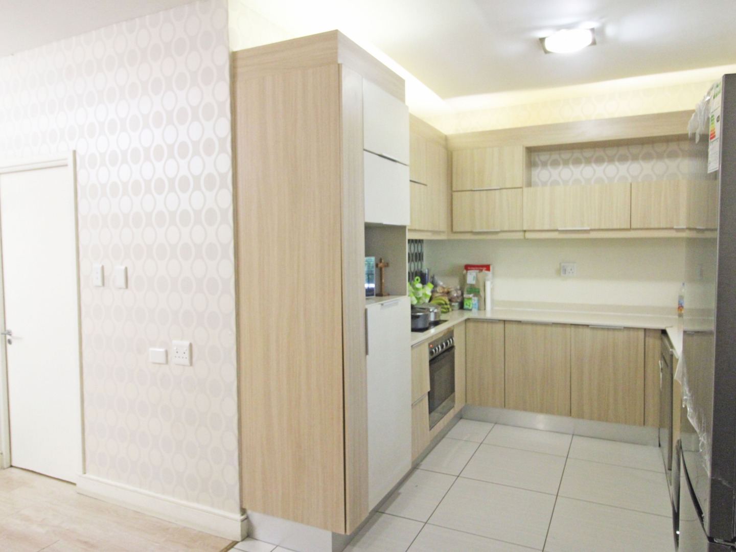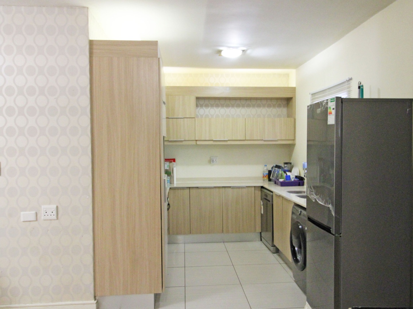 The kitchen has space for two under-counter appliances. All 3 bedrooms have laminated floors and ample cupboard space. The living room is very comfortable and opens to a balcony.