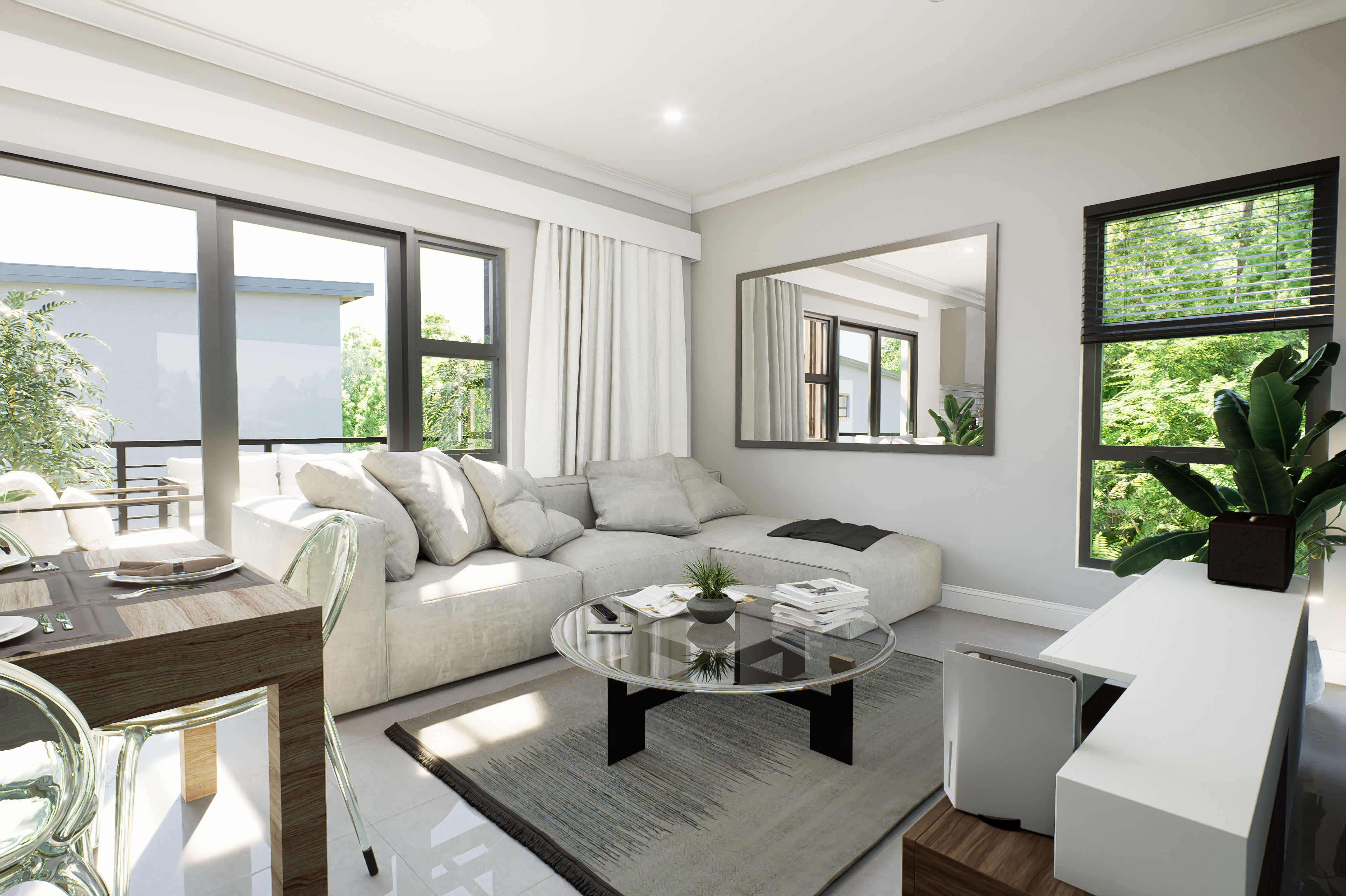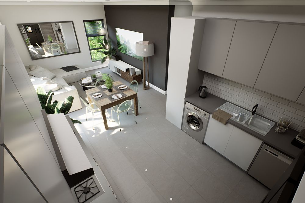 The Mea-Ne' is a high-end residential complex located in Rivonia, Sandton, featuring 21 boutique apartments designed for those who appreciate modern living and sustainable practices. Each unit includes 2 bedrooms and 2 bathrooms with an open-plan layout, creating seamless flow between the kitchen, dining, and living areas, ideal for relaxation and entertainment.