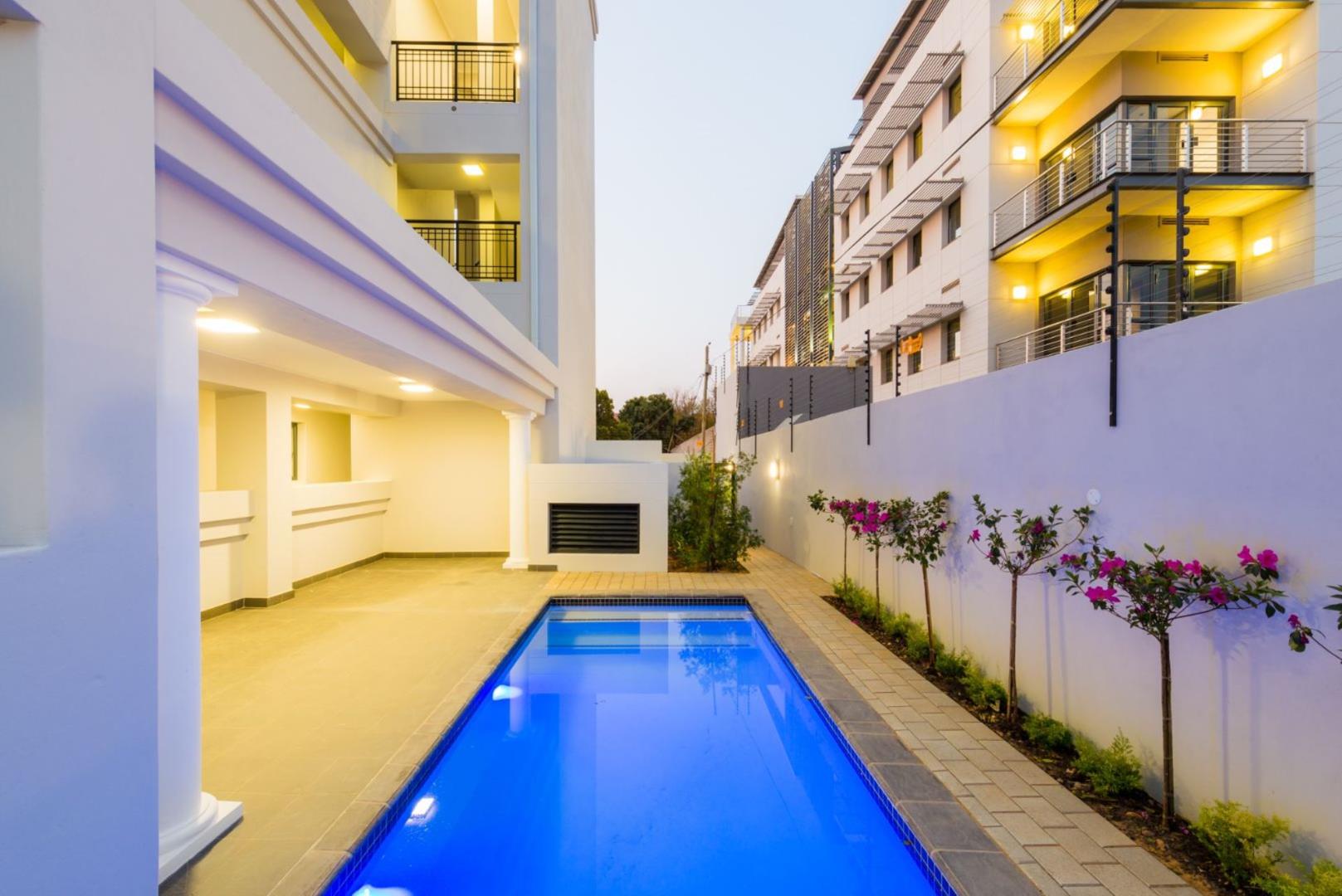This apartment also includes underground parking, a Study nook, formal building entrance with lifts, a pool and clubhouse for entertaining. 10min from Sandton.