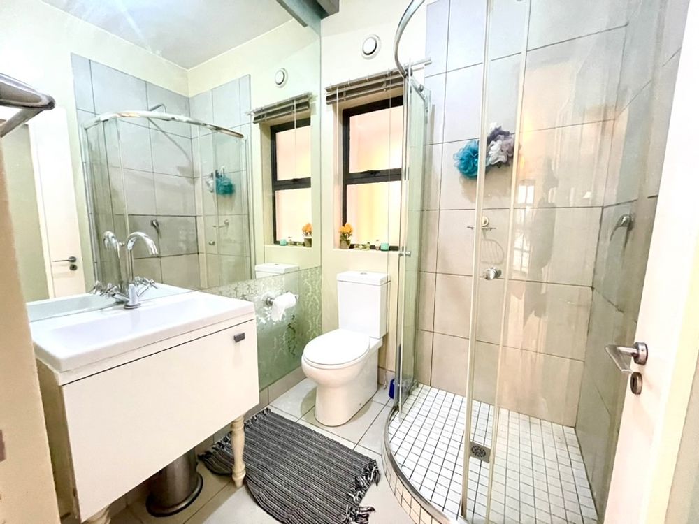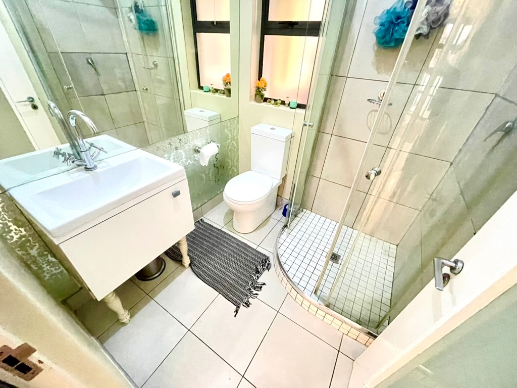 This immaculate second floor unit is located at The Link. The property offers two bedrooms which are fitted with comfortable wooden flooring and modern built-in cupboards. The main bedroom is facing north offering great natural light and steps away is an ensuite full bathroom which consists of a bathtub, shower, toilet and a basin. The second bathroom only has a shower