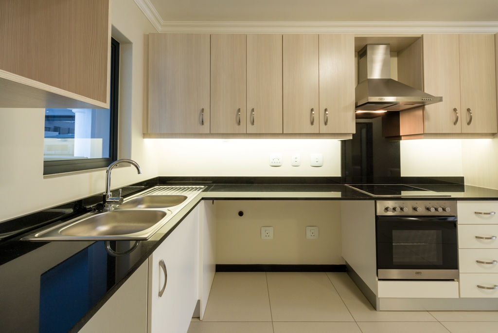 Kitchen space for 2 under the counter appliances and a fridge. Comes with granite tops and a pantry.