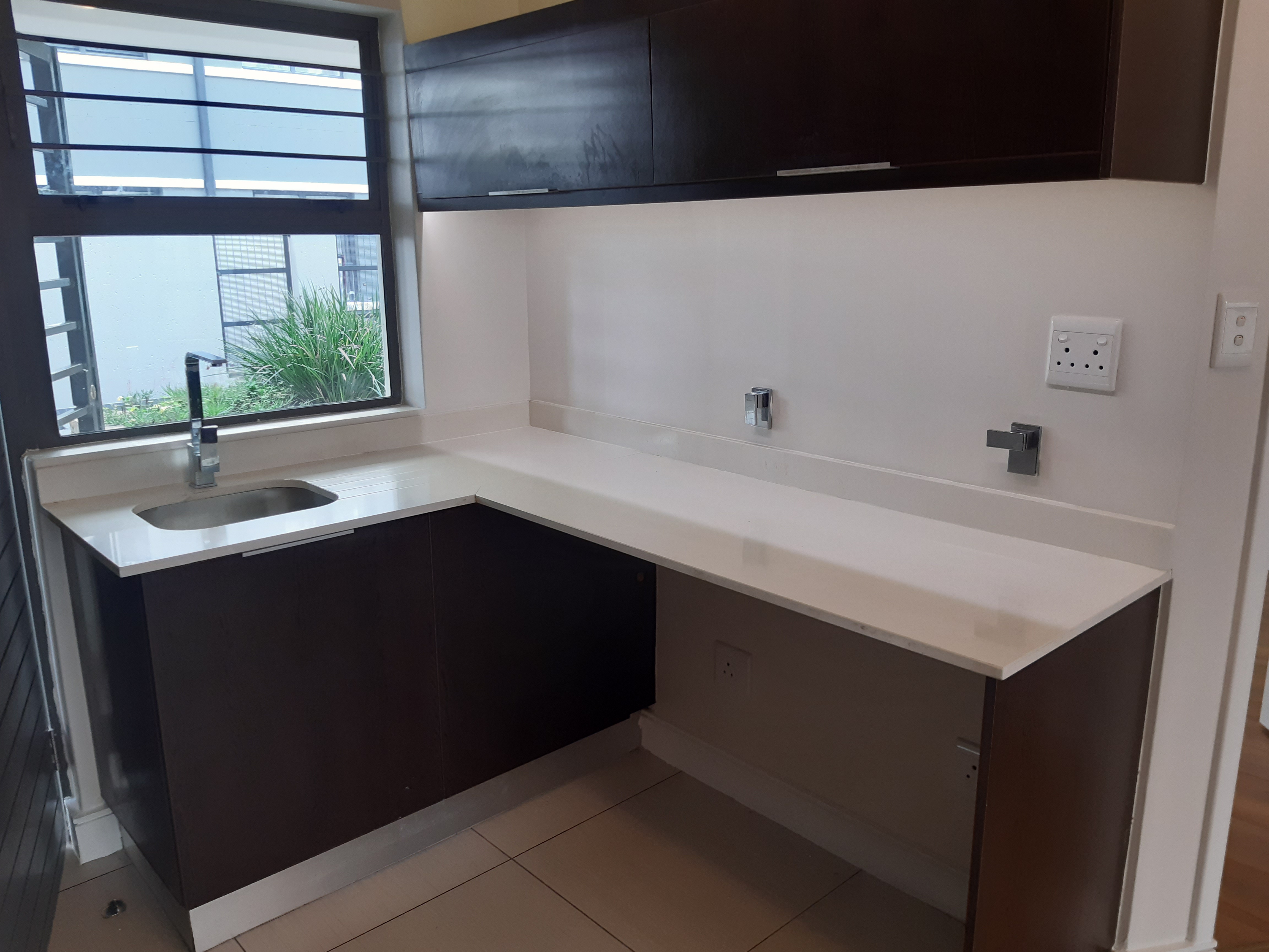 A modern lock up and go ground floor 2 bed 1 bath apartment available in Rivonia. Modern tiled kitchen with granite tops, fitted stove and built-in cupboards. Bedroom and lounge with wooden laminated flooring. 1 basement parking bay and 1 open bay.