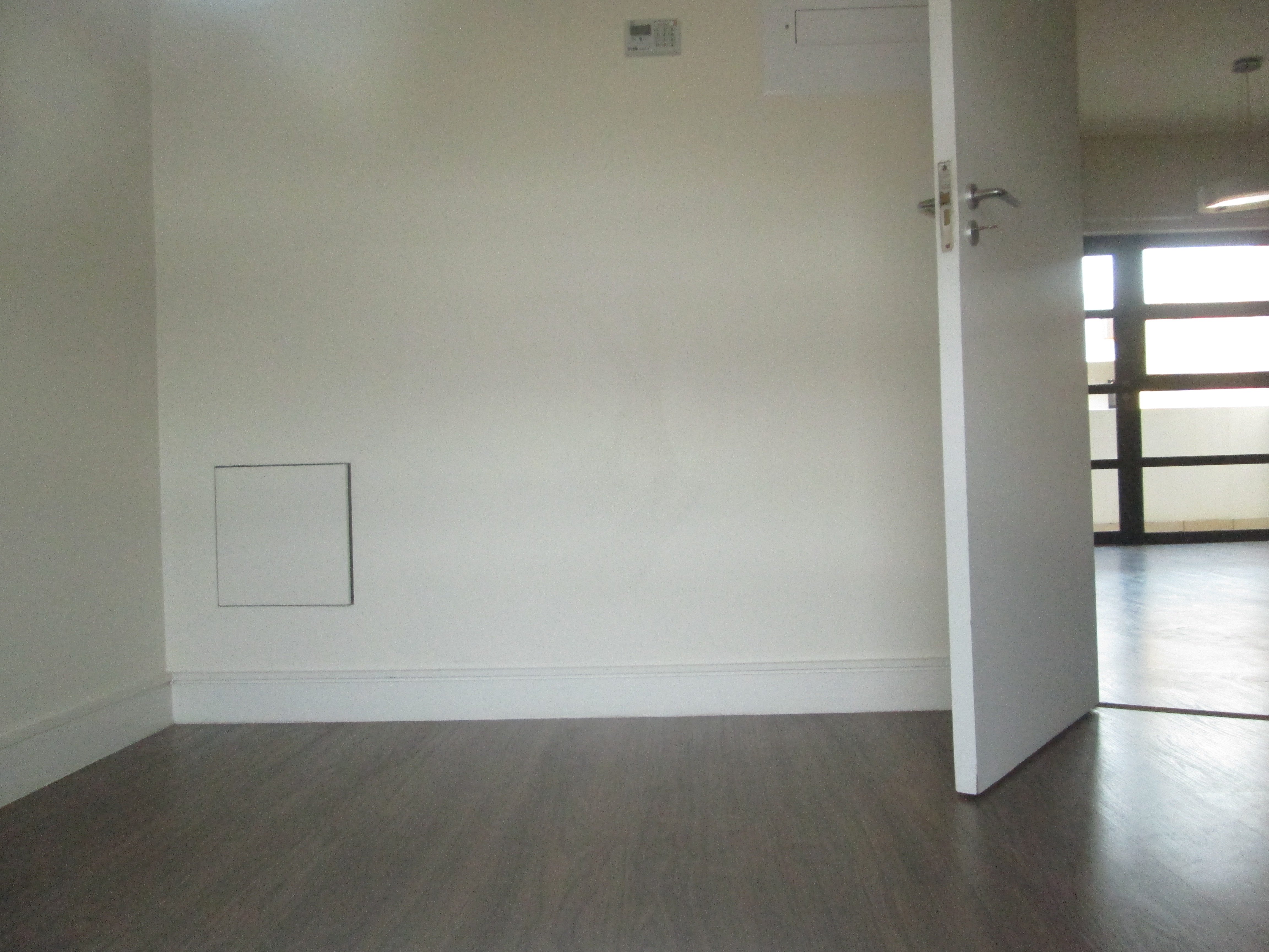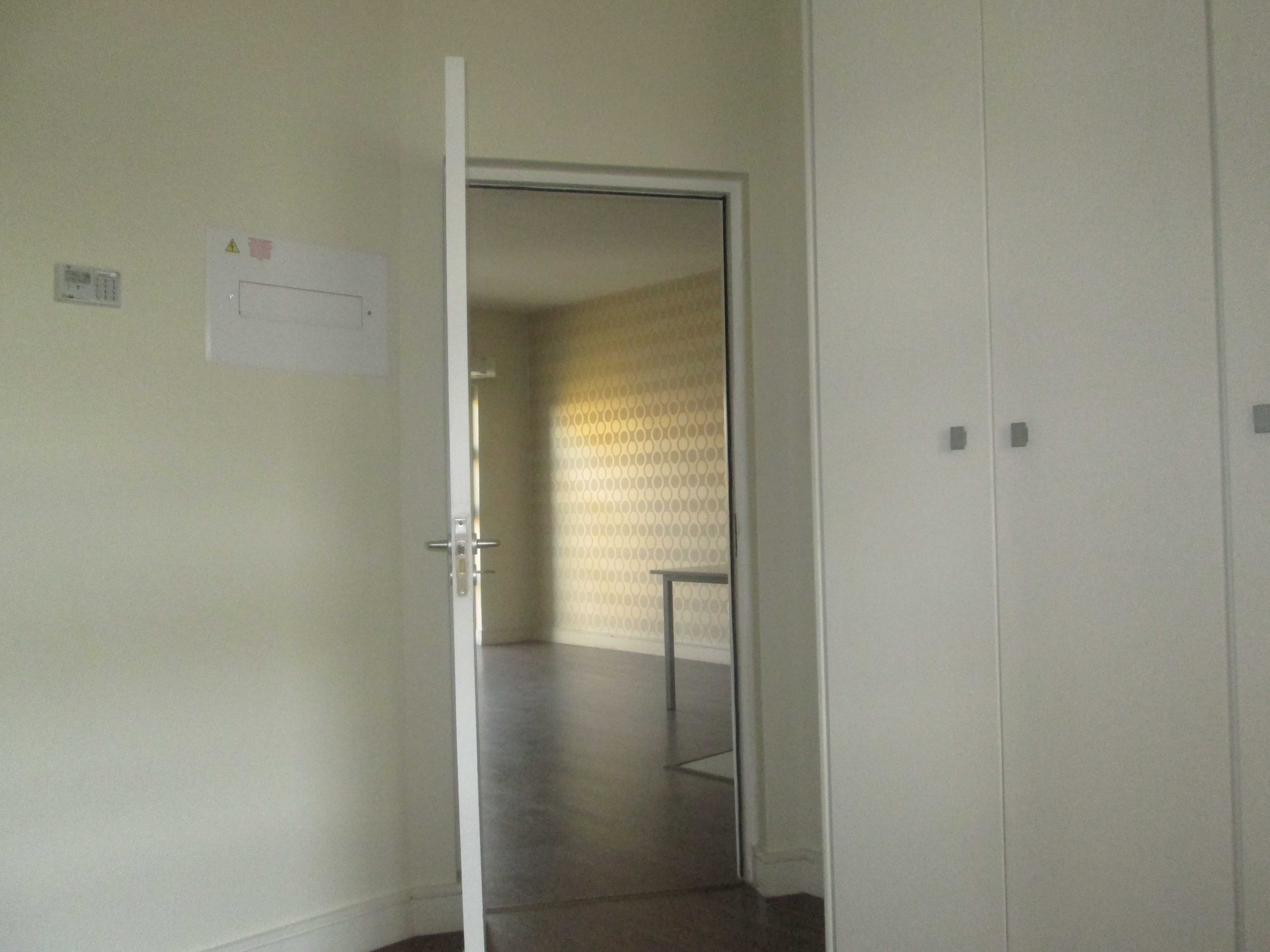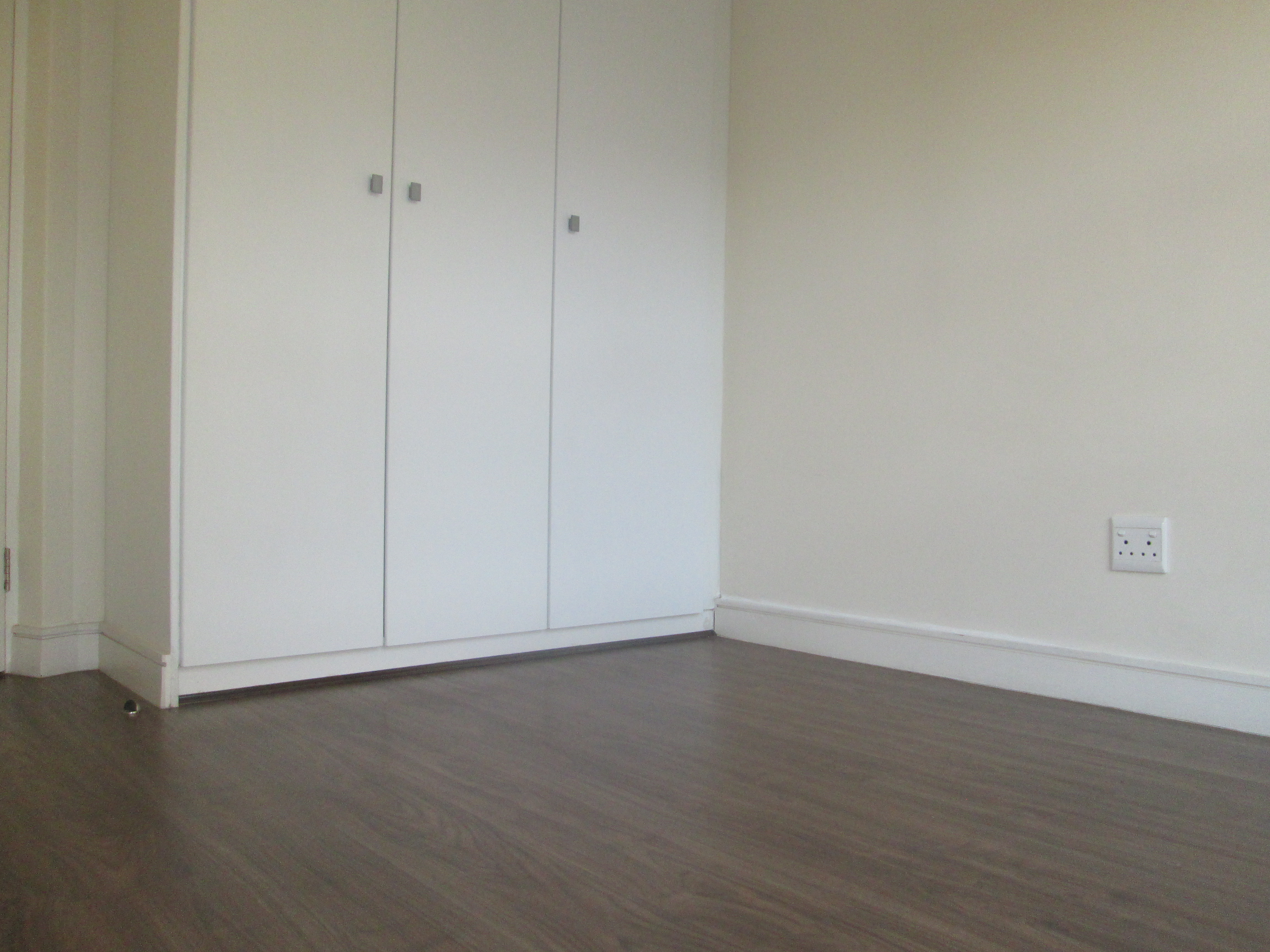 Bedroom and lounge with wooden laminated flooring.