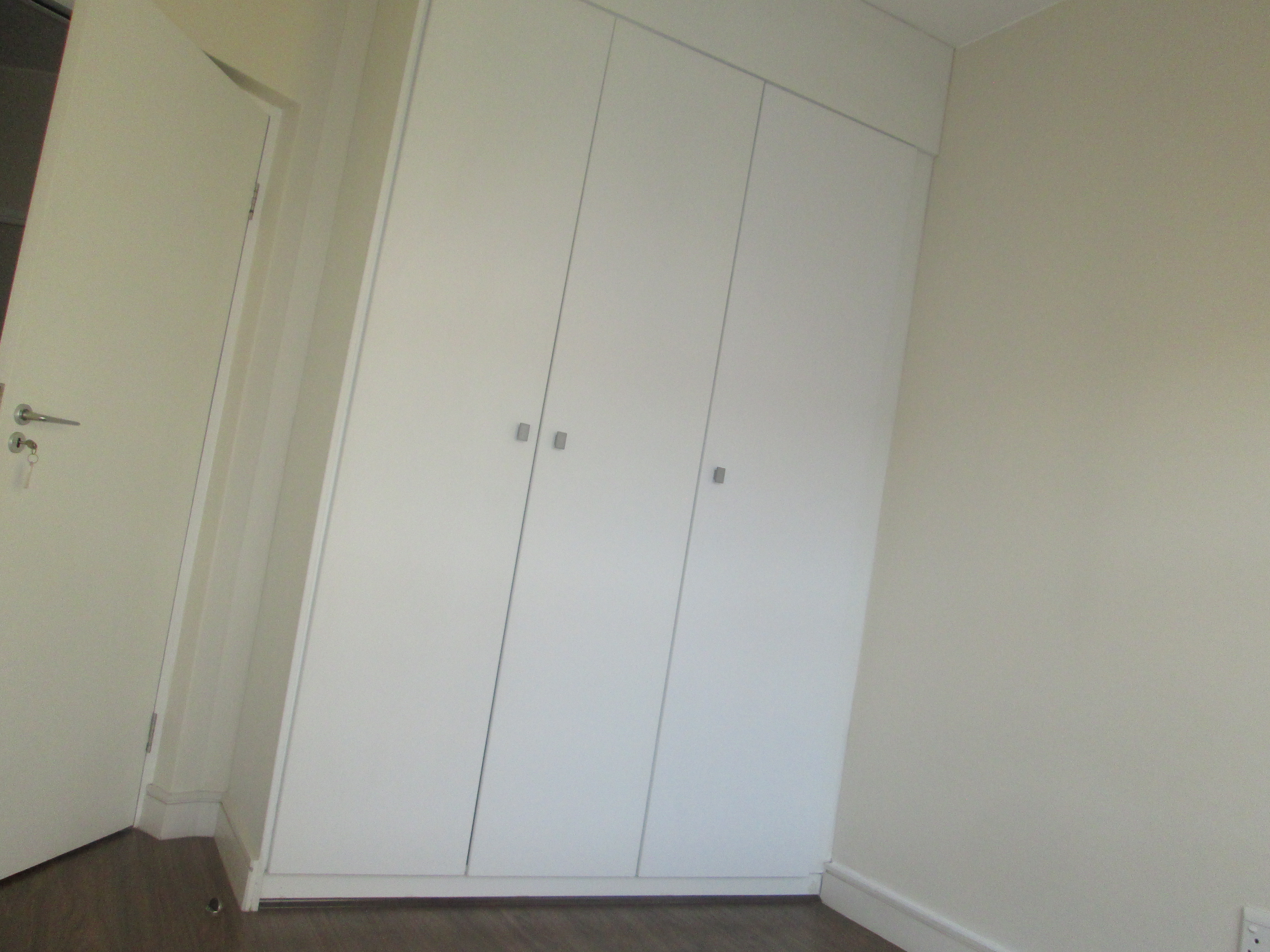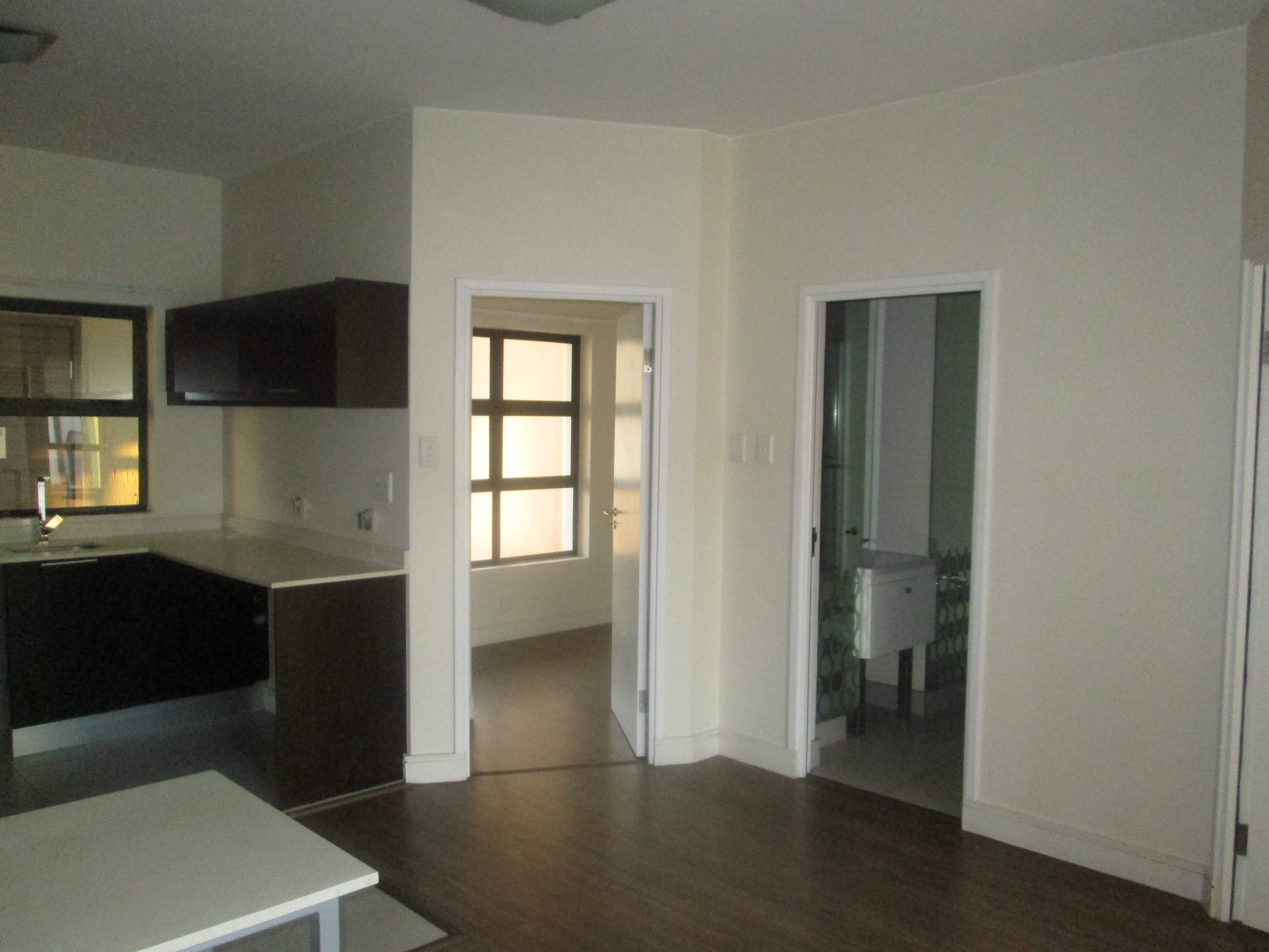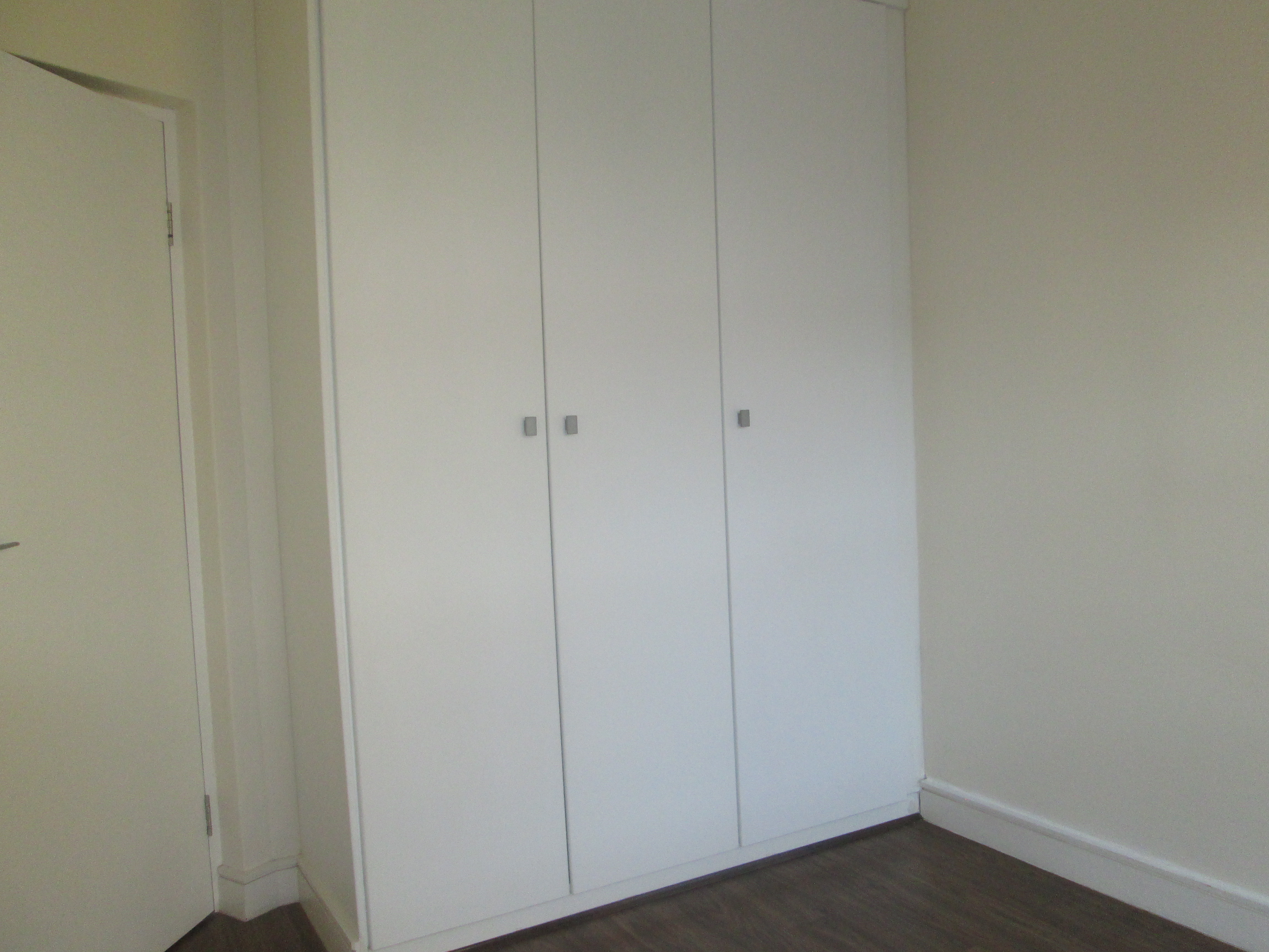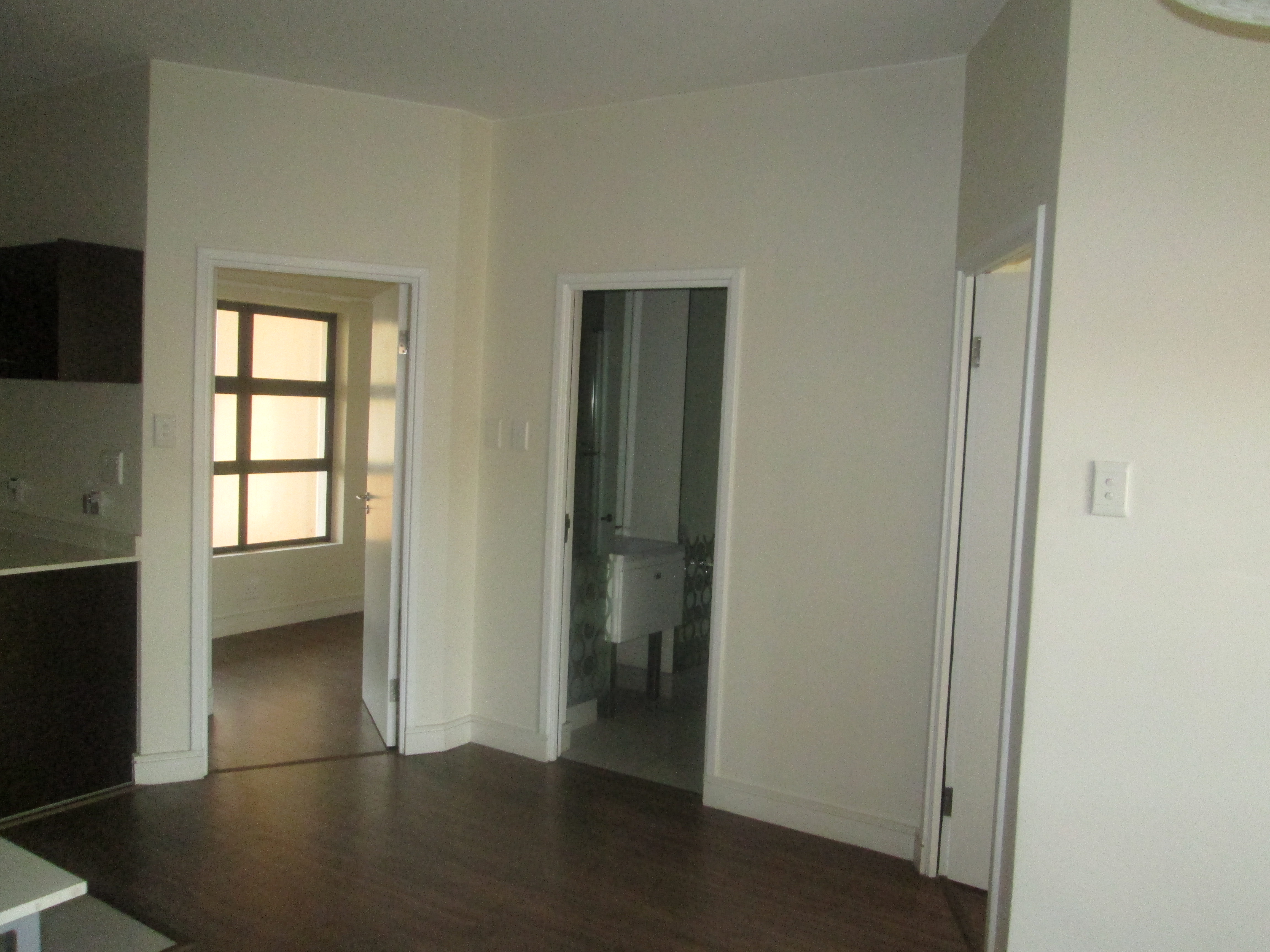Bedroom and lounge with wooden laminated flooring.