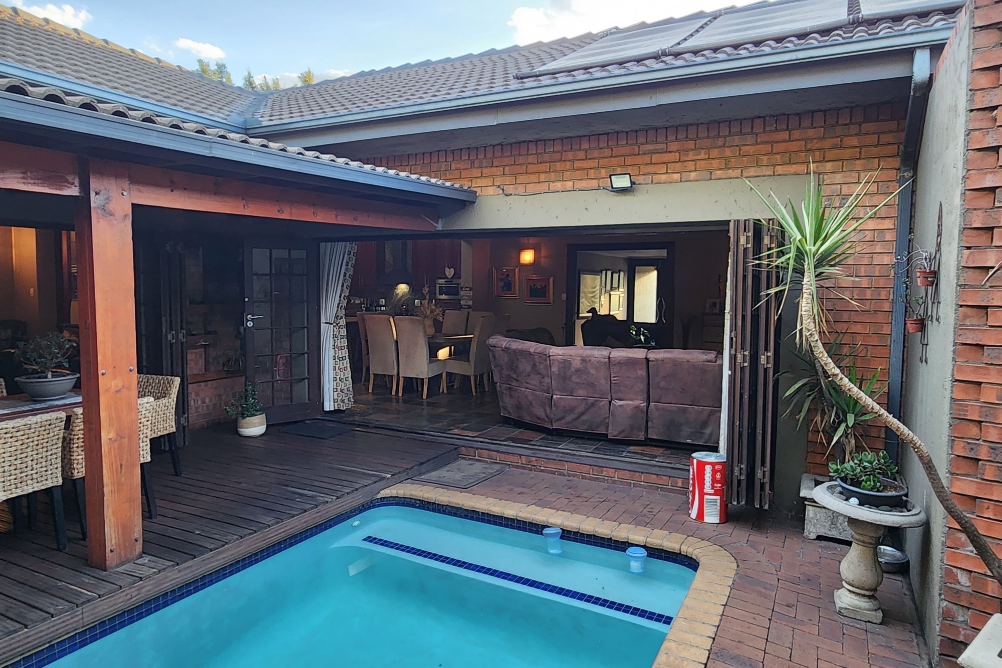 Designed with high-end finishes, the bedrooms feature premium vinyl flooring, while additional perks include staff accommodation, a double garage, a 5kVA solar system, gas geysers in two bathrooms, and a backup water tank.