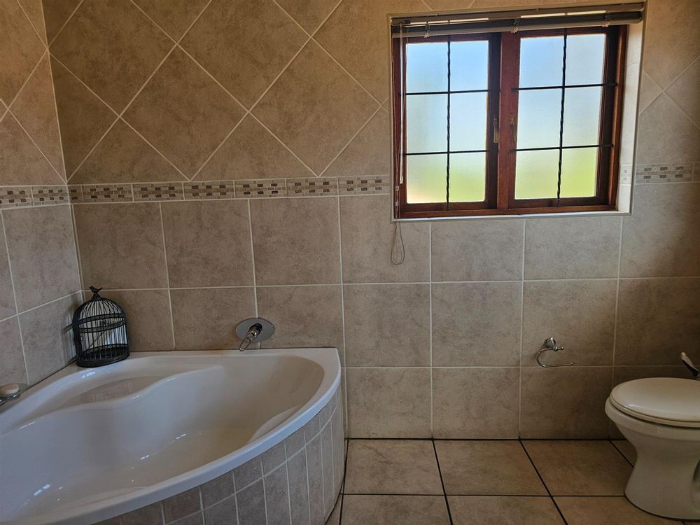 The home welcomes you with open-plan living areas that flow seamlessly to the kitchen with a separate scullery, leading out onto a deck and sparkling pool that offer fantastic views over the dam and park. Entertain effortlessly in the braai room, complete with a built-in braai and bar, ideal for hosting family and friends.