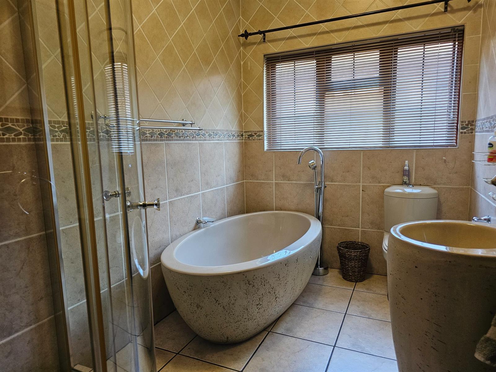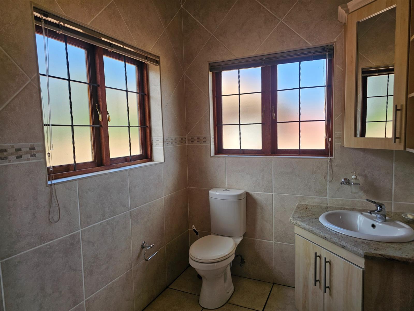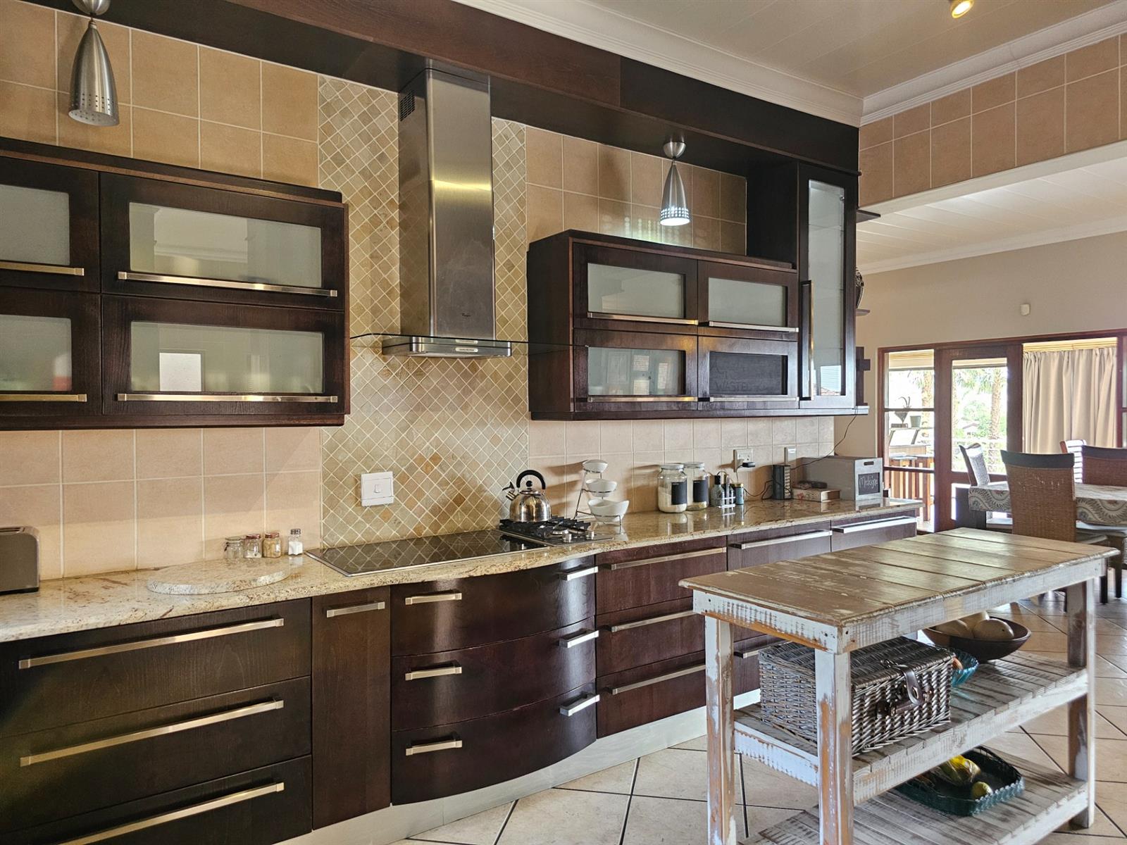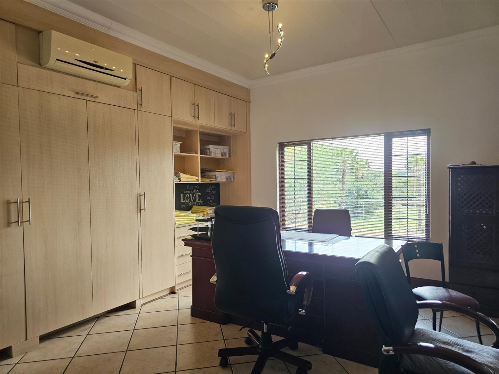 The home welcomes you with open-plan living areas that flow seamlessly to the kitchen with a separate scullery, leading out onto a deck and sparkling pool that offer fantastic views over the dam and park. Entertain effortlessly in the braai room, complete with a built-in braai and bar, ideal for hosting family and friends.