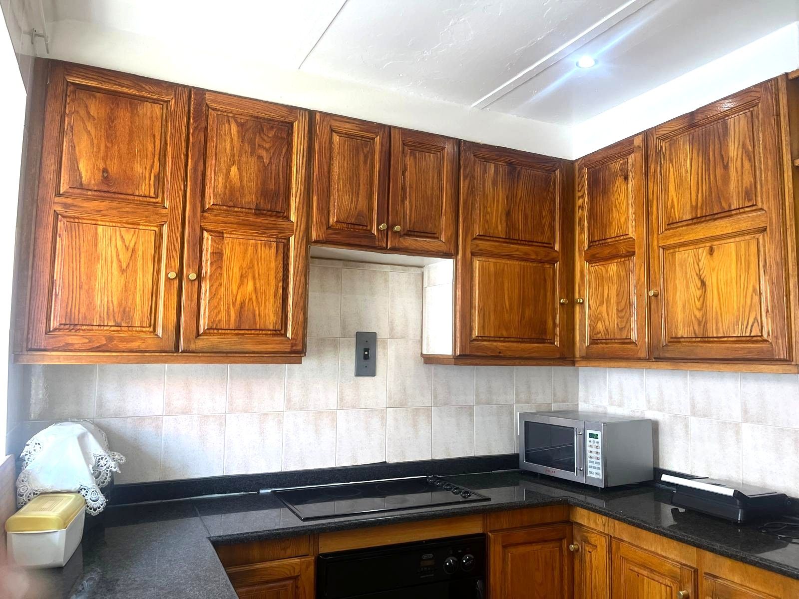 This home boasts an inviting kitchen with Bosch appliances fitted electric stove, undercounter oven, washing machine, fridge/freezer and ample cupboards.