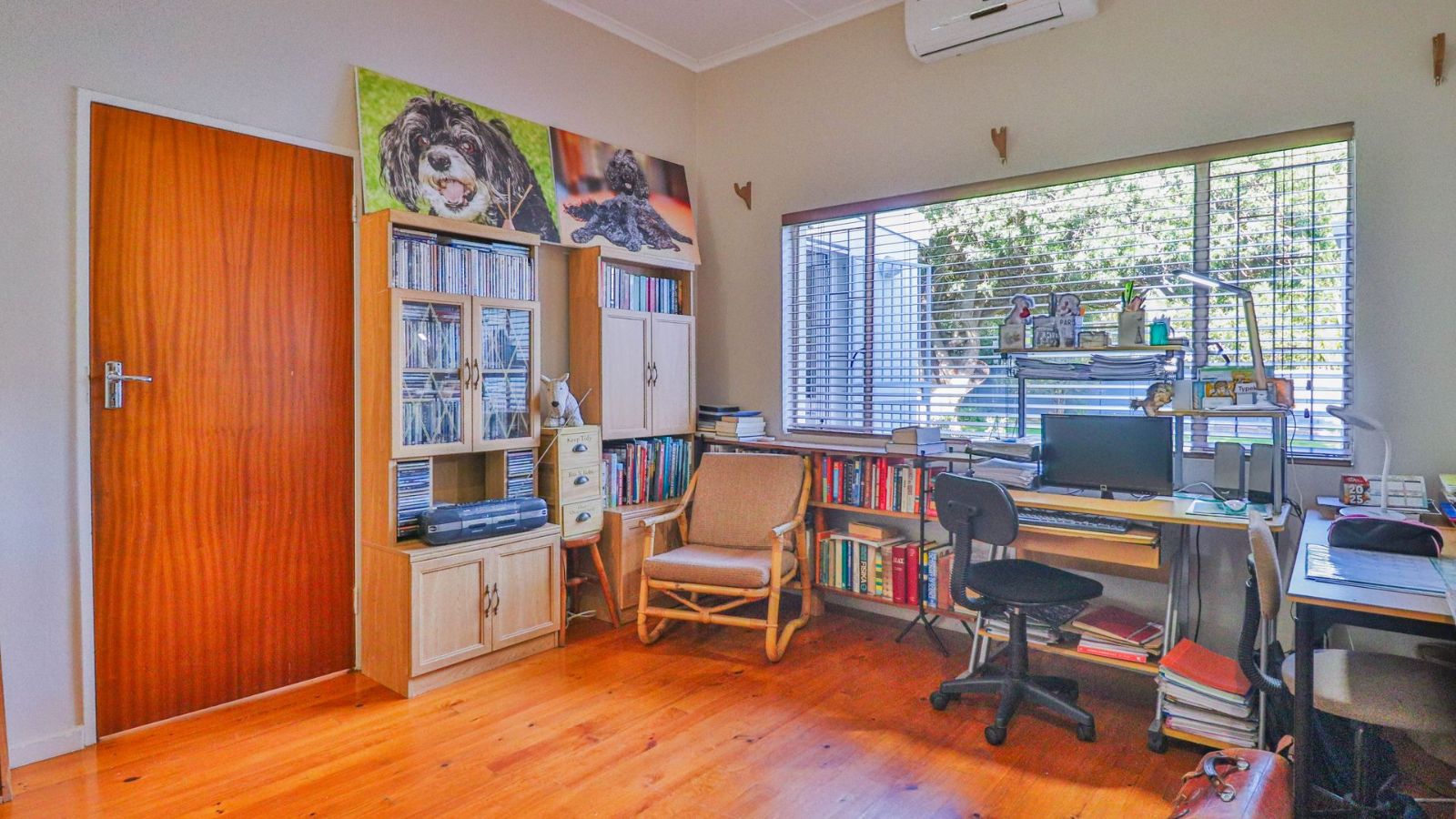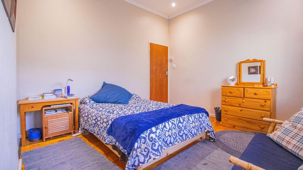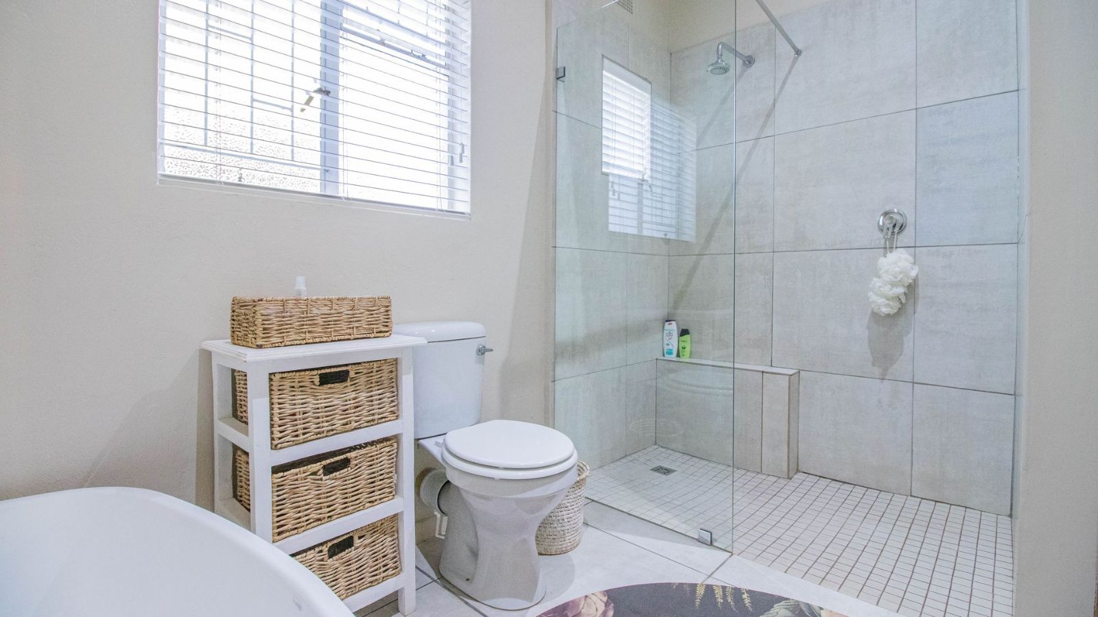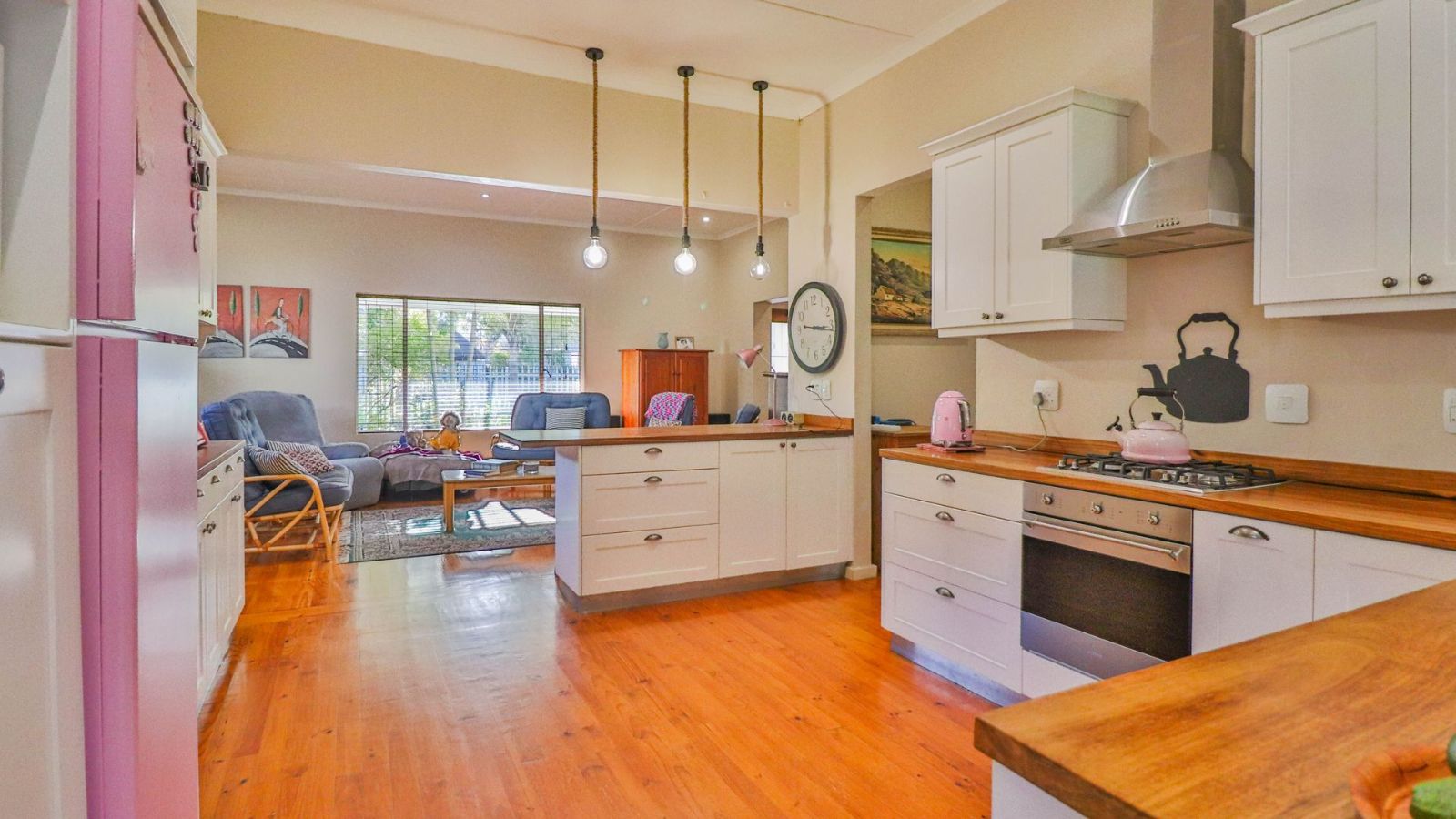 As you enter through the automated gate, you are welcomed by a lush garden and a covered patio. Inside, an open plan living room, large office and kitchen with a breakfast nook, ample cupboard space, work surface, a separate scullery and laundry form the heart of the home.