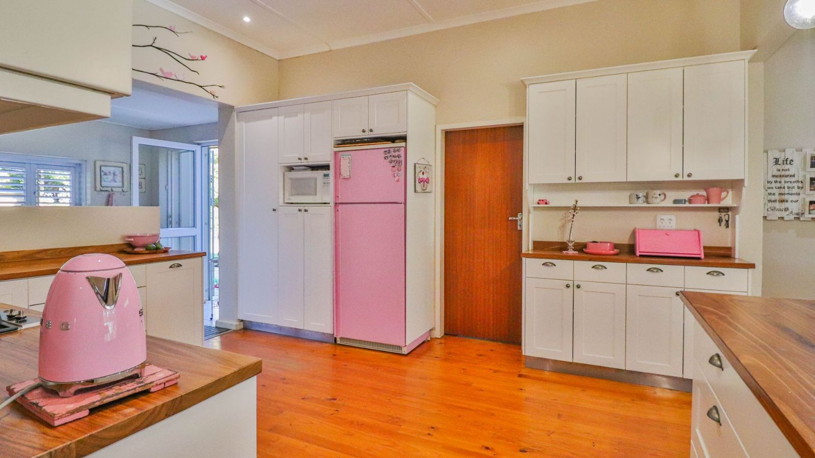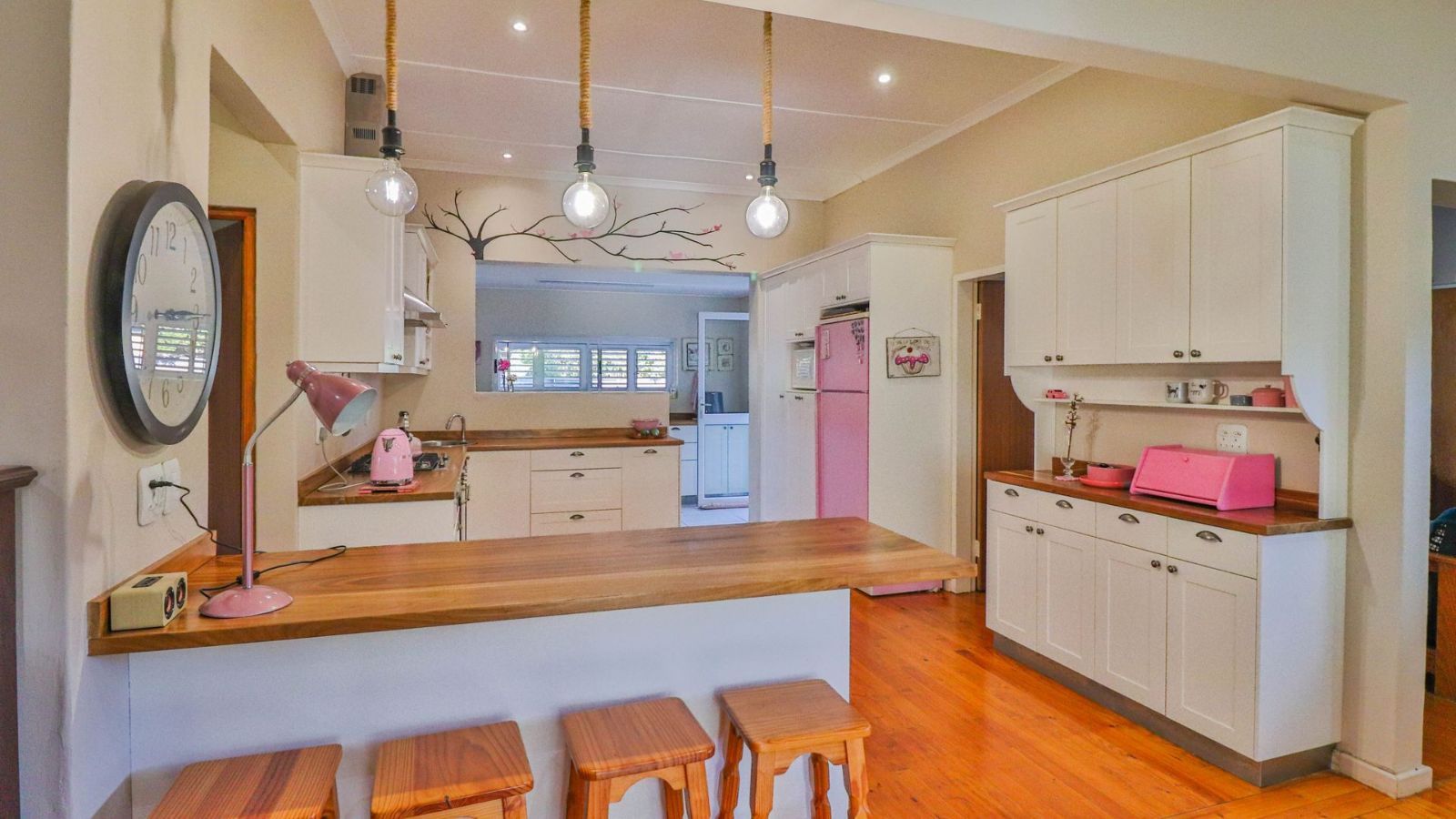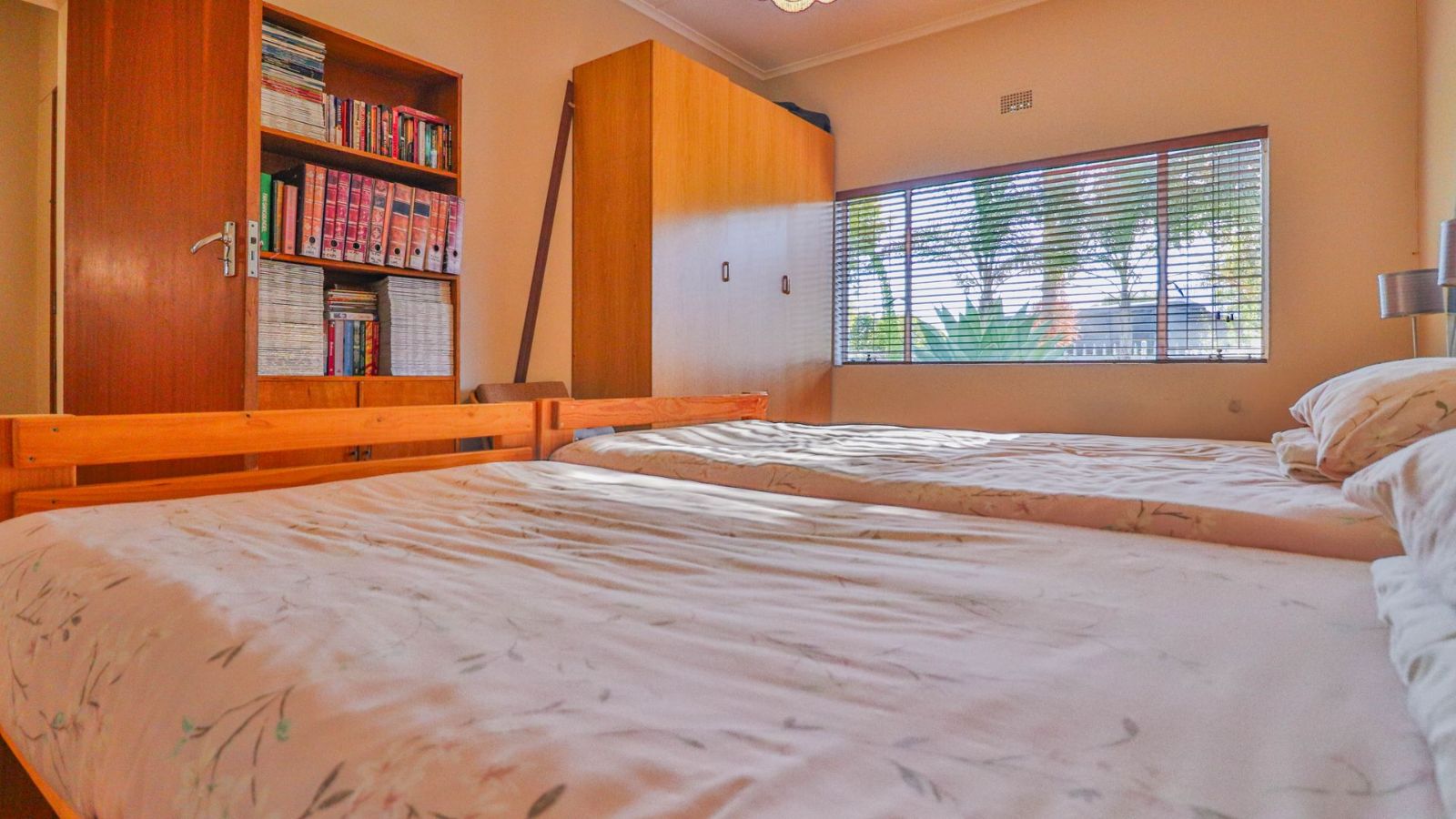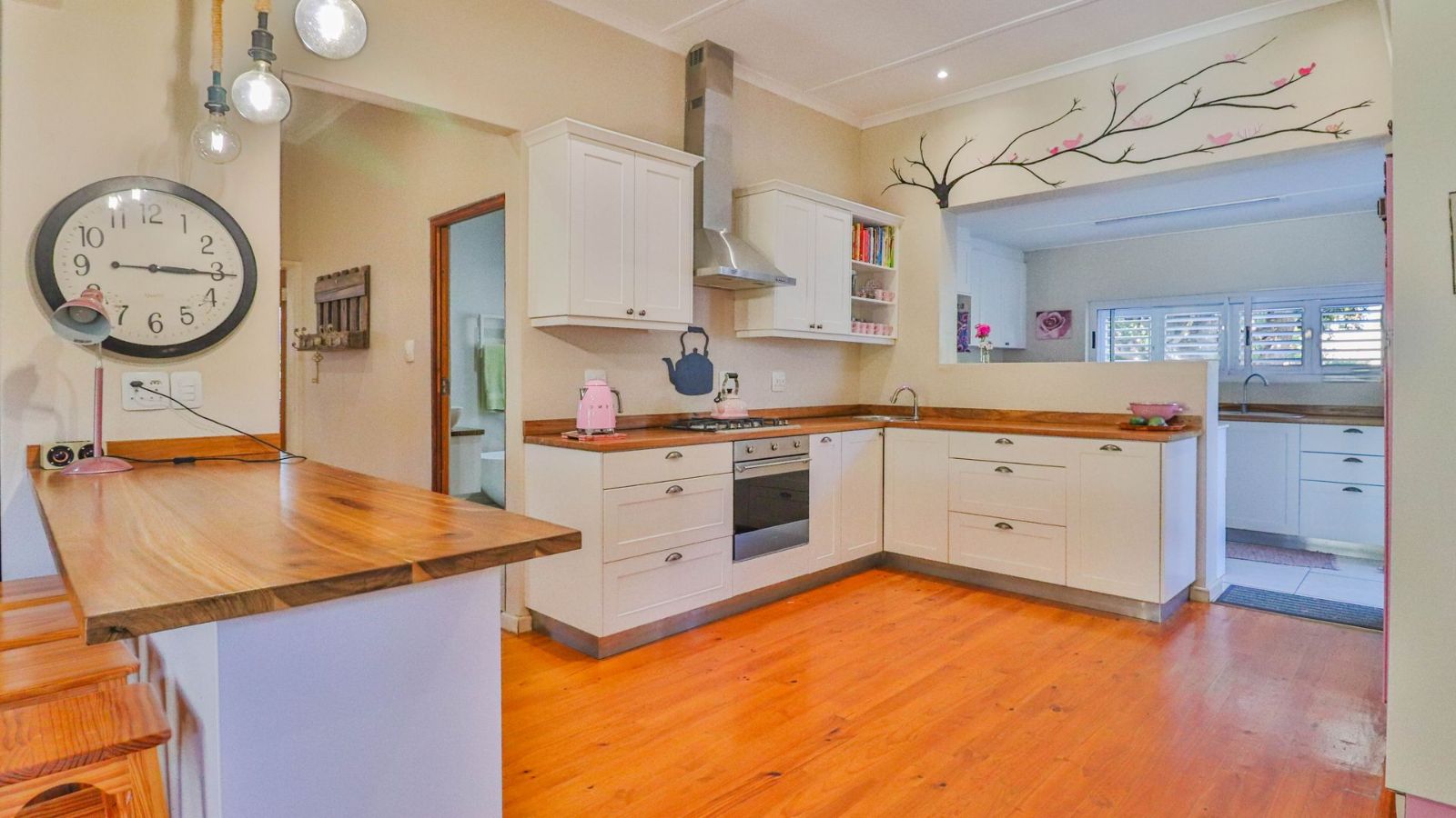 As you enter through the automated gate, you are welcomed by a lush garden and a covered patio. Inside, an open plan living room, large office and kitchen with a breakfast nook, ample cupboard space, work surface, a separate scullery and laundry form the heart of the home.