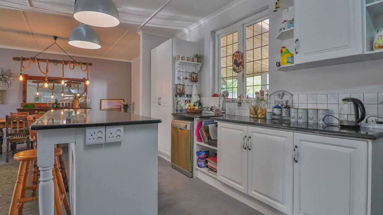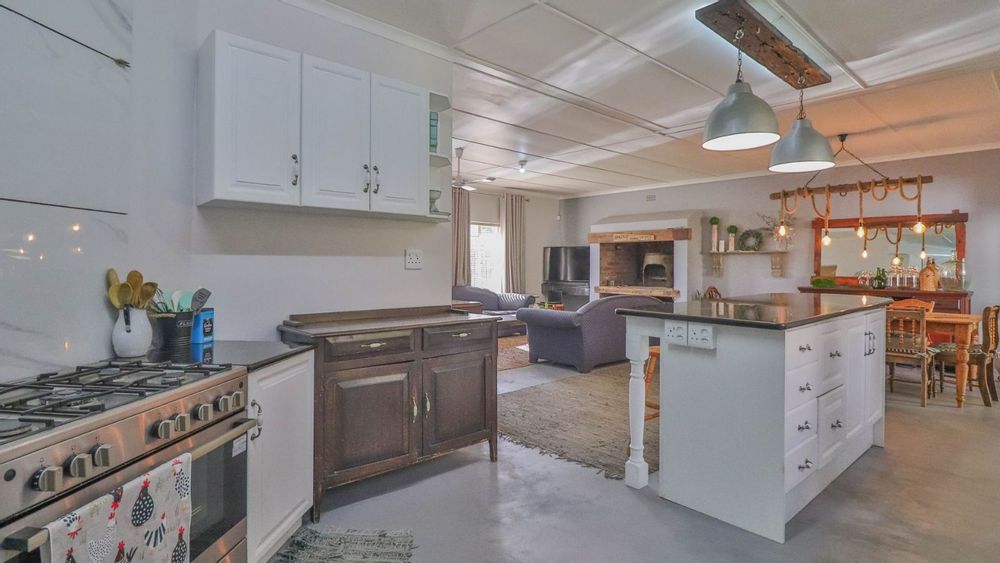 You are welcomed by a sun-soaked porch that leads to your main entrance. The heart of the home is situated here: A family room with a built-in braai, dining area and a kitchen with ample cupboard space, work surface, a breakfast nook, scullery and laundry with extra shelves for your convenience. An easy flow is created to your outdoor entertainment area. No matter the weather - you are guaranteed to have fun, quality time with loved ones year-round.