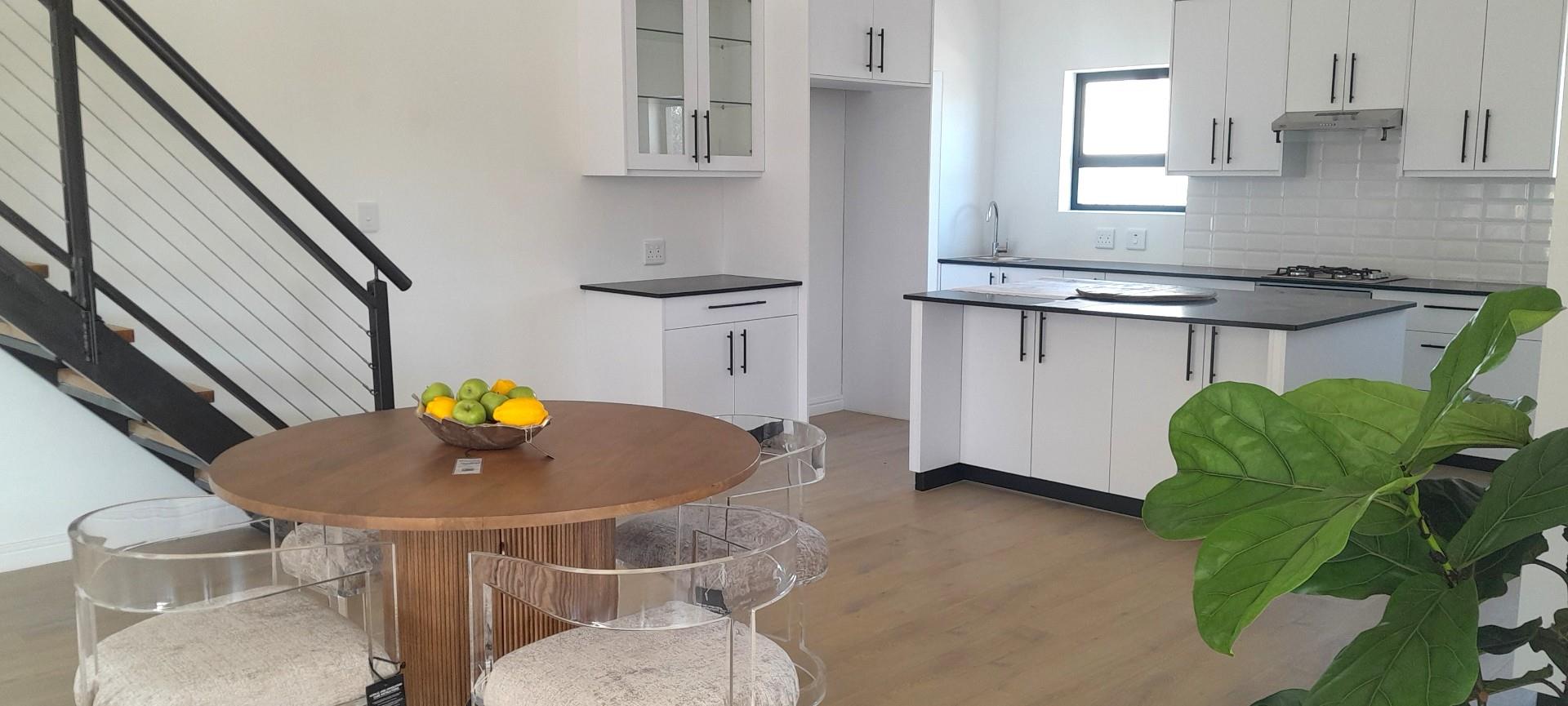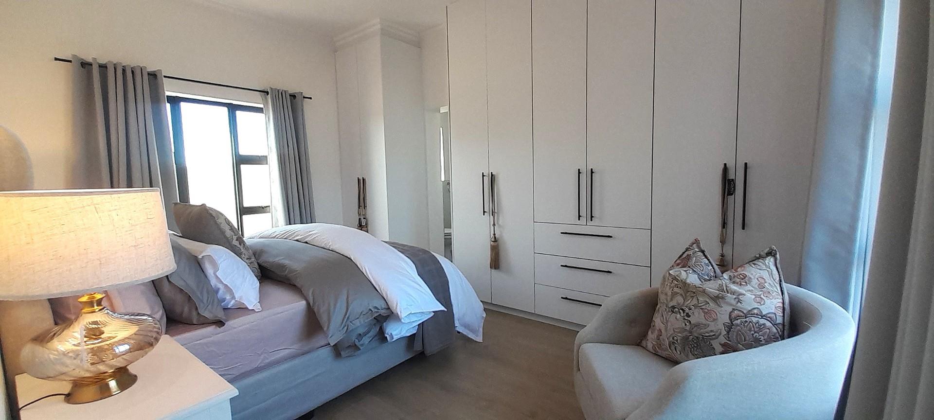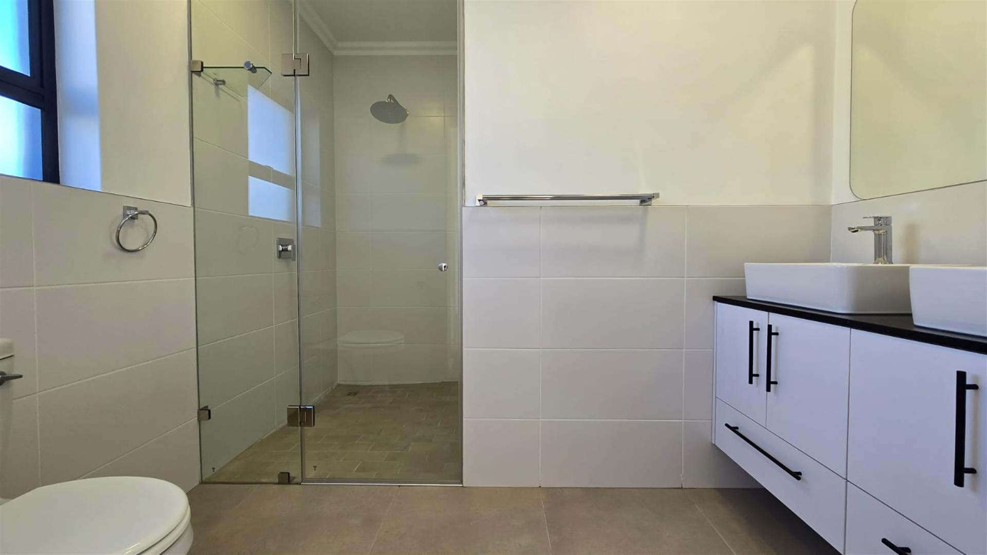Consisting of 3 Bedrooms , 2 with build-in cupboards, the Main with an En-suite ( Shower, toilet, dual basins), both with Ceiling Fans with Light Fittings ( with manual remotes), a second bathroom with a Shower, Toilet and Basin, and the 3rd Bedroom, that of the Loft, which can also be used as an Entertainment Pad, with a Balcony. The Lounge, Braai Room and Kitchen, flows into each other seamlessly. The kitchen is complemented with a Gas Hob, Electric Oven, black Granite Tops, ample Built-in Cupboards, and a Spacious Scullery.