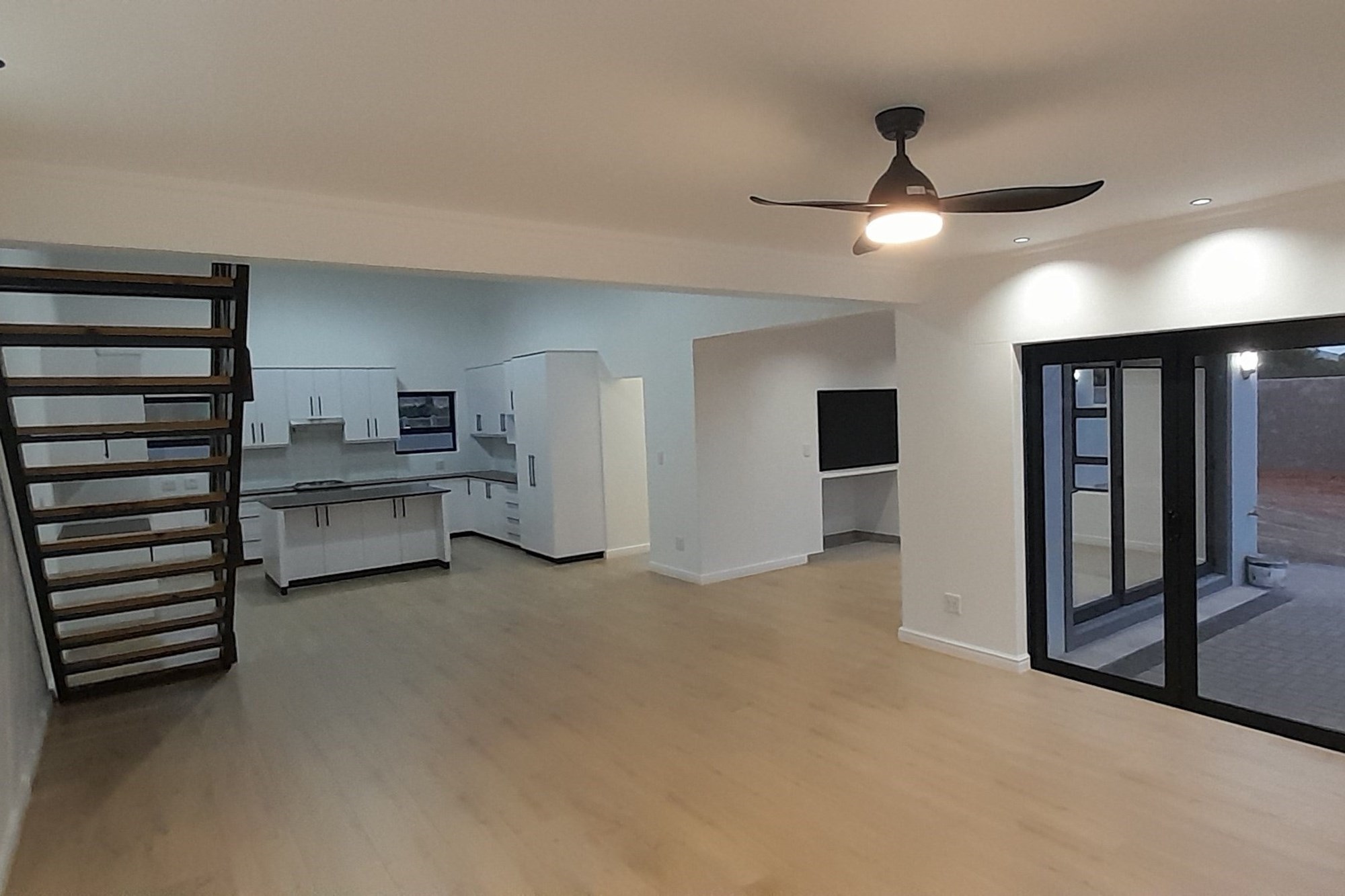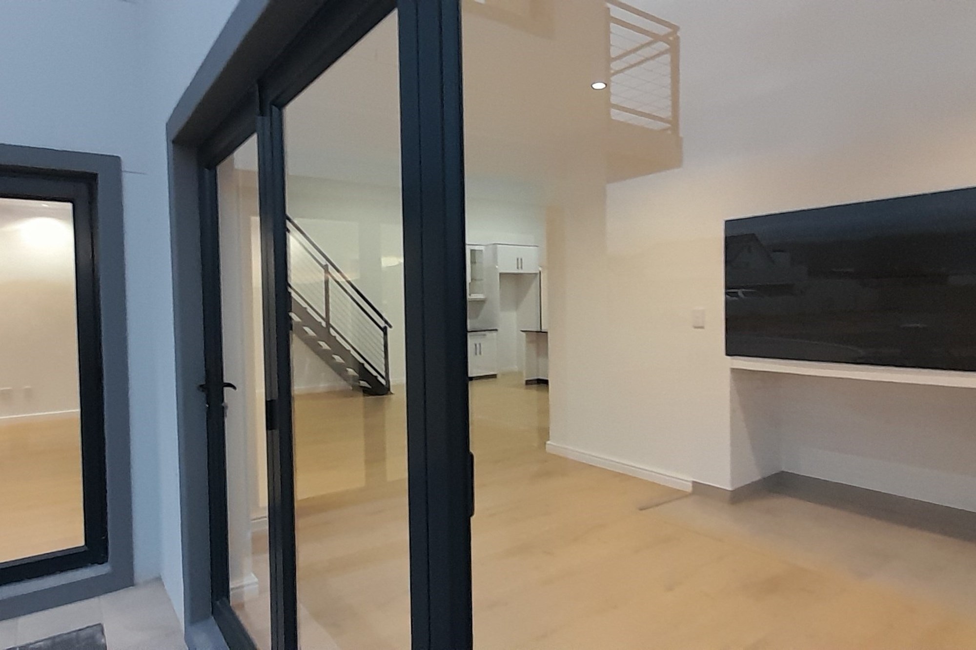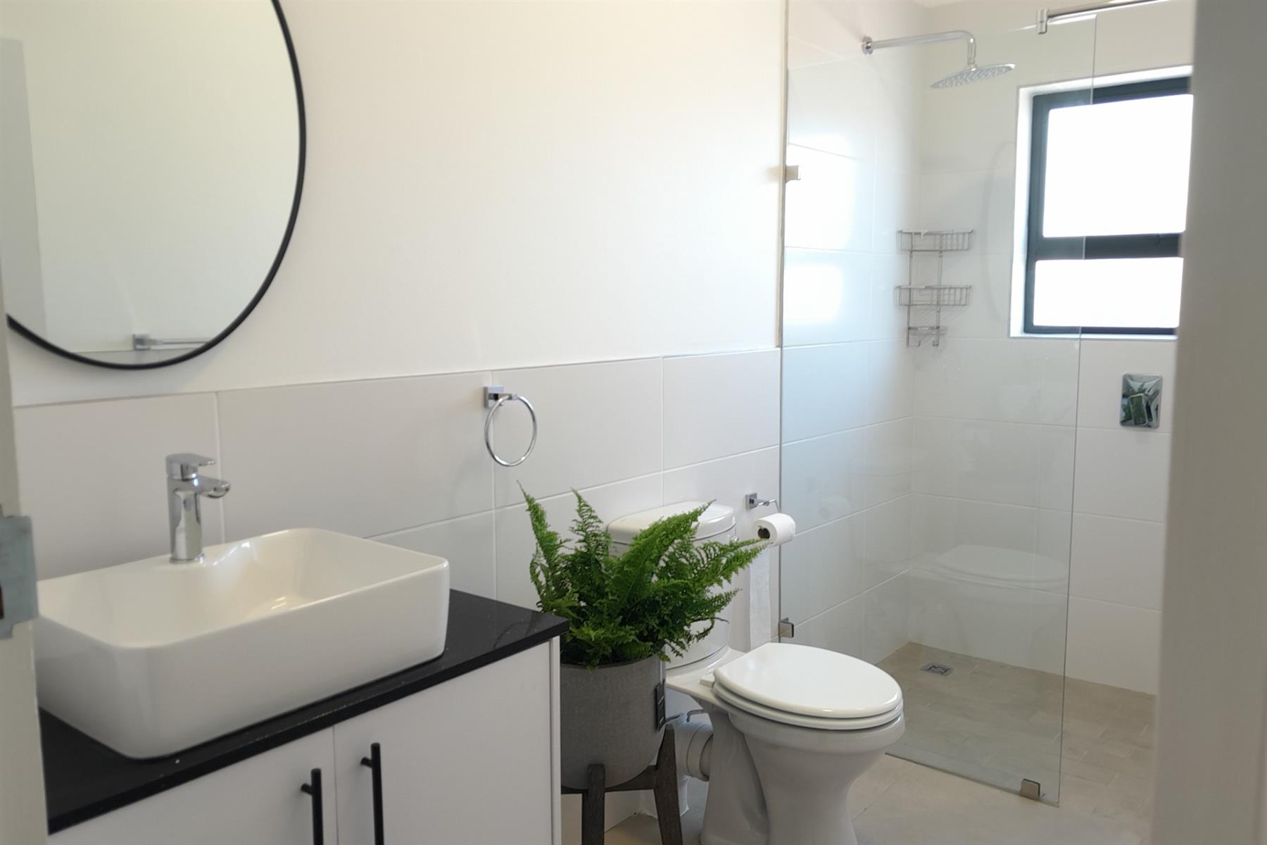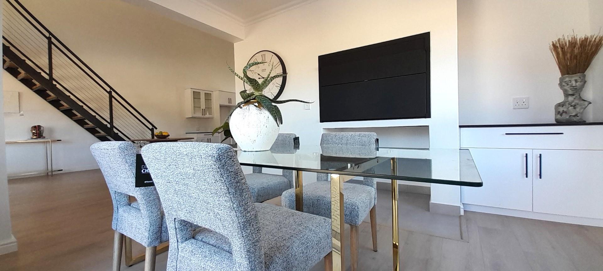 Consisting of 3 Bedrooms , 2 with build-in cupboards, the Main with an En-suite ( Shower, toilet, dual basins), both with Ceiling Fans with Light Fittings ( with manual remotes), a second bathroom with a Shower, Toilet and Basin, and the 3rd Bedroom, that of the Loft, which can also be used as an Entertainment Pad, with a Balcony. The Lounge, Braai Room and Kitchen, flows into each other seamlessly. The kitchen is complemented with a Gas Hob, Electric Oven, black Granite Tops, ample Built-in Cupboards, and a Spacious Scullery.