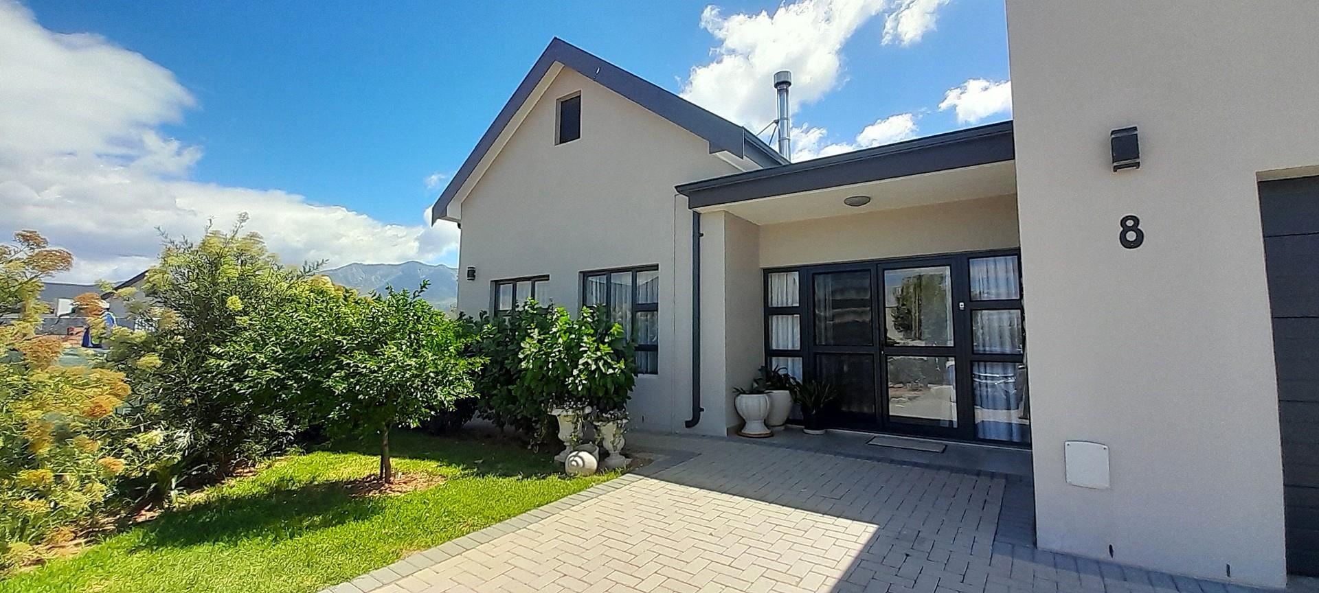 FOR RETIREMENT or Country Living at its best! This Sunny, Stylish, Savvy and Spacious Home with Spectacular Views, is complimented by 2 Bedrooms, the main with a walk-in closet, the second with build-in cupboards, 2 Bathrooms, which both are en-suites, a spacious study, an open plan kitchen, spacious lounge with a fireplace, a Braai Room with a build-in braai, which can be easily converted to just a dining room, if "braai-ing" indoors is not your thing, a scullery, a reception hall, a spacious single garage with a back-up inverter ( installed with all the mandatory local authority`s consents) , Air-Conditioners, Parking for 2 Cars, Great Neighbours and situated in a quiet cul-de-sac!