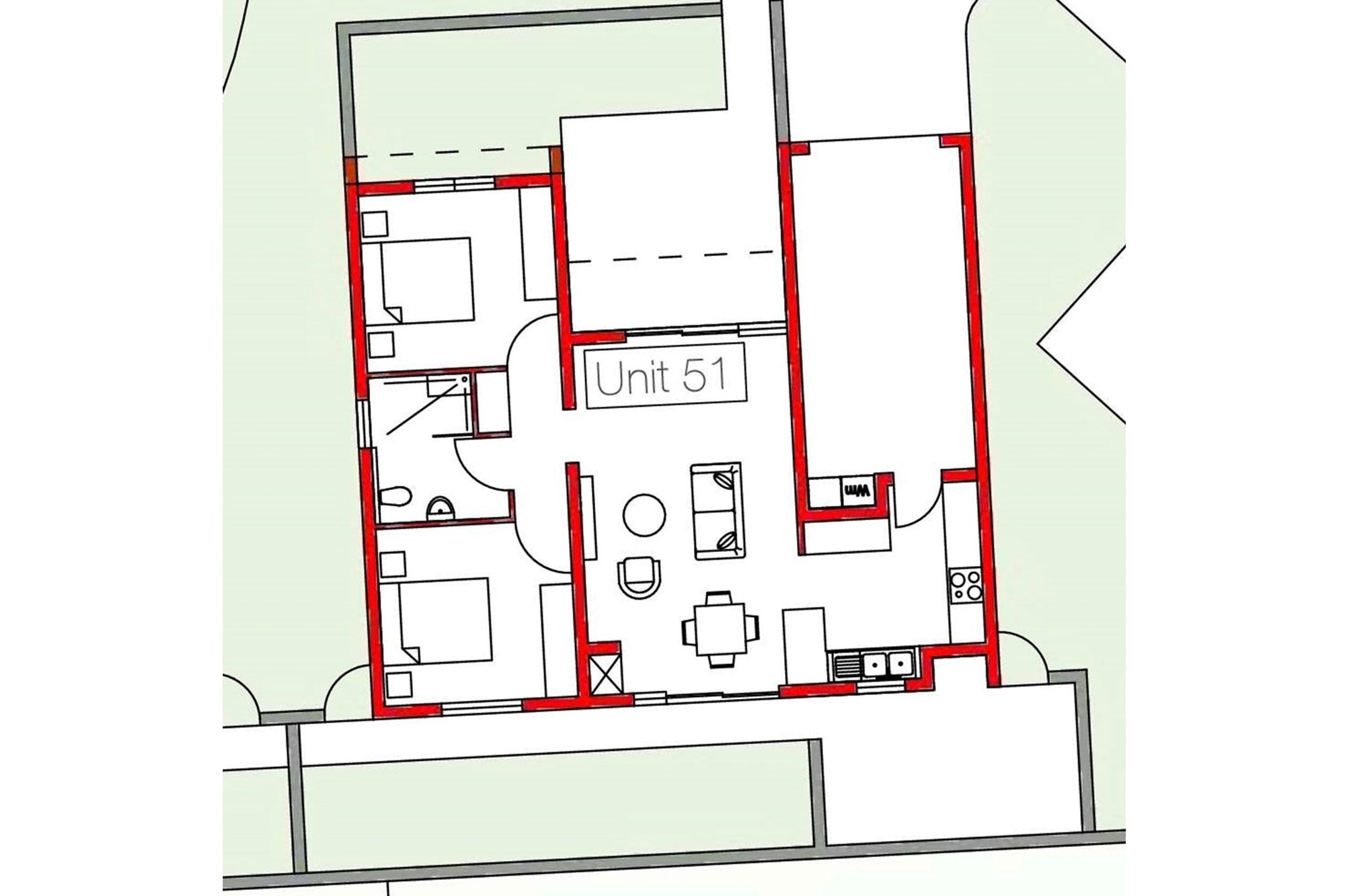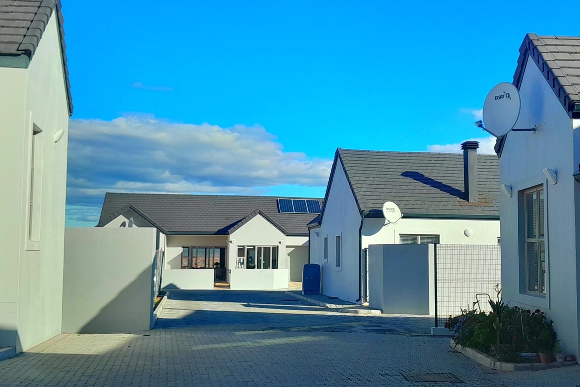 UNIT 51 – approximately 110 m2 - This sectional Title Unit is situated so where Winter Sun from morning , till evening is plenty and ample guest parking is situated right next to it. Easy access to all amenities and to other units. It consists of 2 Bedrooms, with build-in cupboards, and ceiling fans, an equipped bathroom which is wheelchair friendly, Guest Toilet, Open Plan Lounge, Kitchen ( Gas hob & Electrical Oven) and Dining Room with a Back and Front Patio. Single Garage with Automated Door, and an installed Inverter.