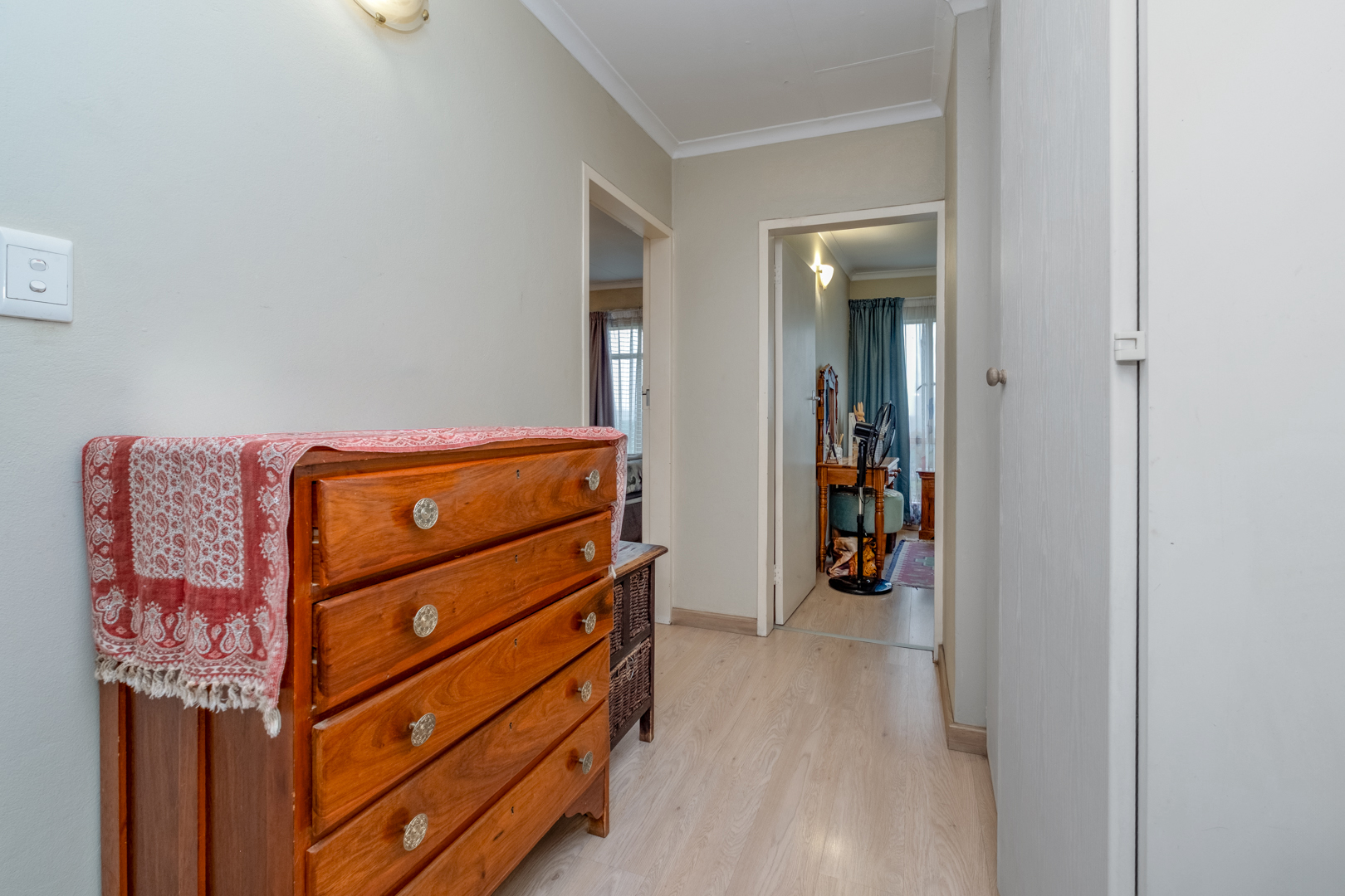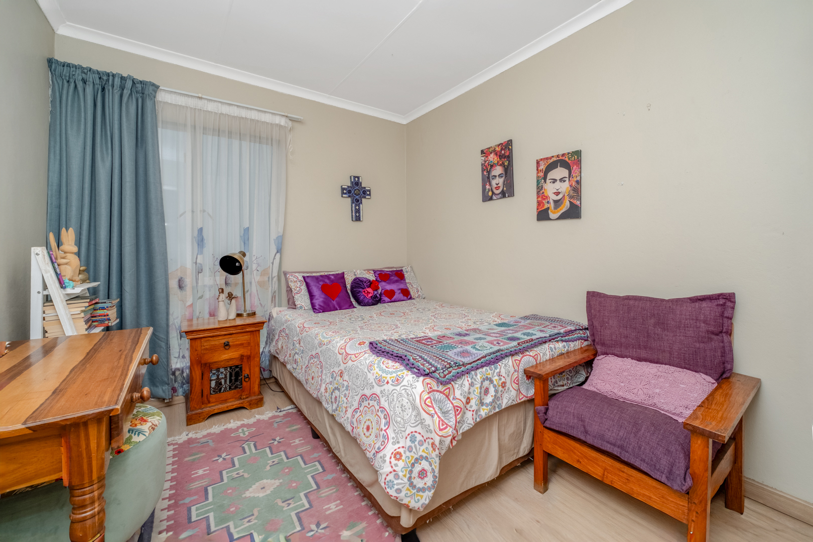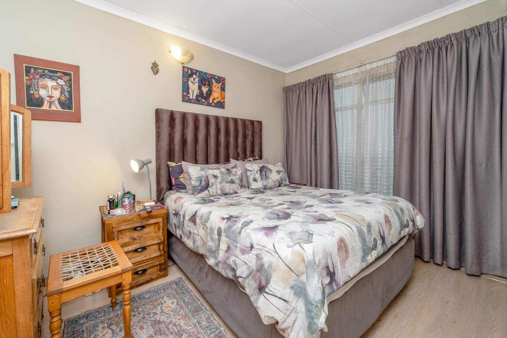 Second Bedroom (Main Bedroom): Laminated flooring, generous built-in cupboard space, lovely north-facing view