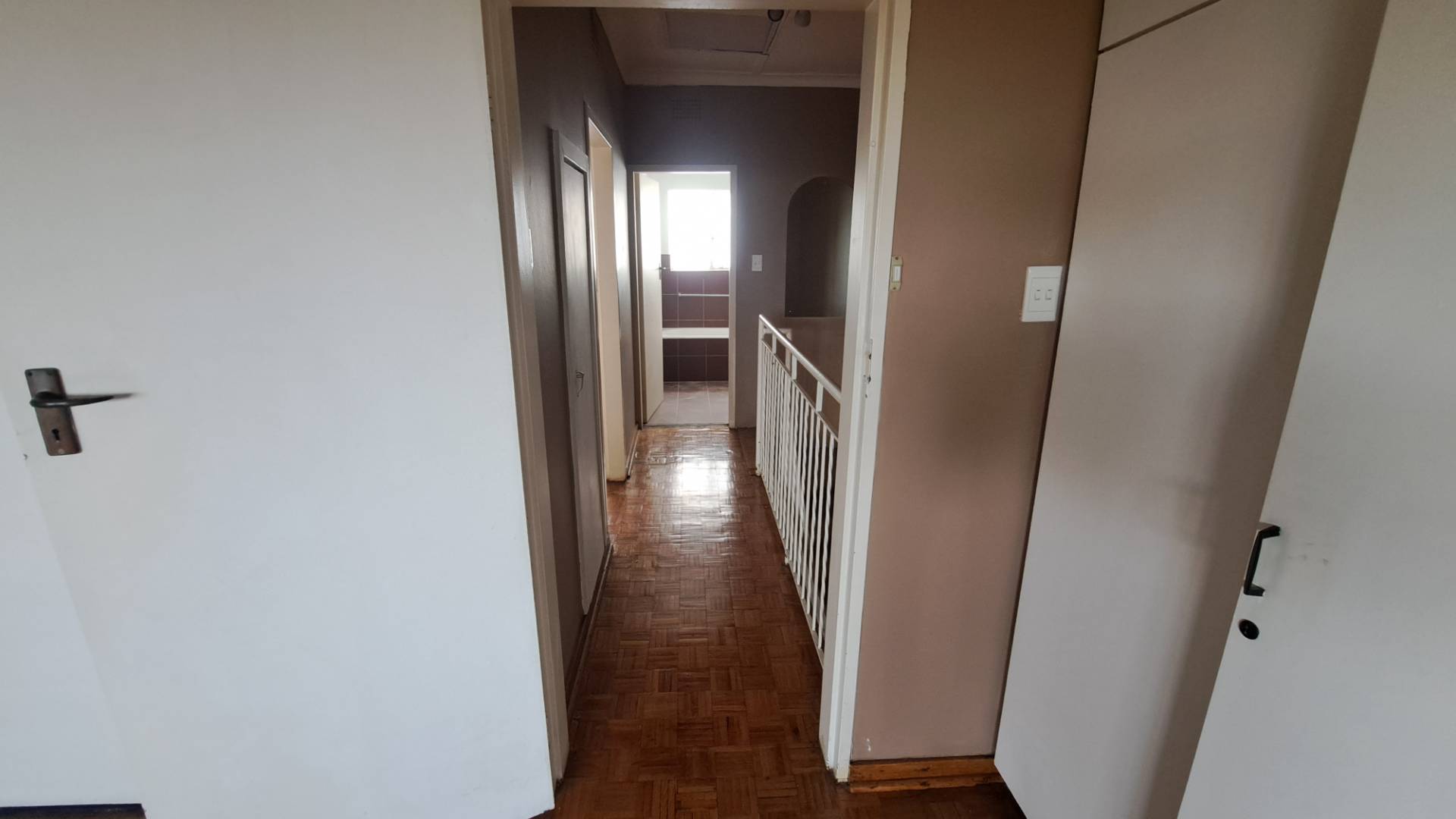 Upstairs: Two bedrooms with warm parquet flooring.