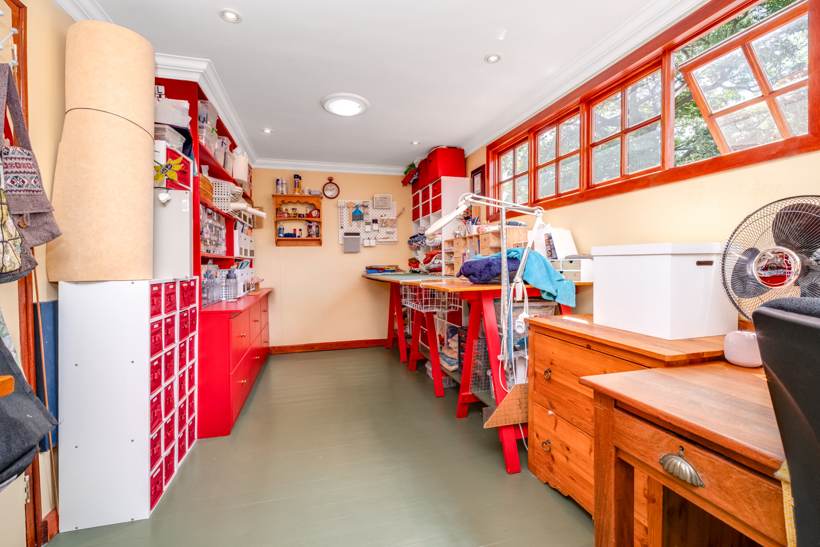 Adjoining “sewing” room with wooden flooring and abundant natural light