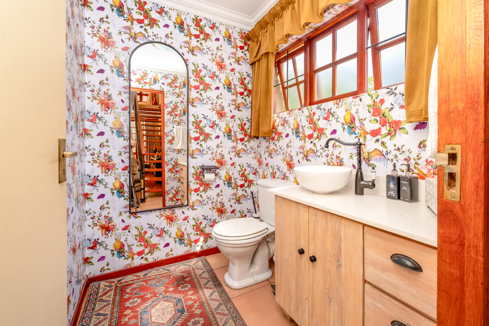 Guest bathroom with tiled floors, WC, and basin