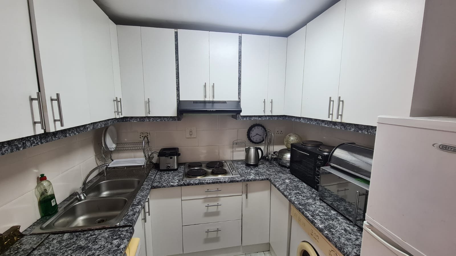 The main house consists of three bedrooms, lounge ,recently renovated kitchen with fitted cupboards ,stove,oven and extractor fan. Recently updated bathroom with both bath and shower. Main bedroom has built-in cupboards. The whole house has new alliminium windows and doors.Fully enclosed and secured with parking for two vehicles with automated garage.