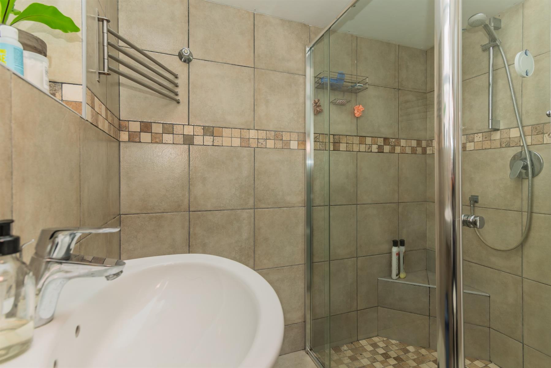 The family bathroom is well-positioned next to the lounge, neatly tiled with a shower, loo and basin.