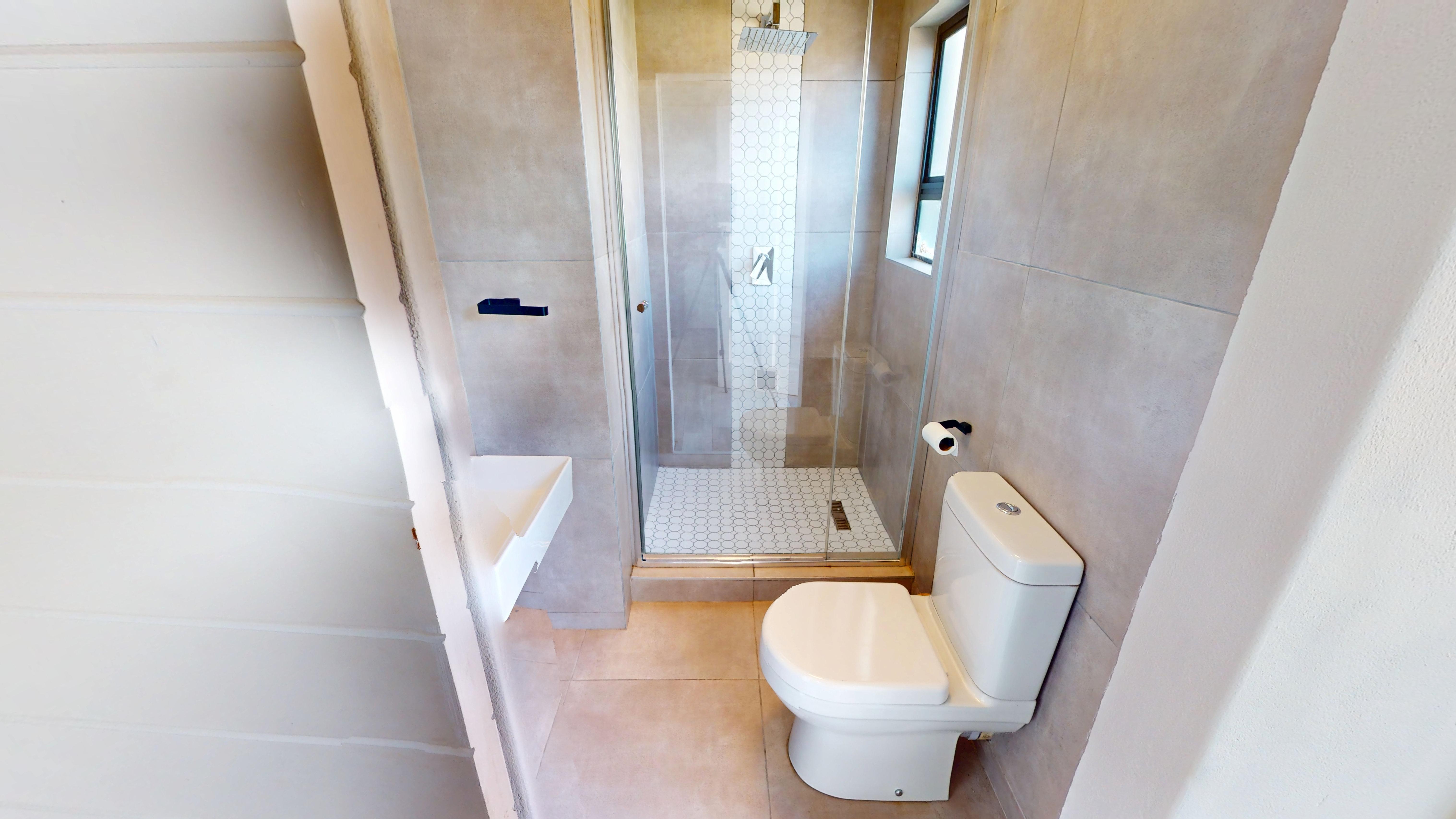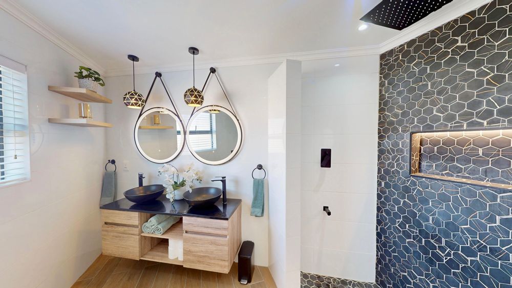 With four beautifully finished bedrooms, this home is made for families who value both comfort and style. The main suite is your personal sanctuary — spacious, private, and bathed in natural light. It features a walk-in closet and a luxury en-suite bathroom that could belong in a 5-star hotel: dual LED vanities, floating toilets with Geberit concealed systems, high-gloss tiles, and a ceiling-mounted rain shower framed by designer mosaics and matte black finishes.